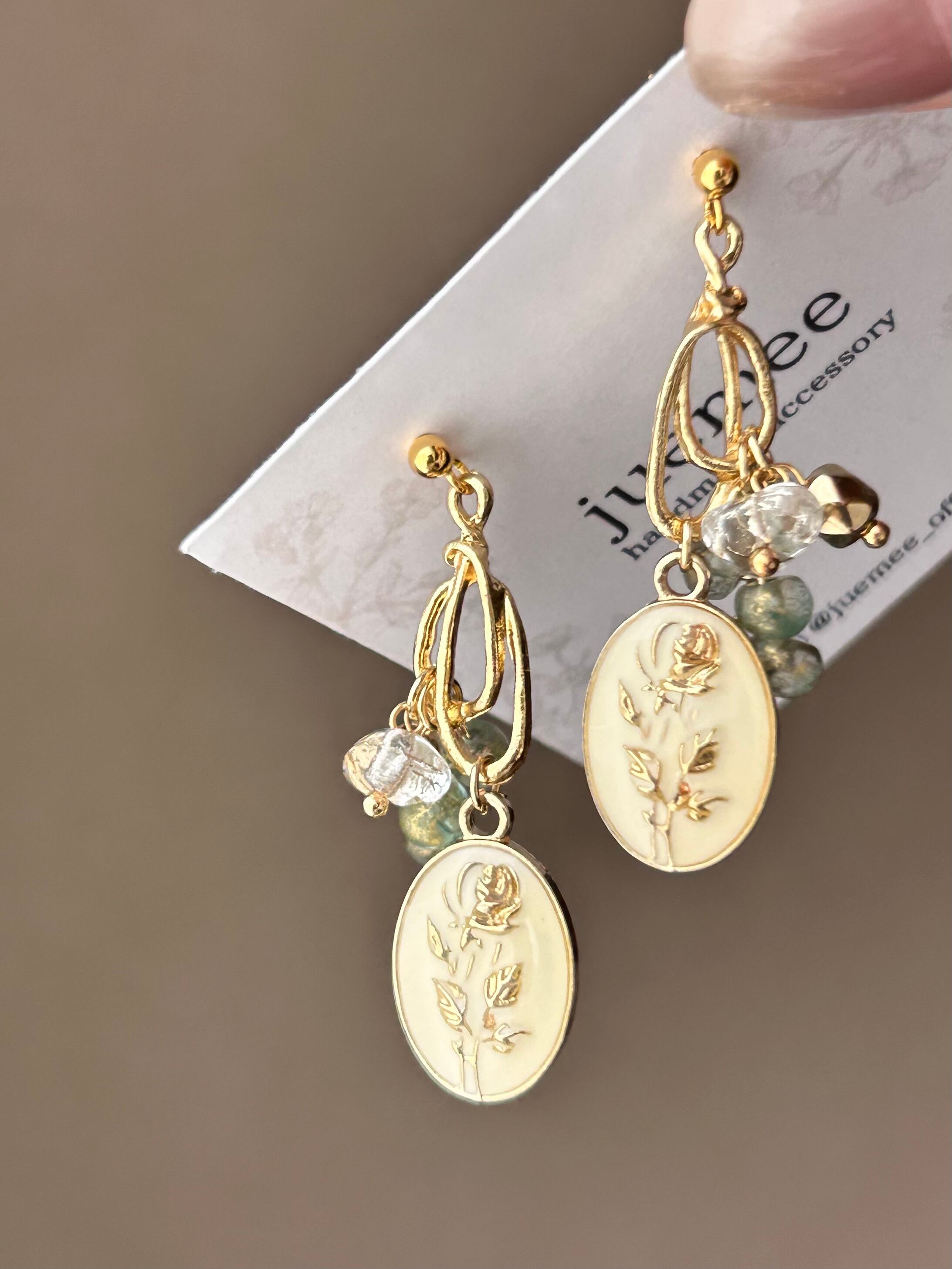 どこか懐かしく、優しい時間を思い出させてくれるような、バラモチーフのピアス&イヤリング。