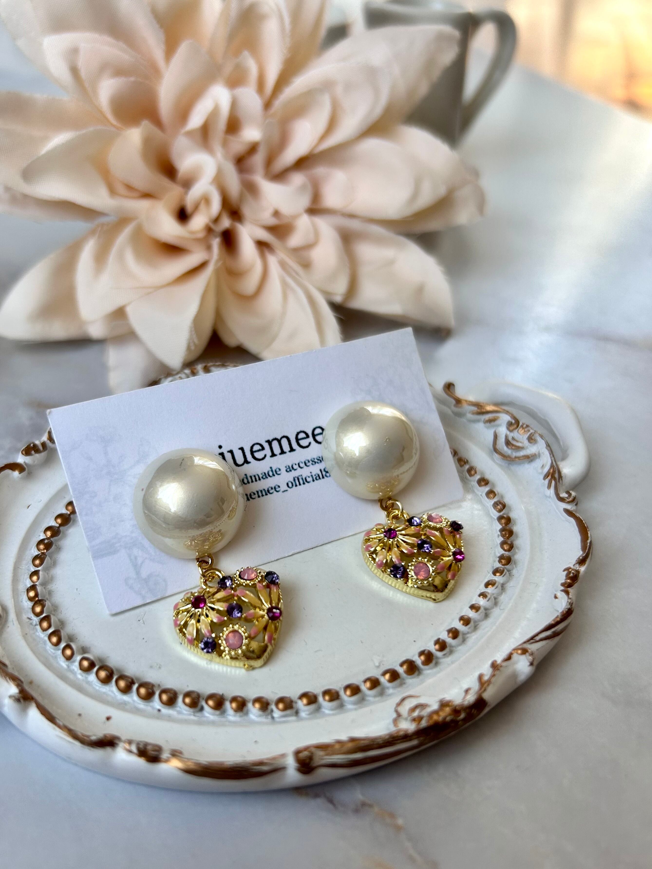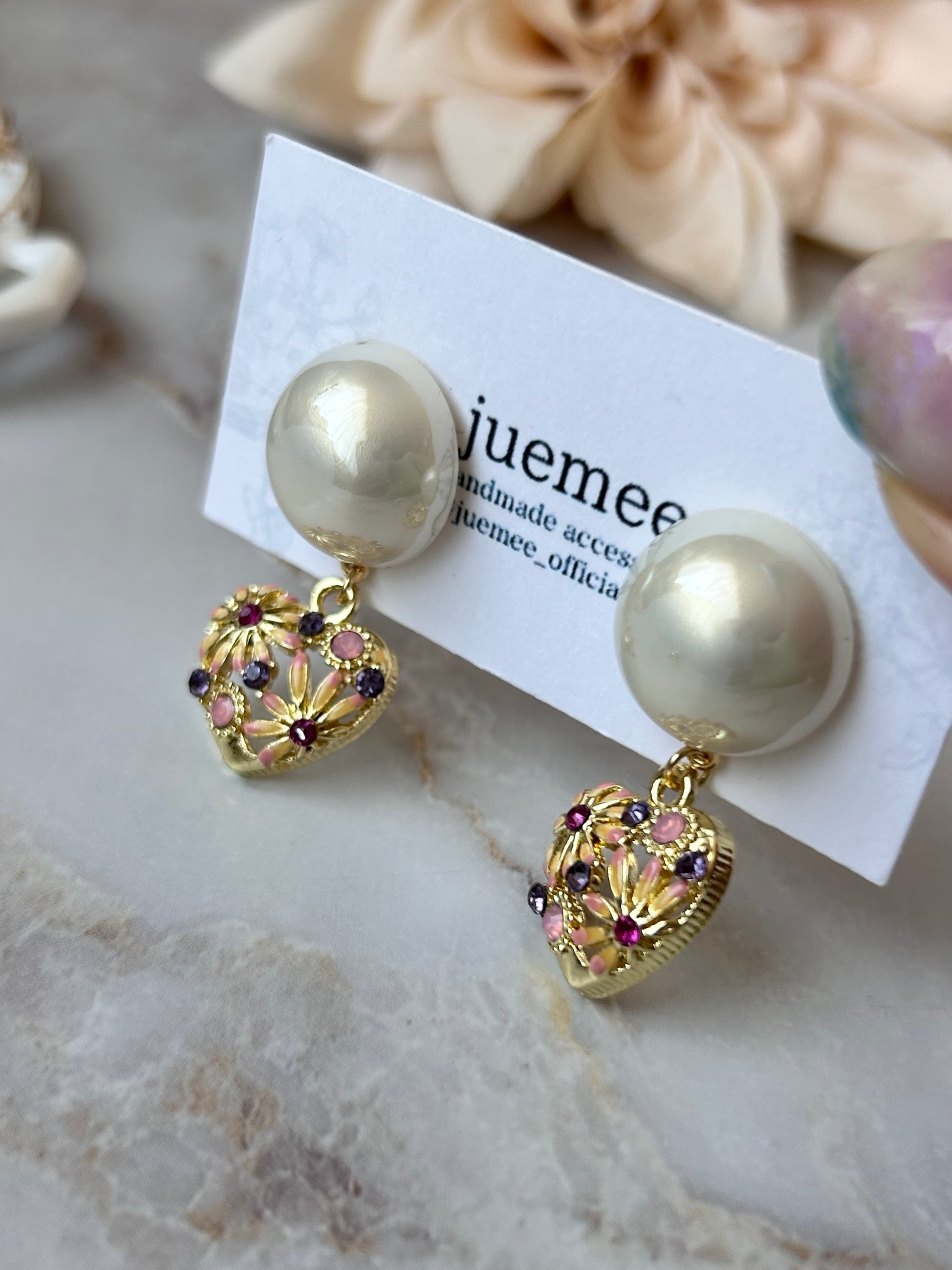 心ときめく花模様のハートチャームが揺れる、大人可愛いピアス&イヤリング♡