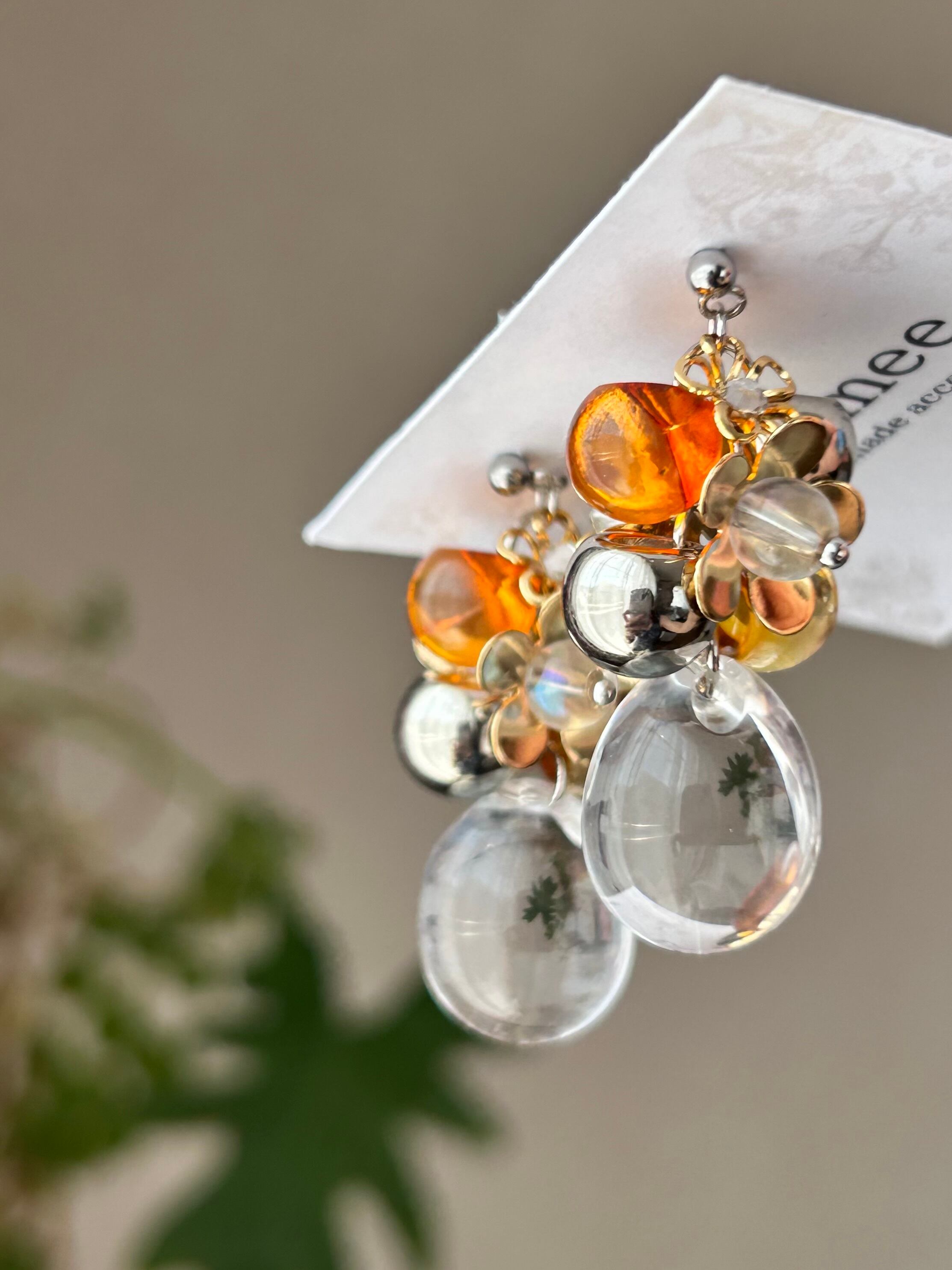 みずみずしく透き通るクリアなしずくビーズが、まるで水辺の宝石のように光を映します♬