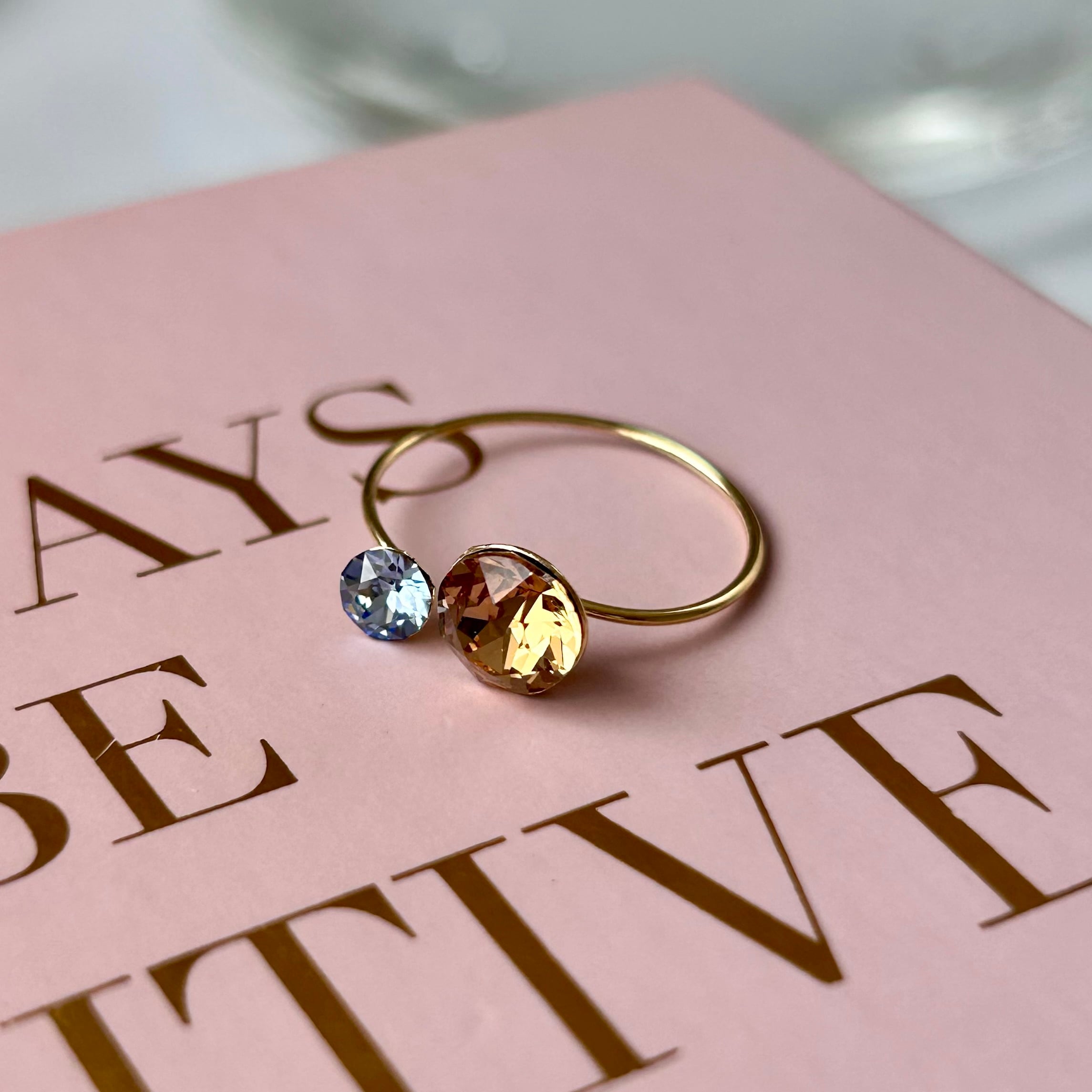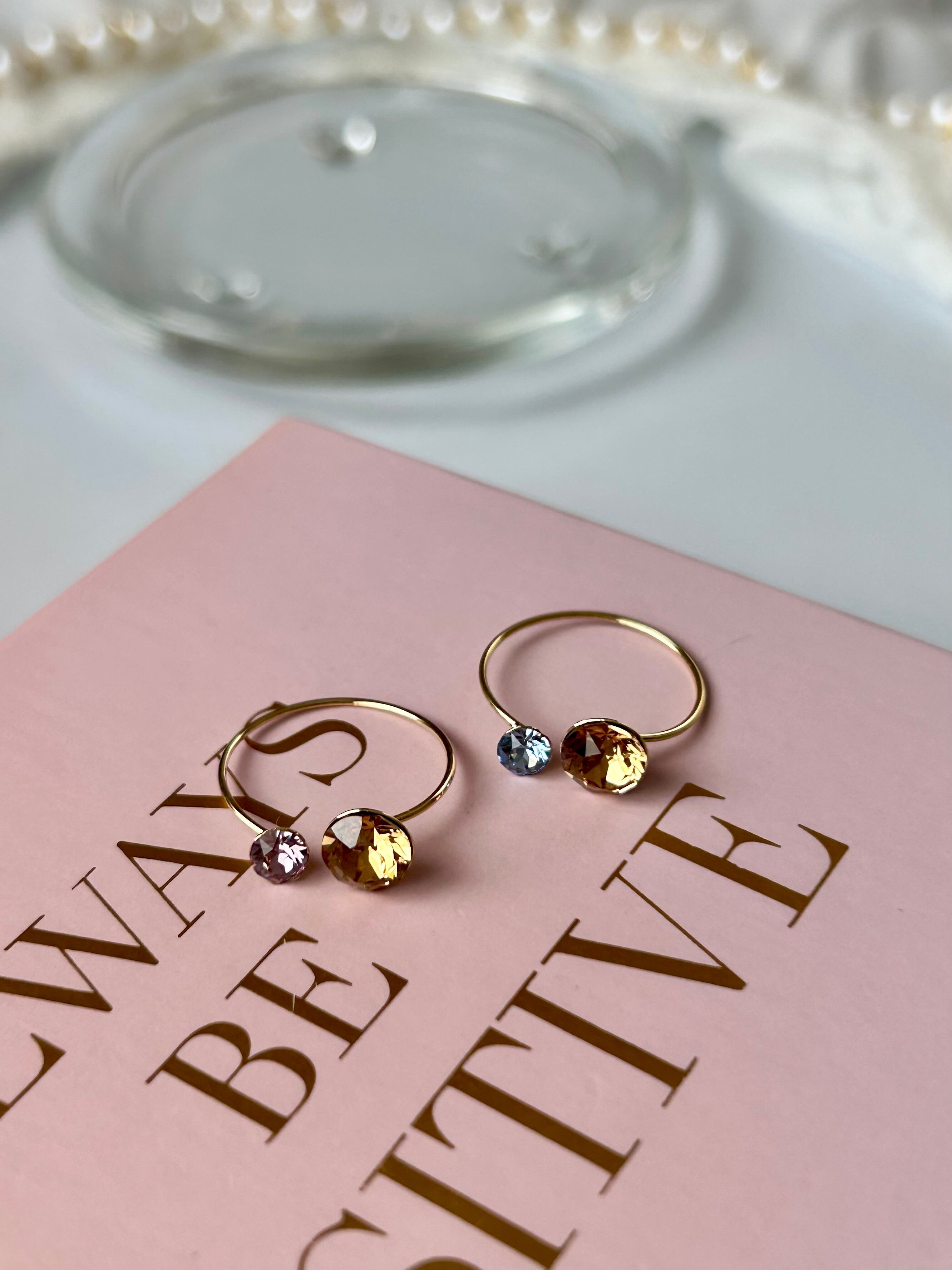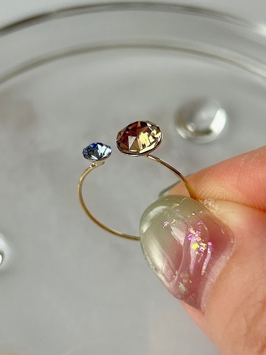 華奢なゴールドリングがクリスタルのきらめきを引き立て、デイリーにも特別なシーンにも寄り添います。