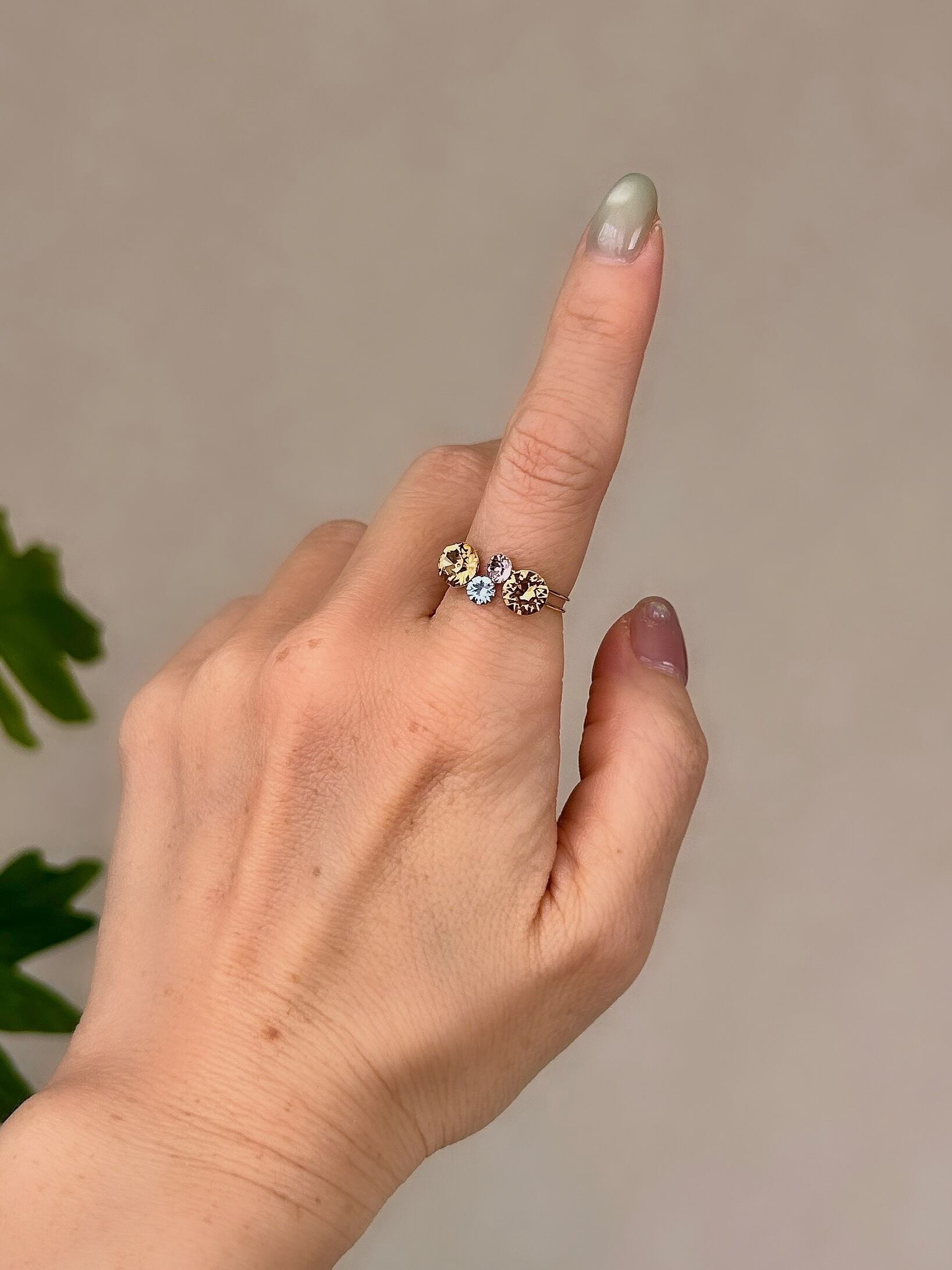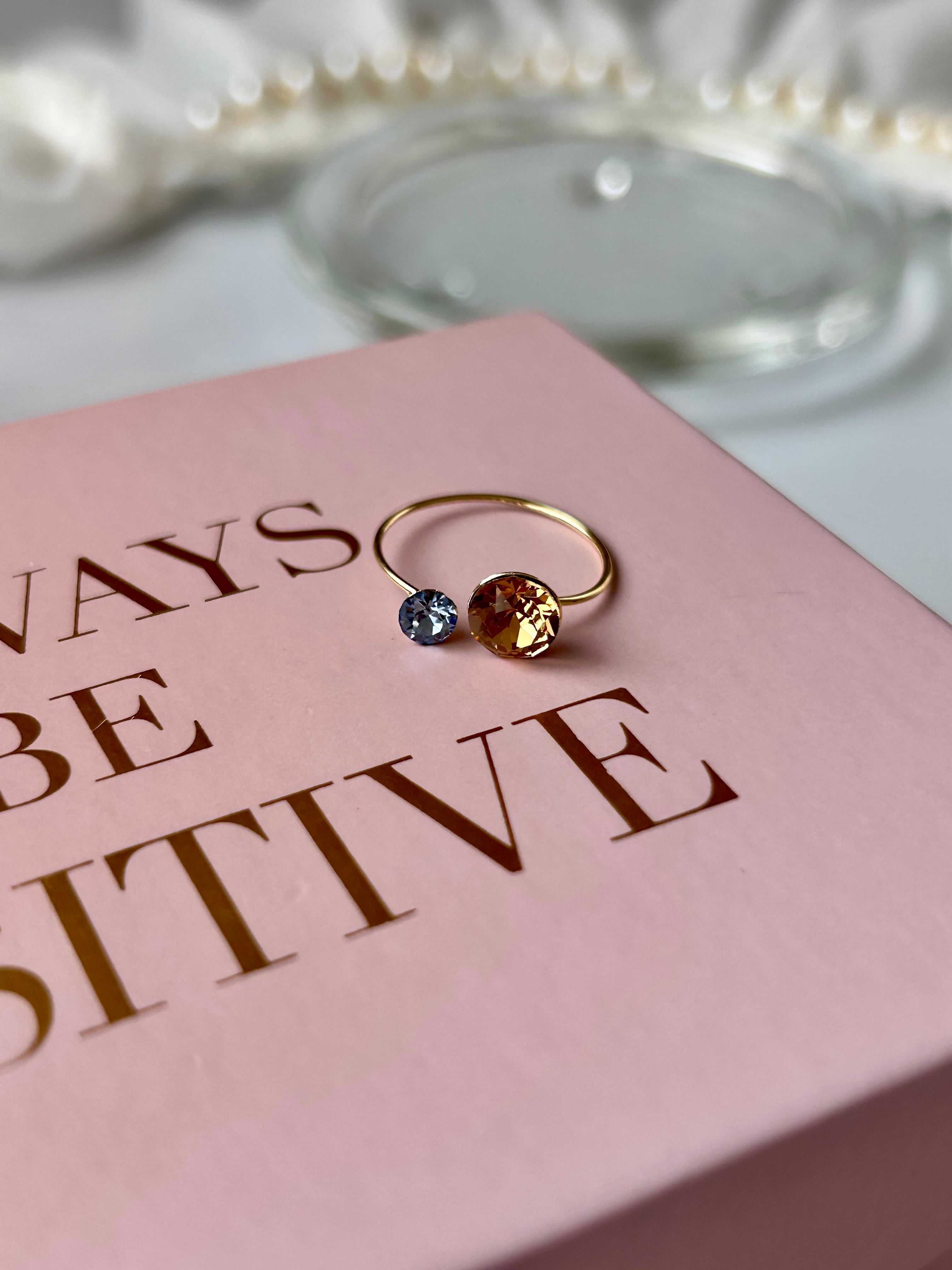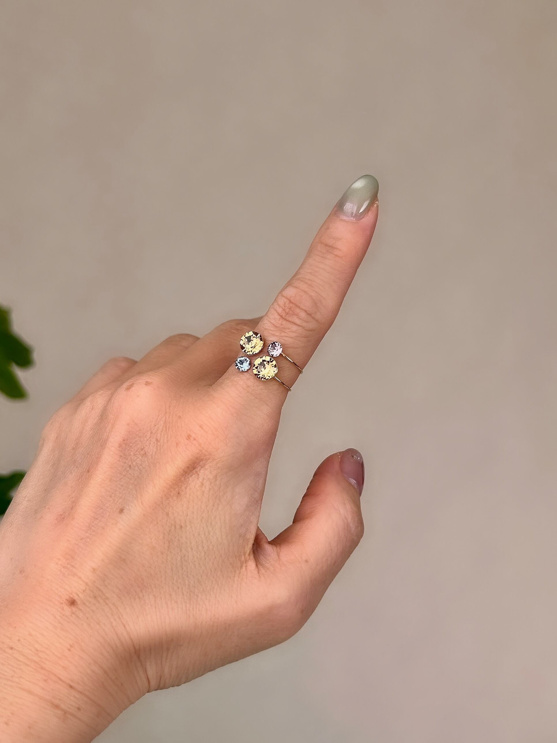 華奢なゴールドリングがクリスタルのきらめきを引き立て、デイリーにも特別なシーンにも寄り添います。