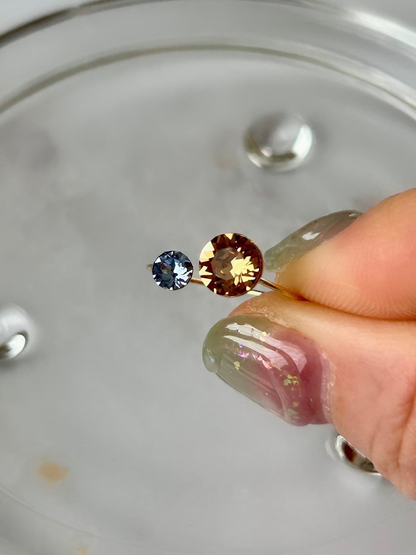 ピンク×アンバー(別ページにて販売)は甘く優しい輝きを、ブルー×アンバーは落ち着きのある上品なコントラストを。