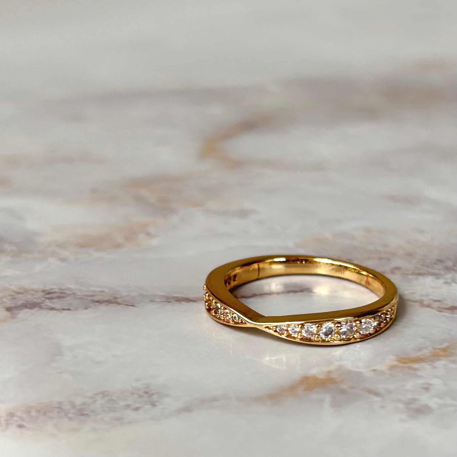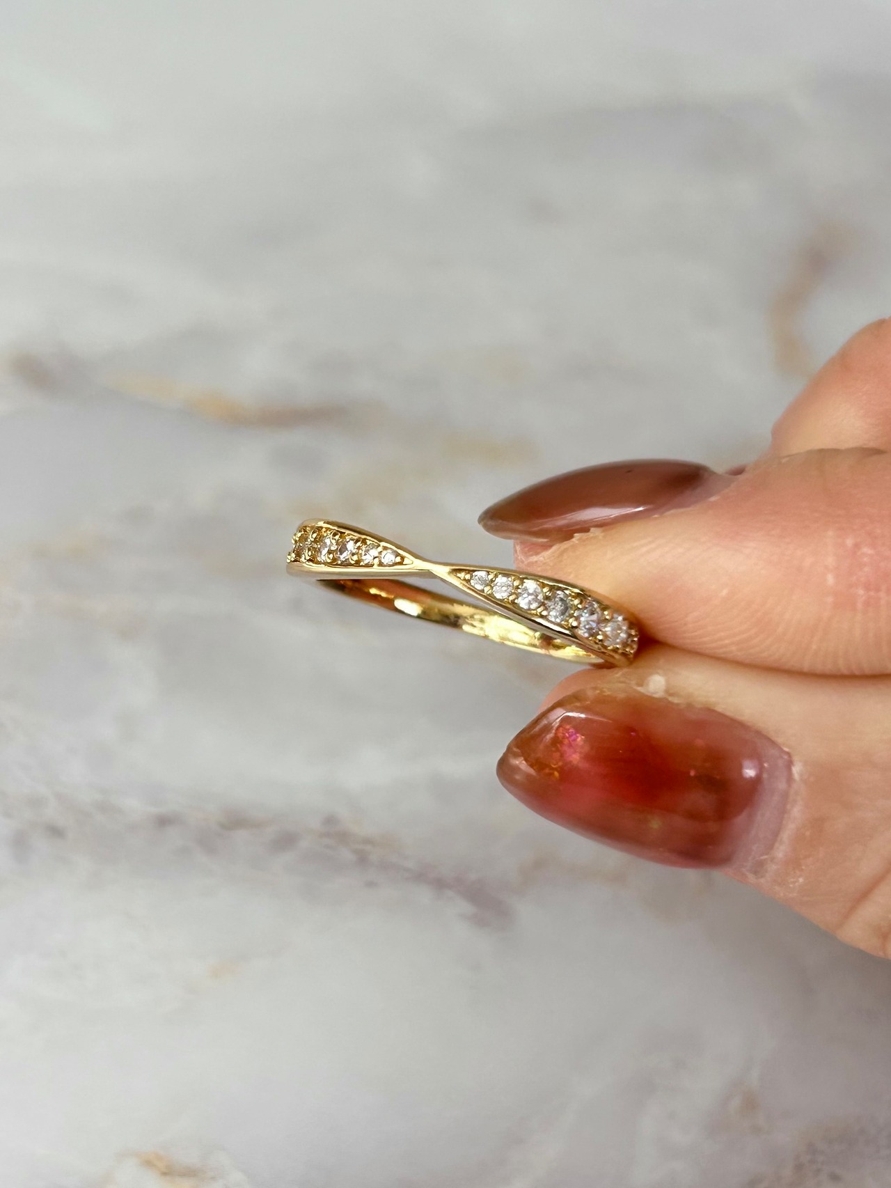 ジルコニアの繊細なきらめきが、ゴールドの艶やかなラインに映え、