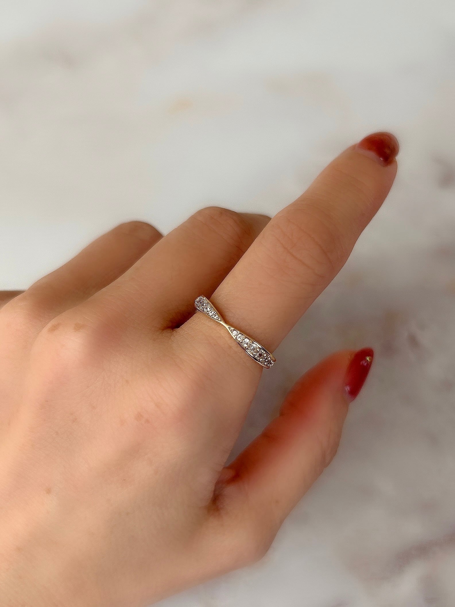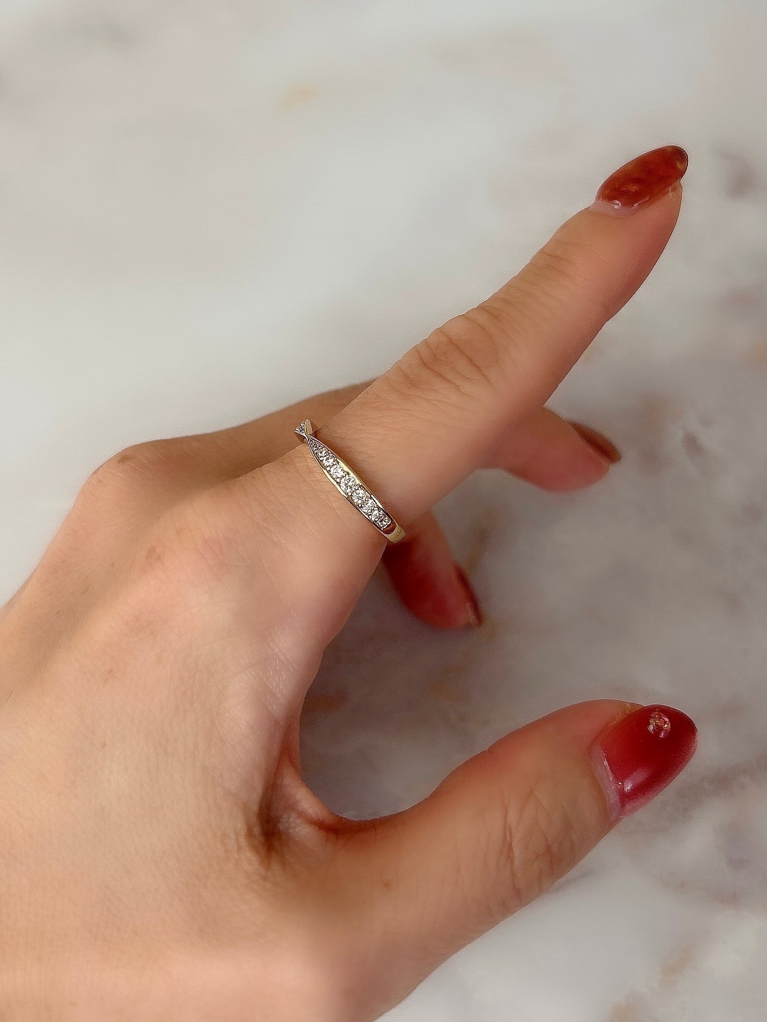 光のひとすじを指先にまとったような、シンプルで上品なデザインリング。