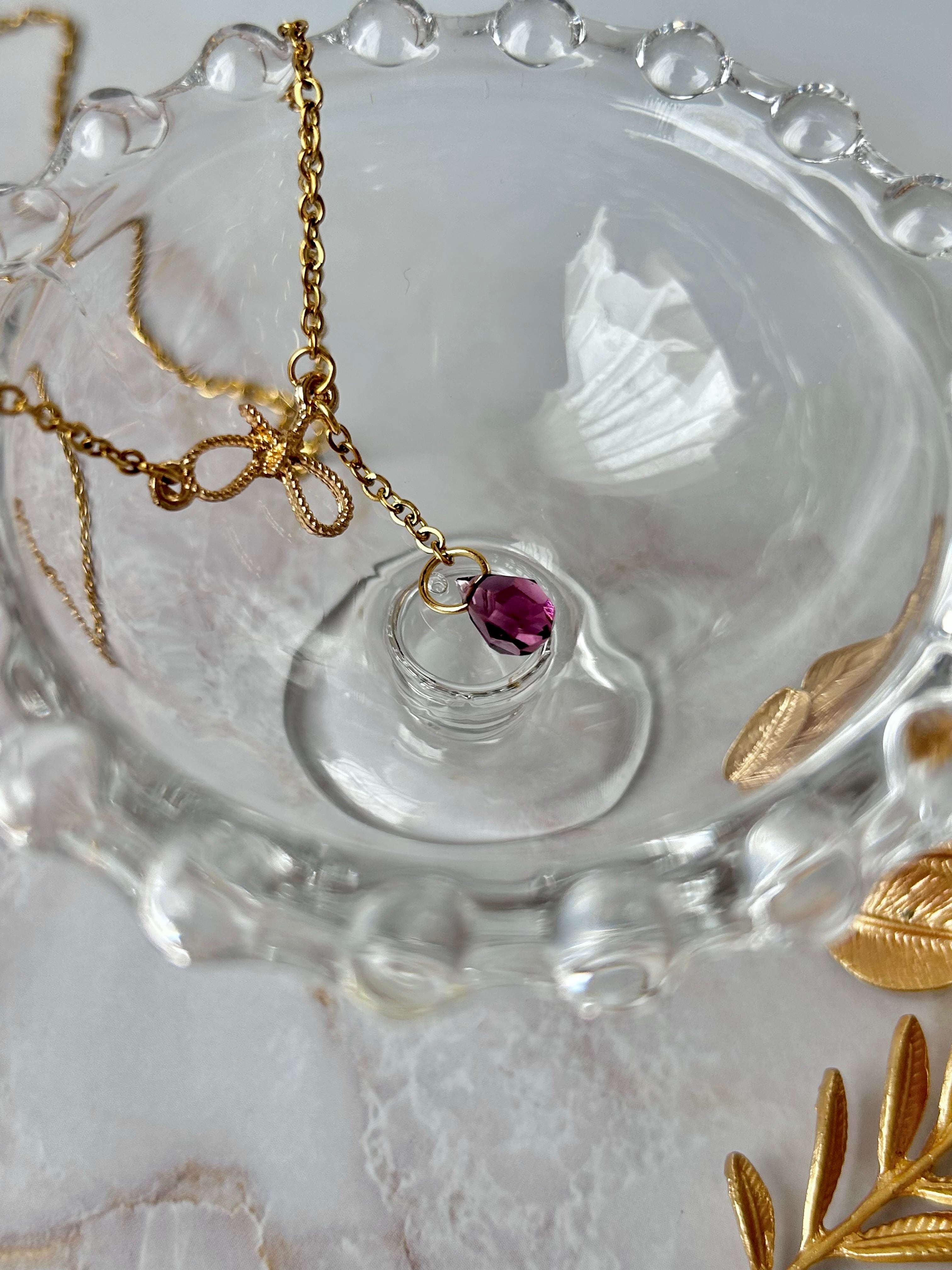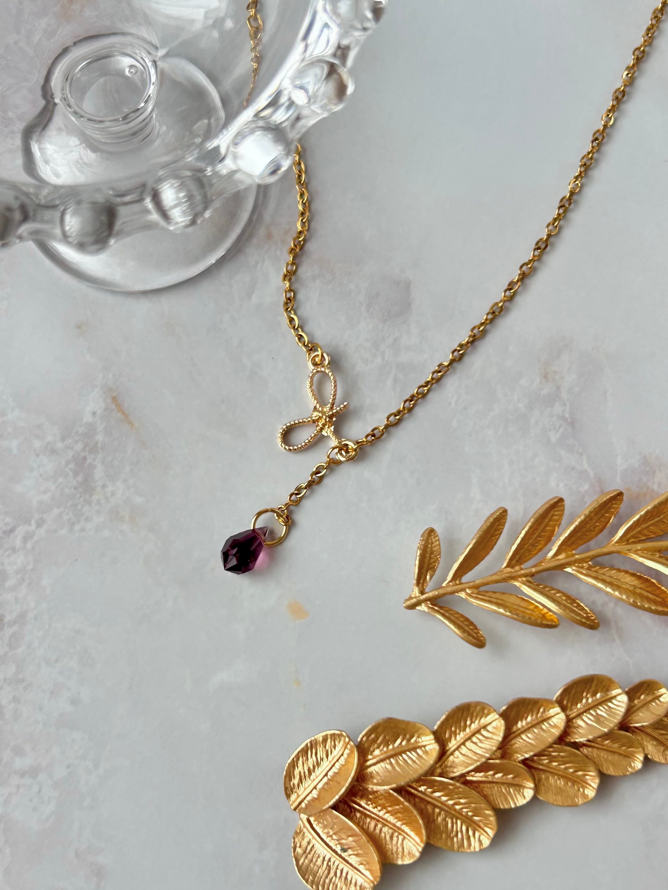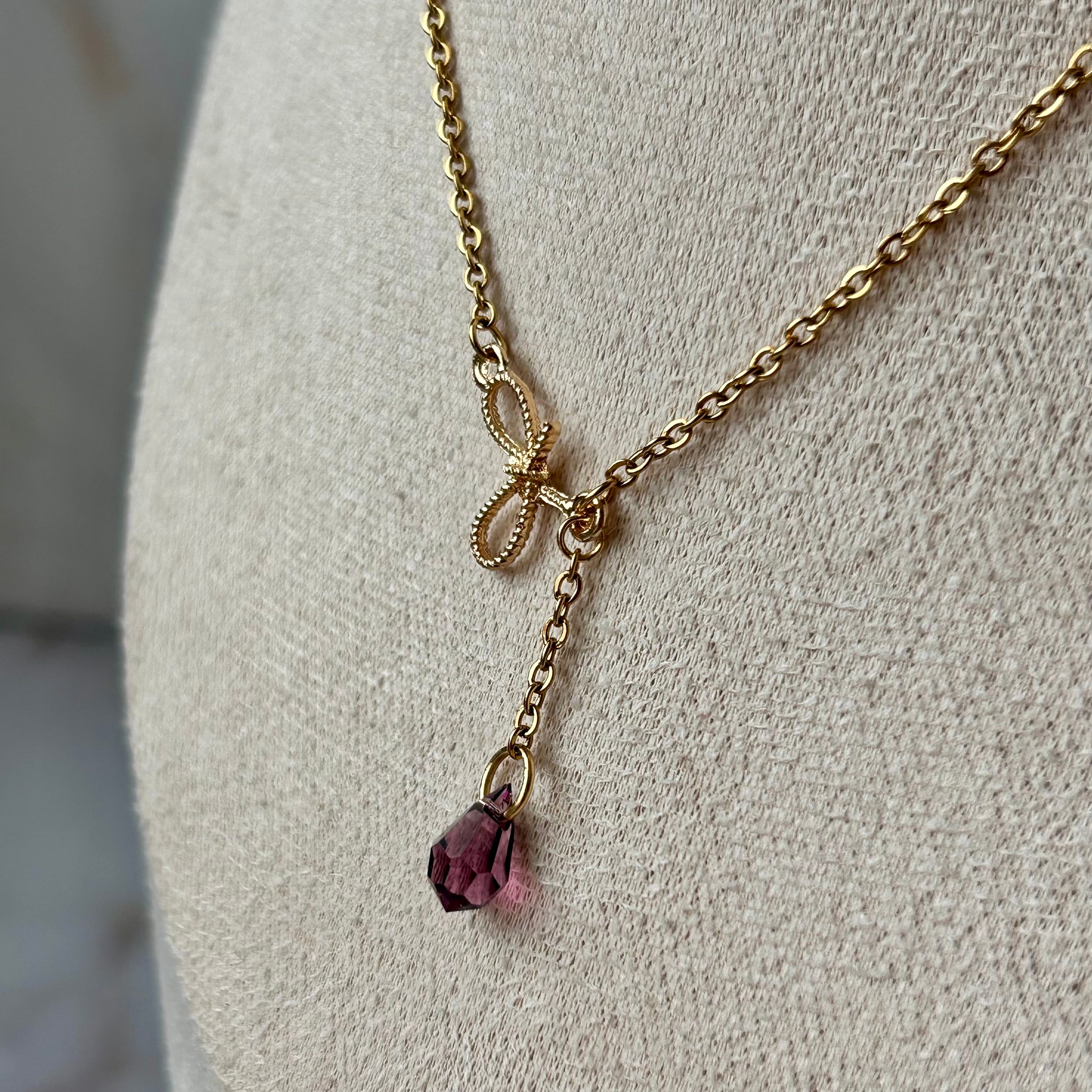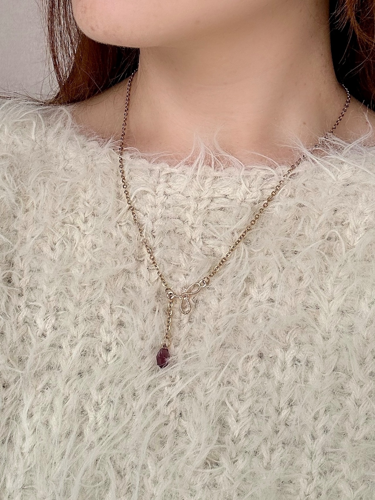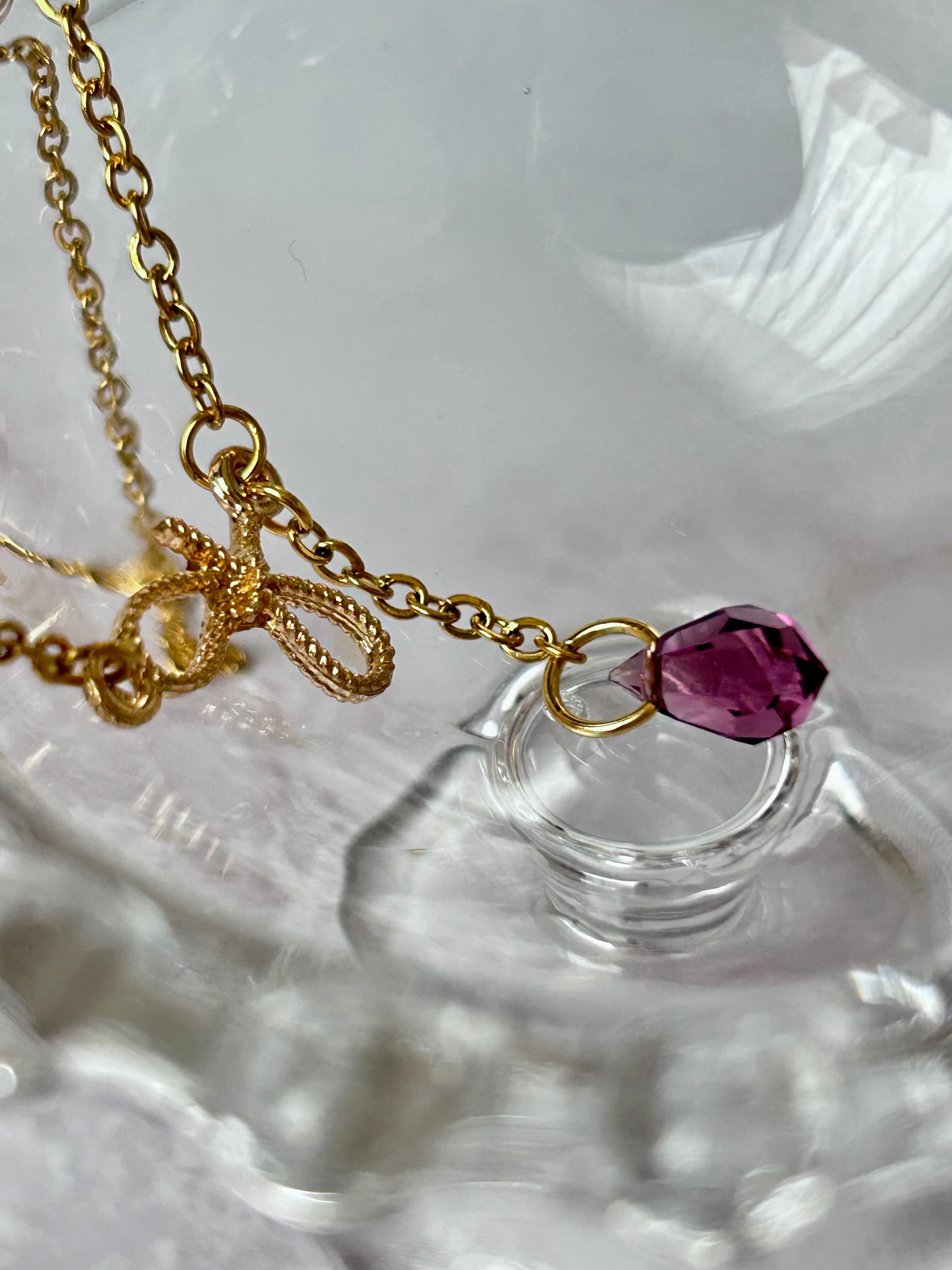 女性らしい可愛さのリボンチャームに、雫型のクリスタルがワンポイントのネックレスです❤︎