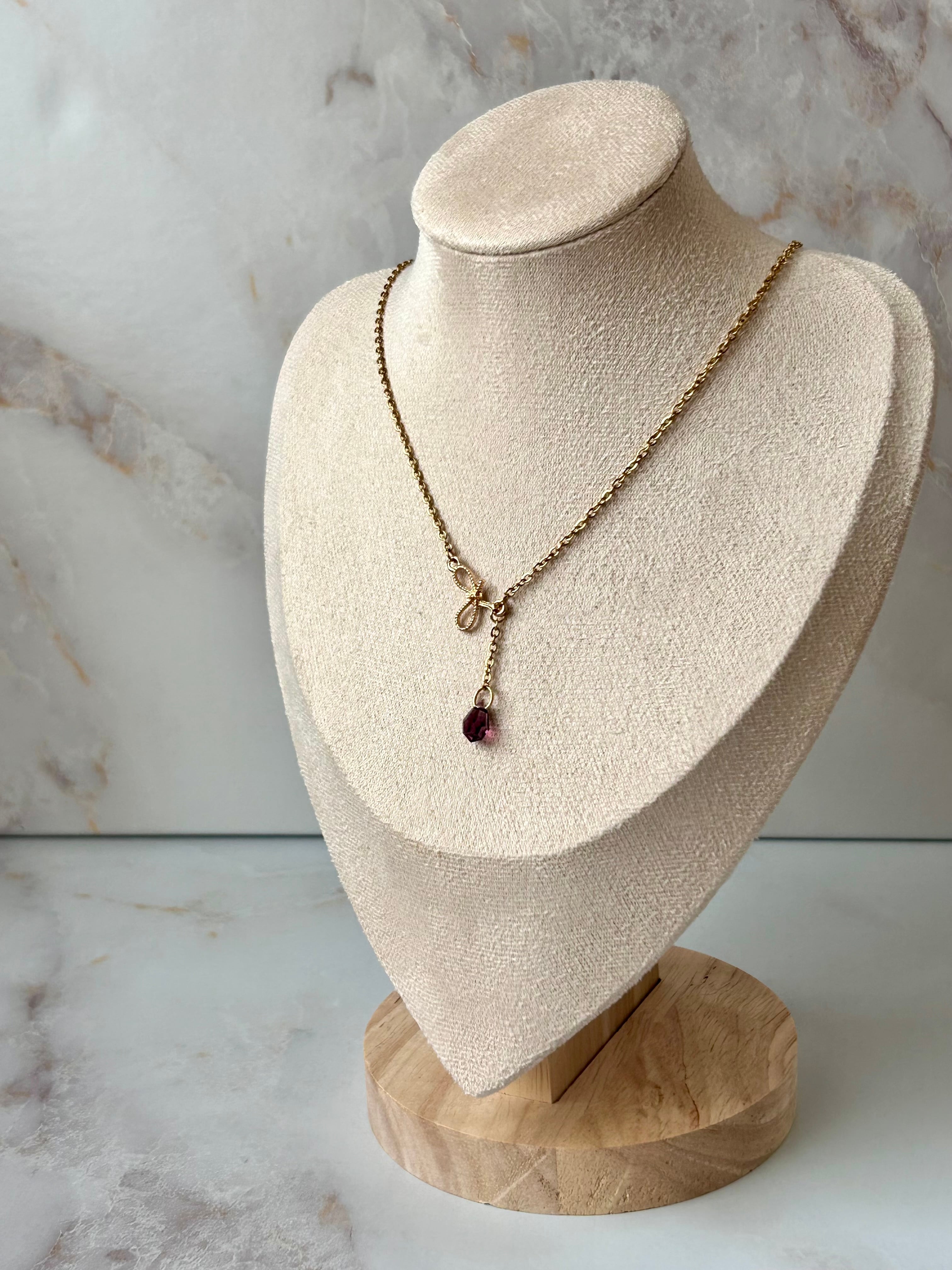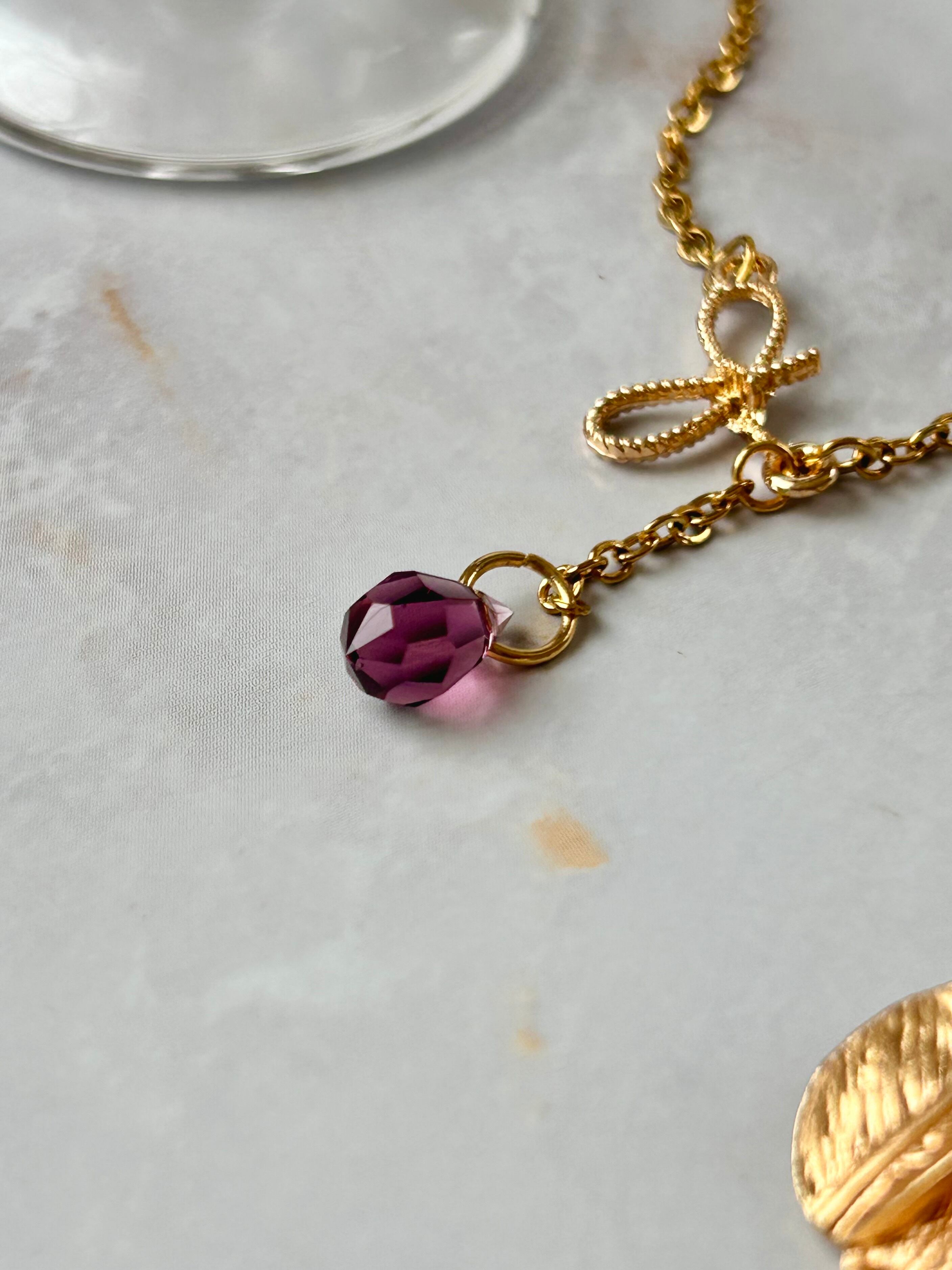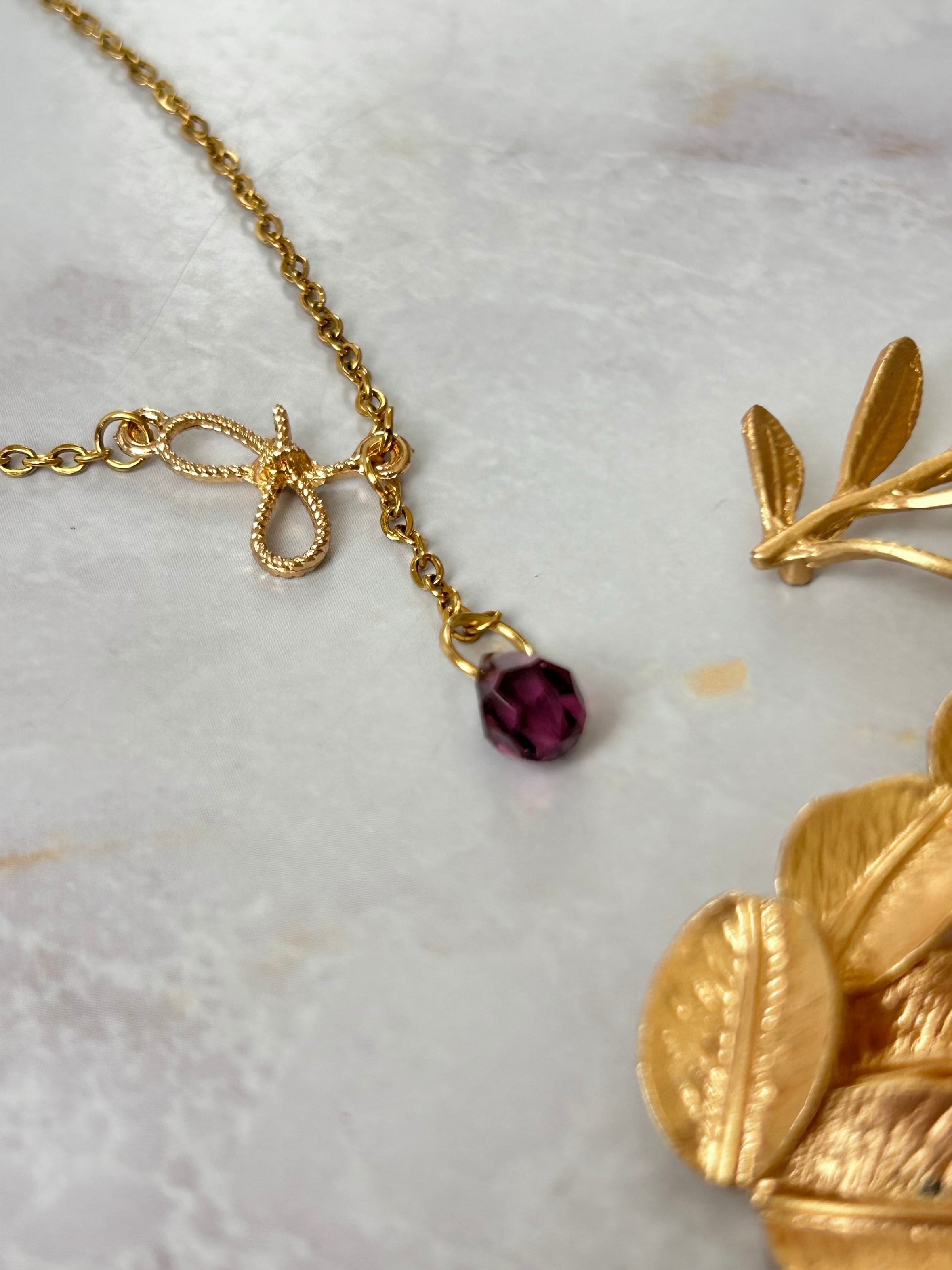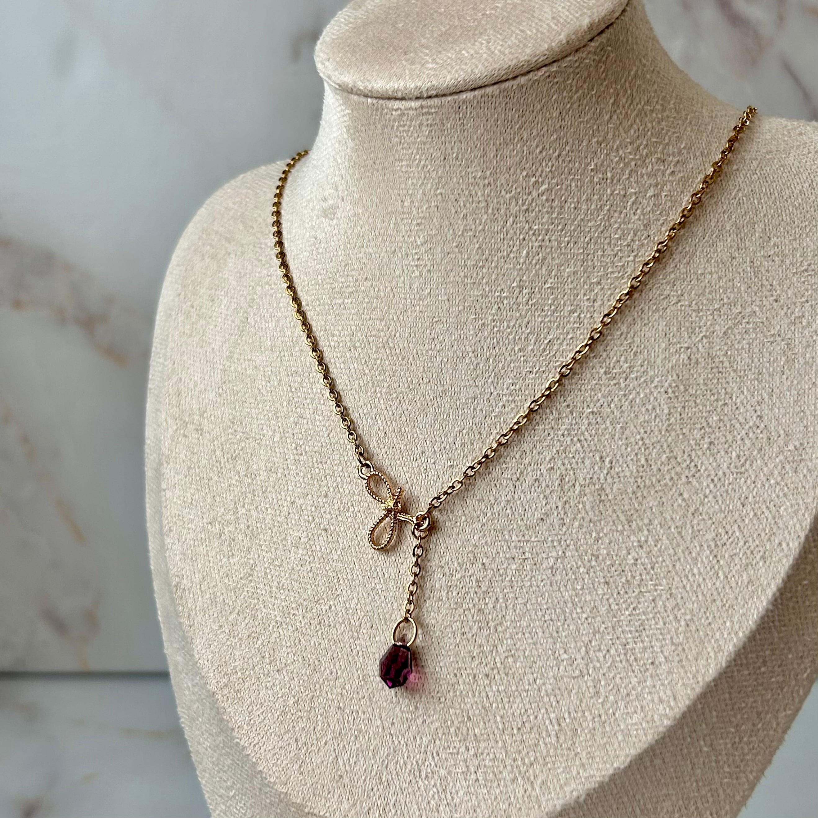 女性らしい可愛さのリボンチャームに、雫型のクリスタルがワンポイントのネックレスです❤︎