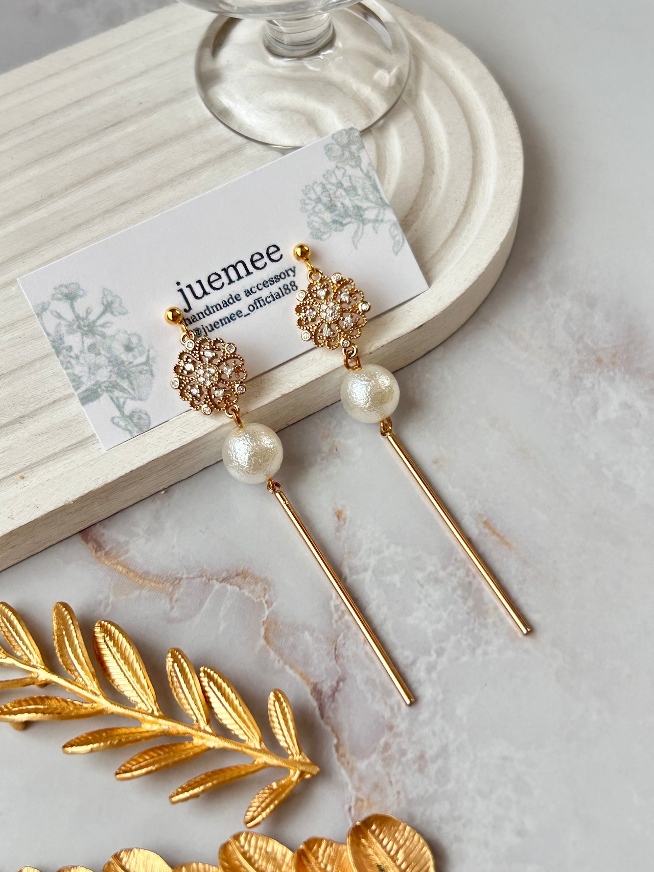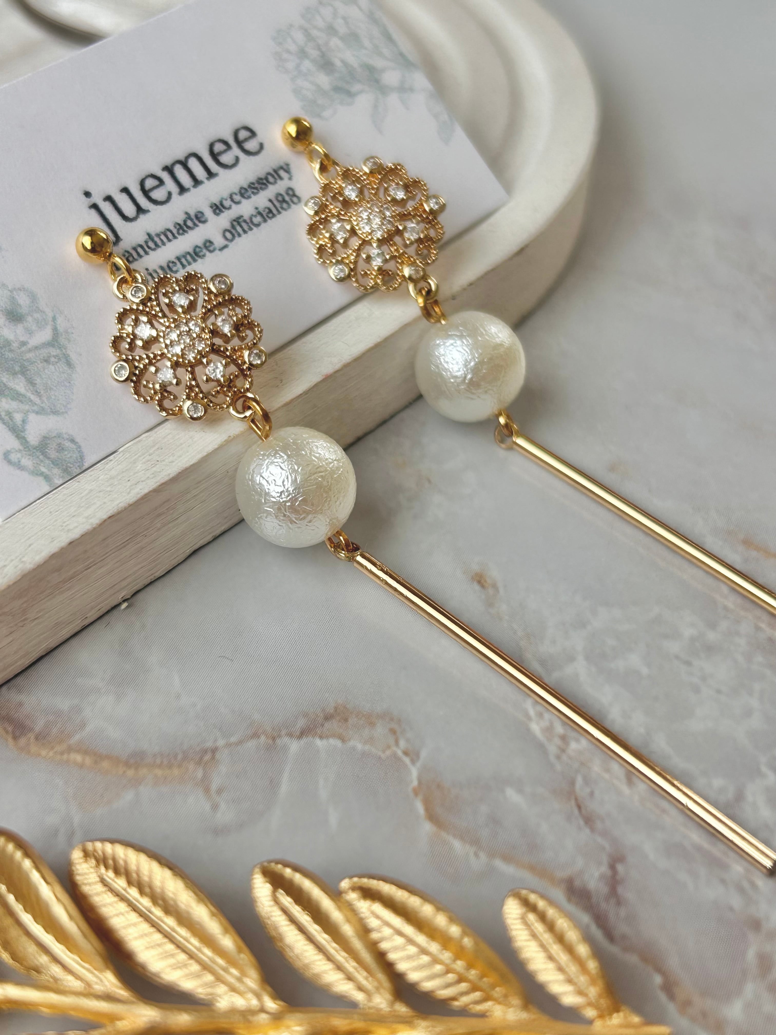 ふんわりと光をまとったパールビーズを合わせました。