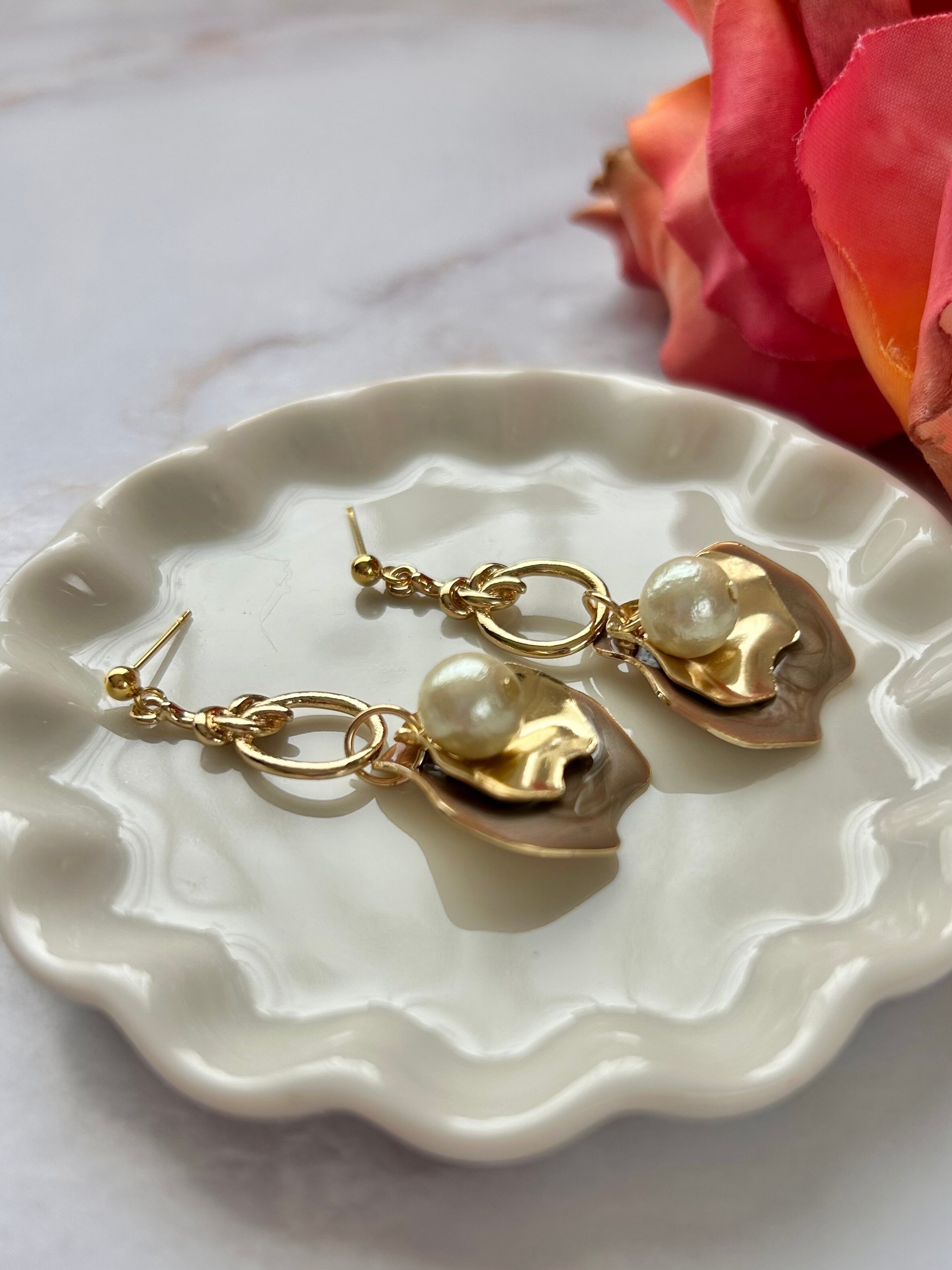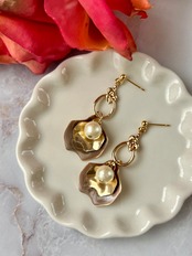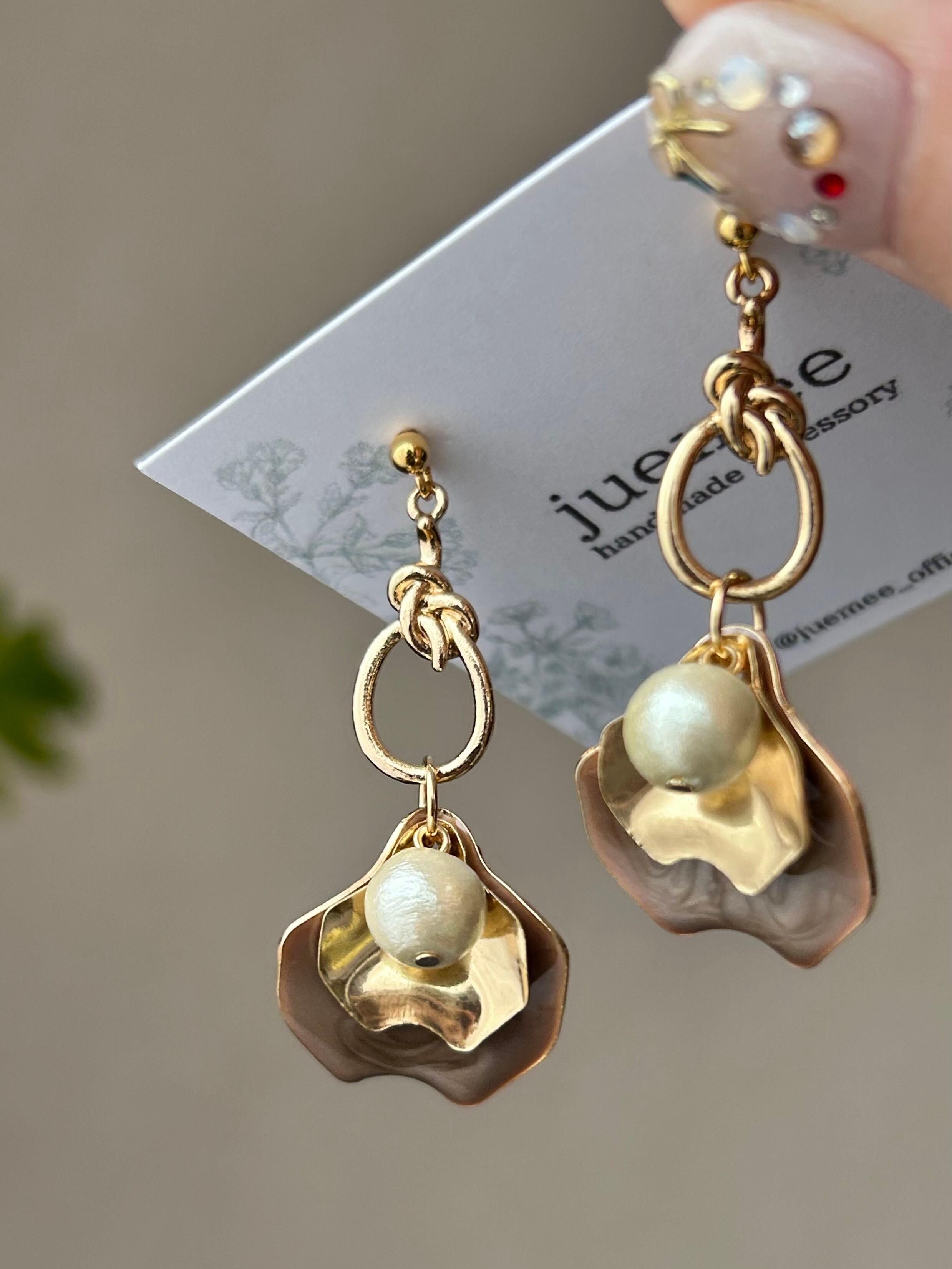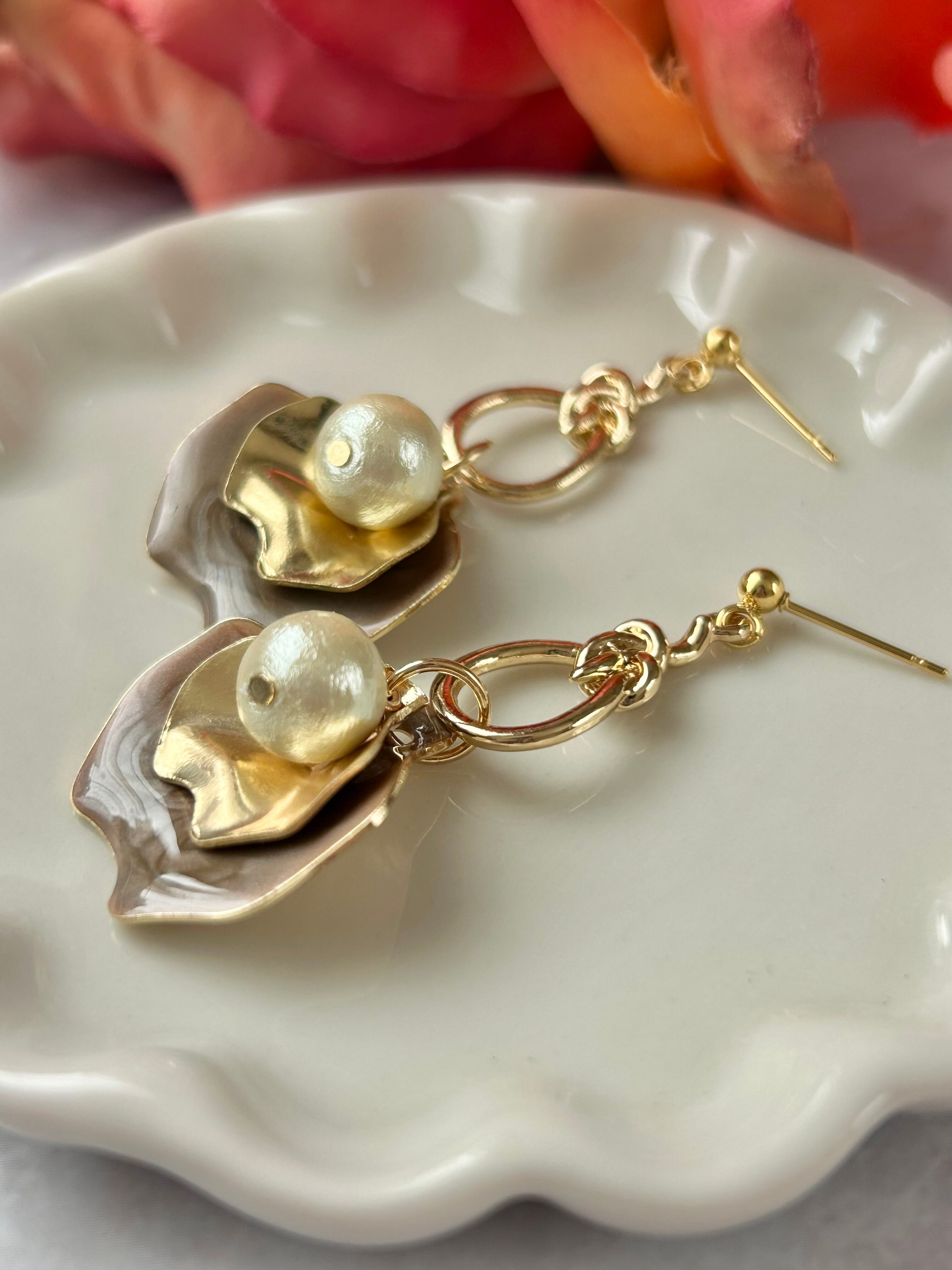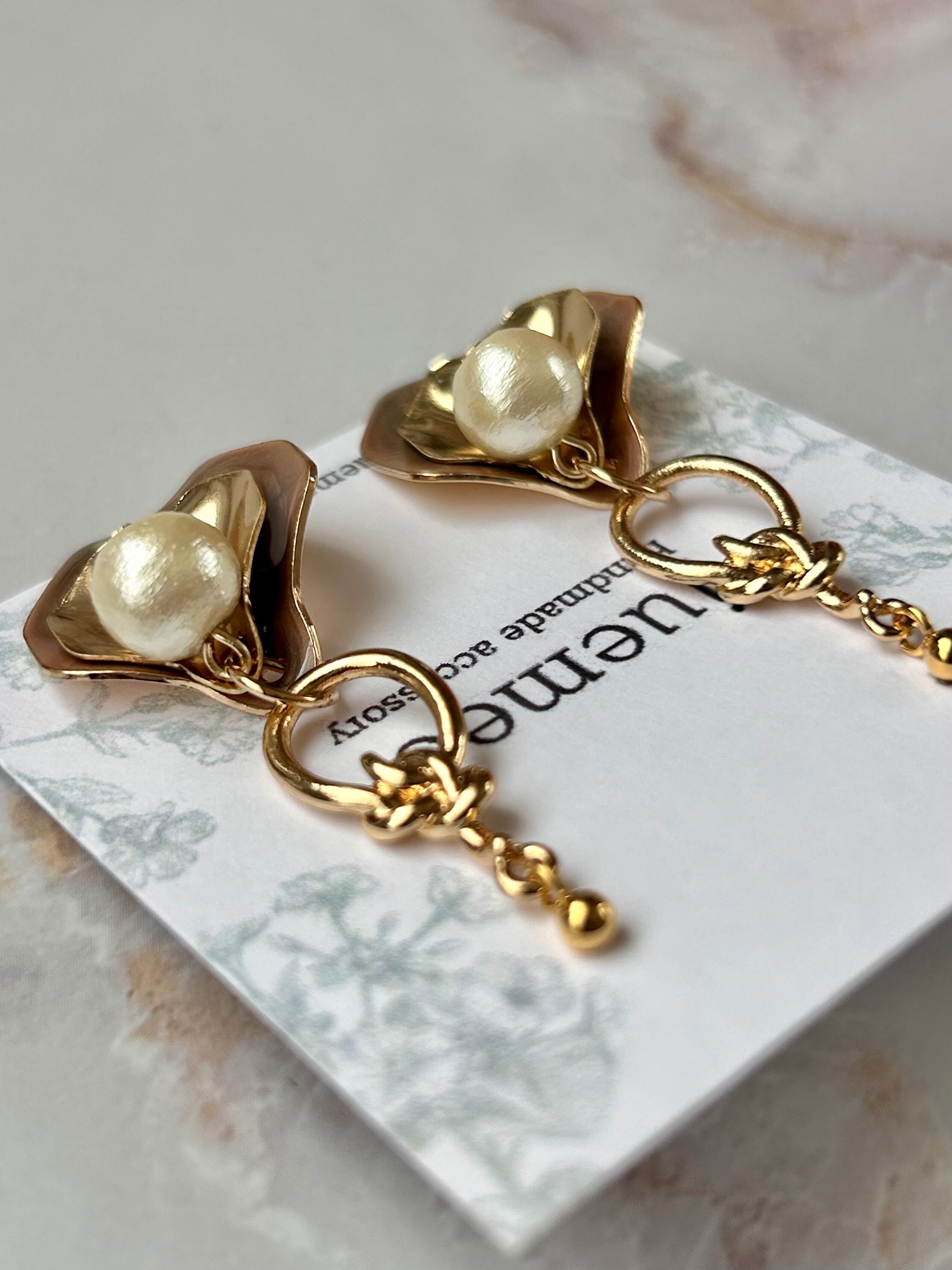 【A/W】花びら|コットンパール|ピアス|イヤリング|Warm petals