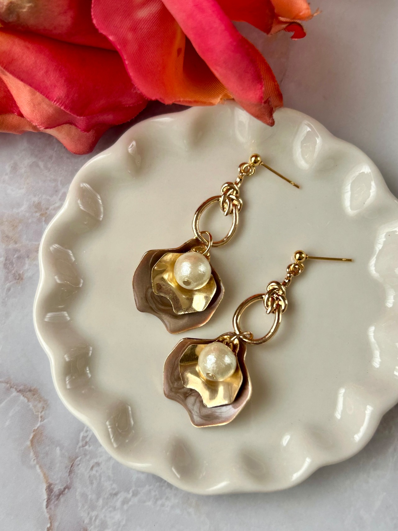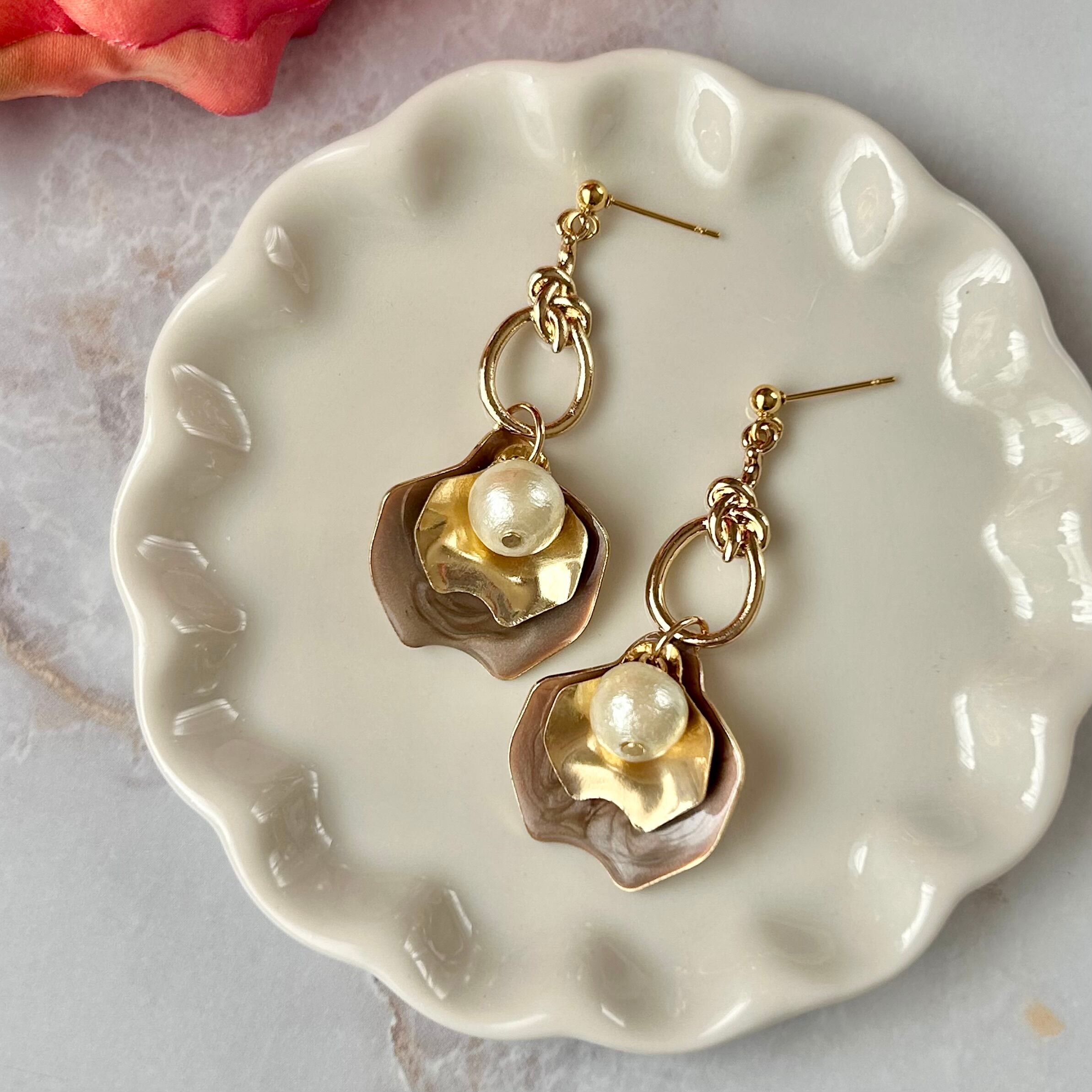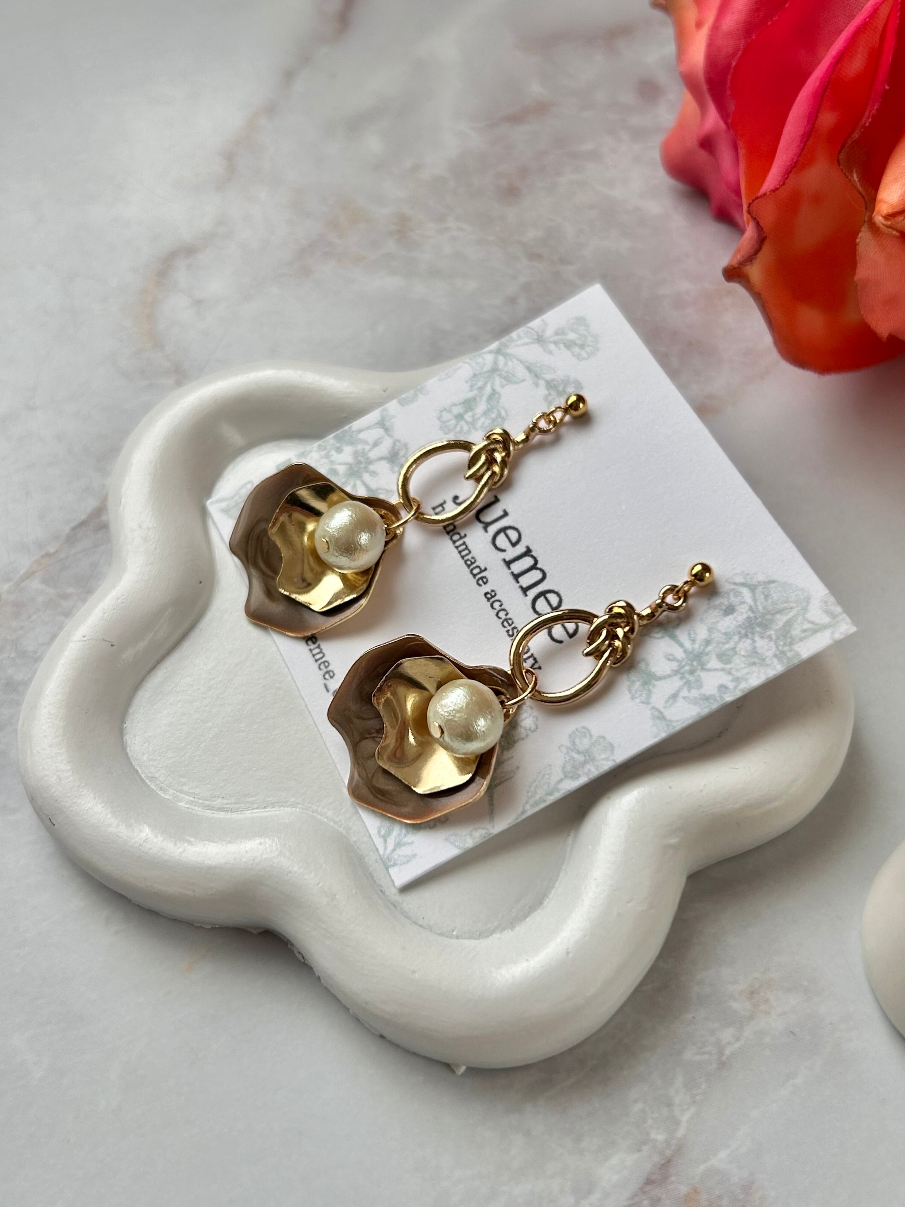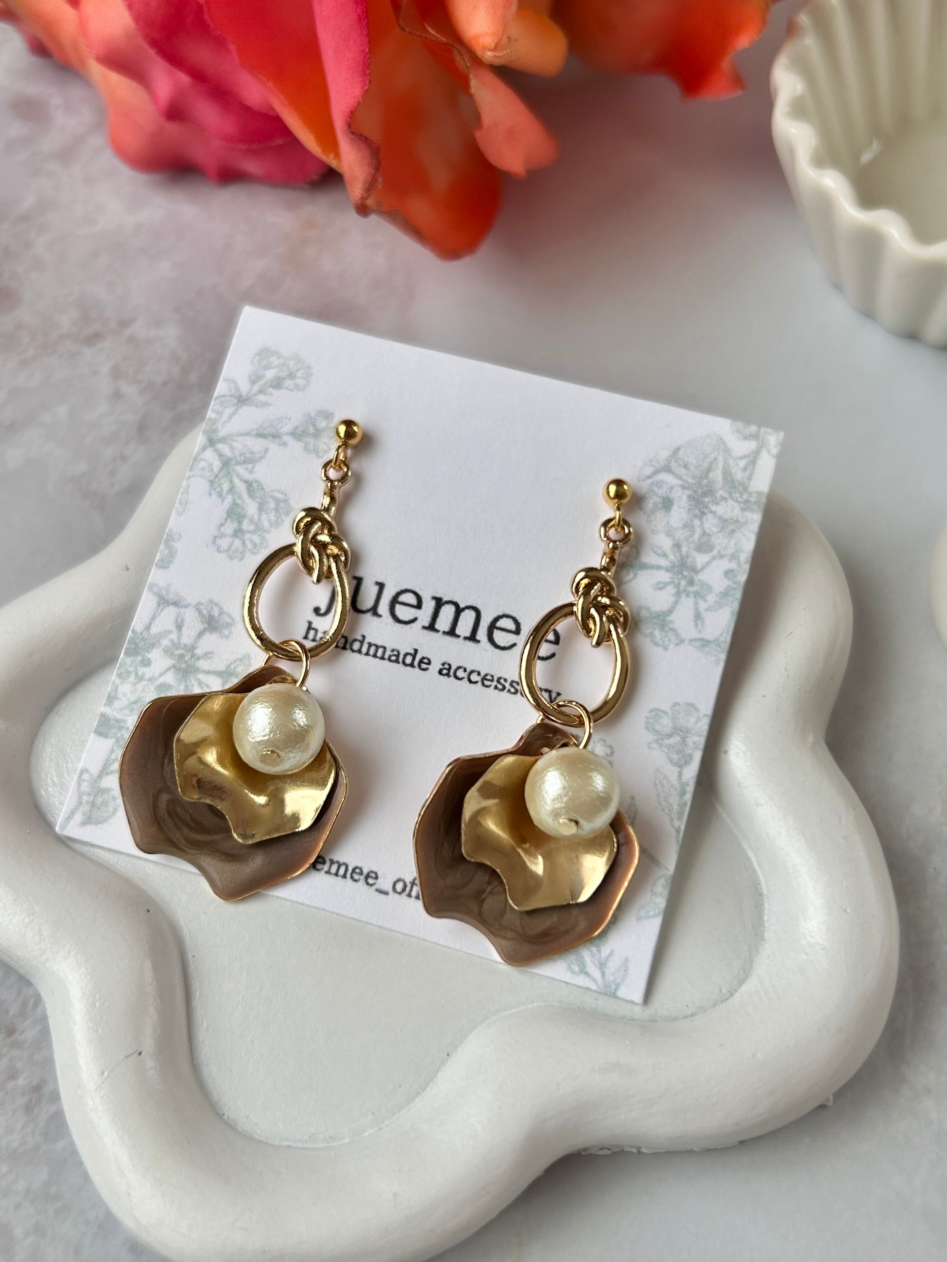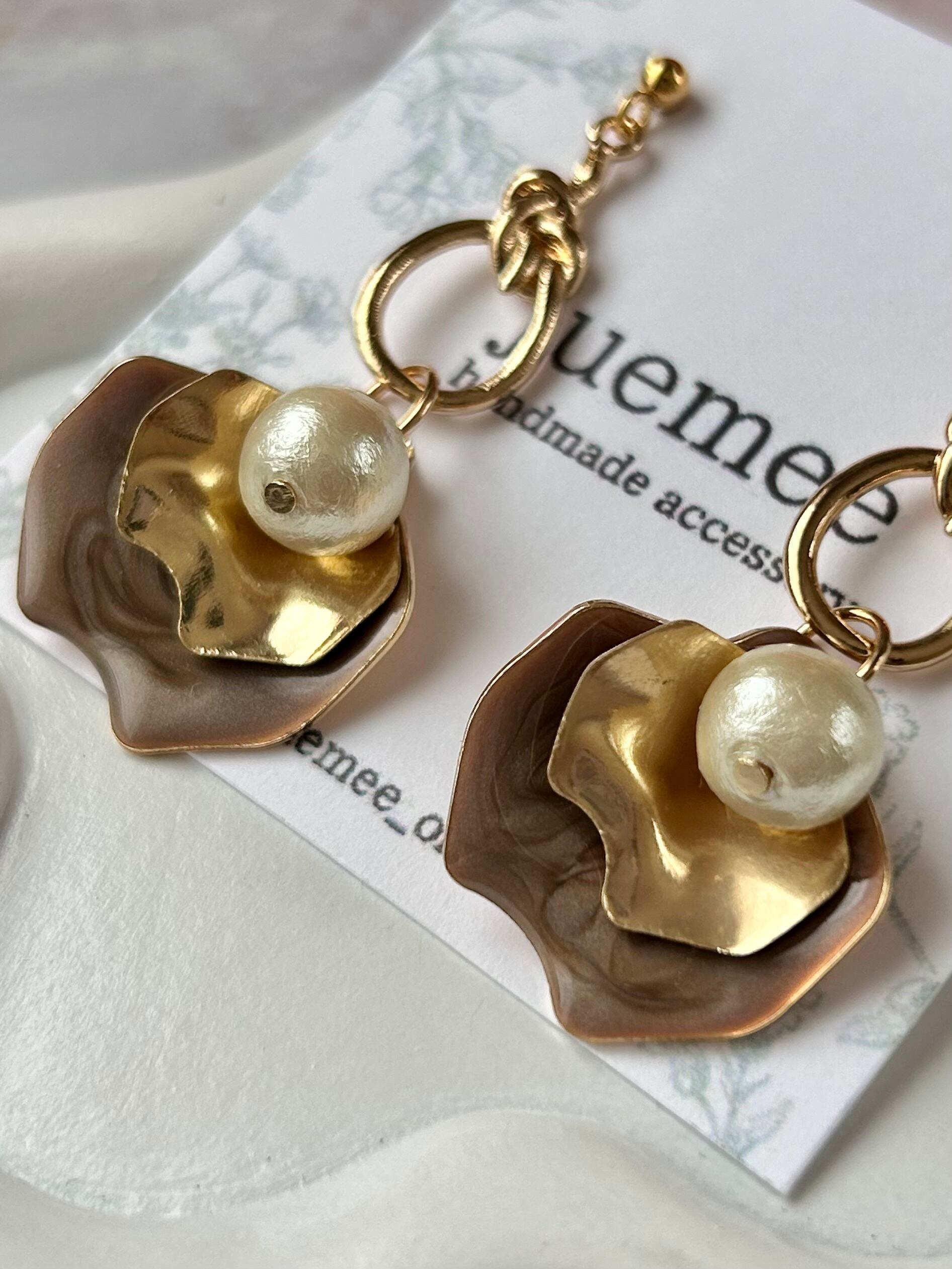 ブラウンの花びらモチーフピアス&イヤリングです♡