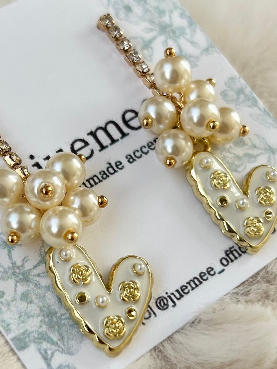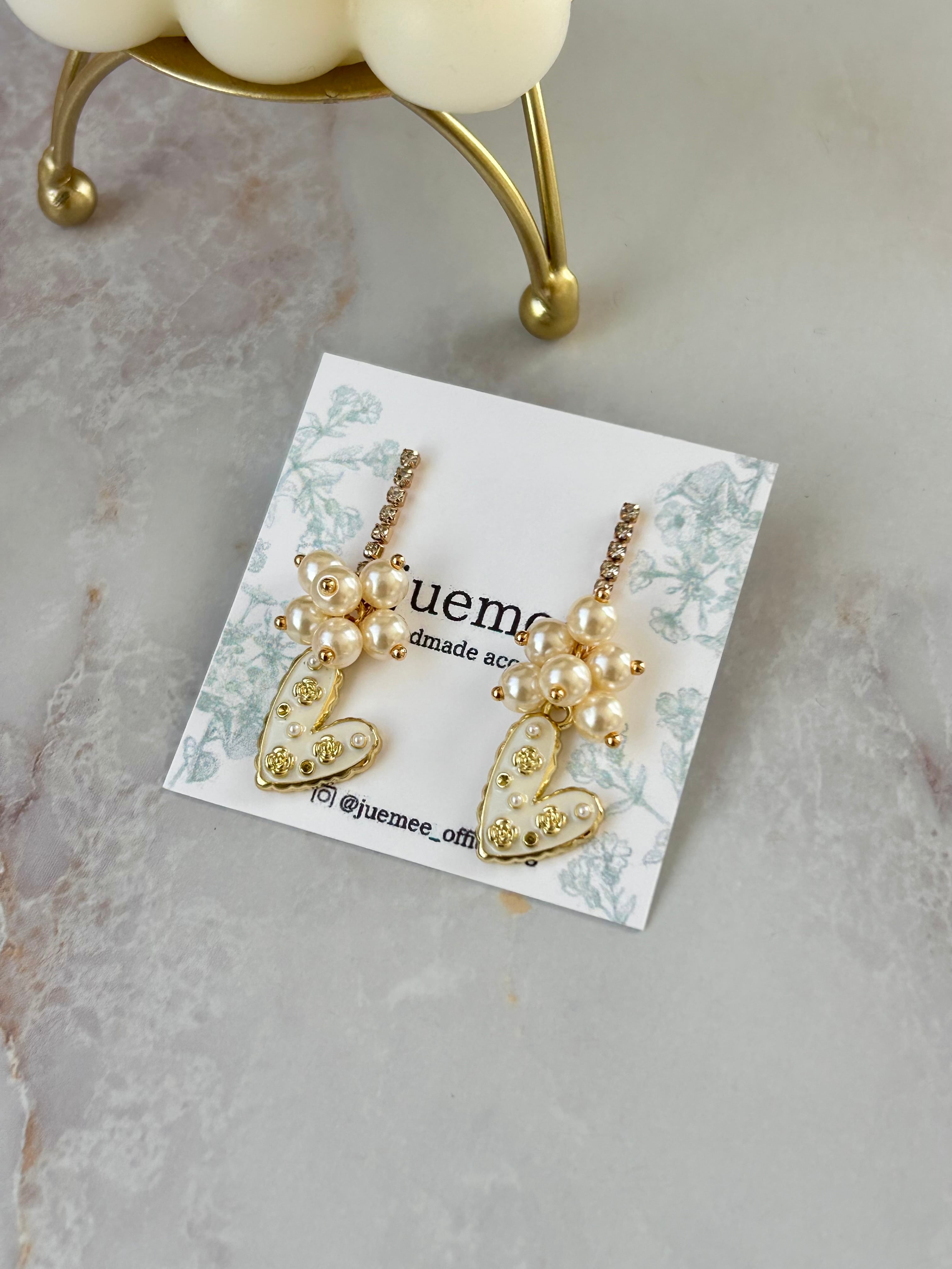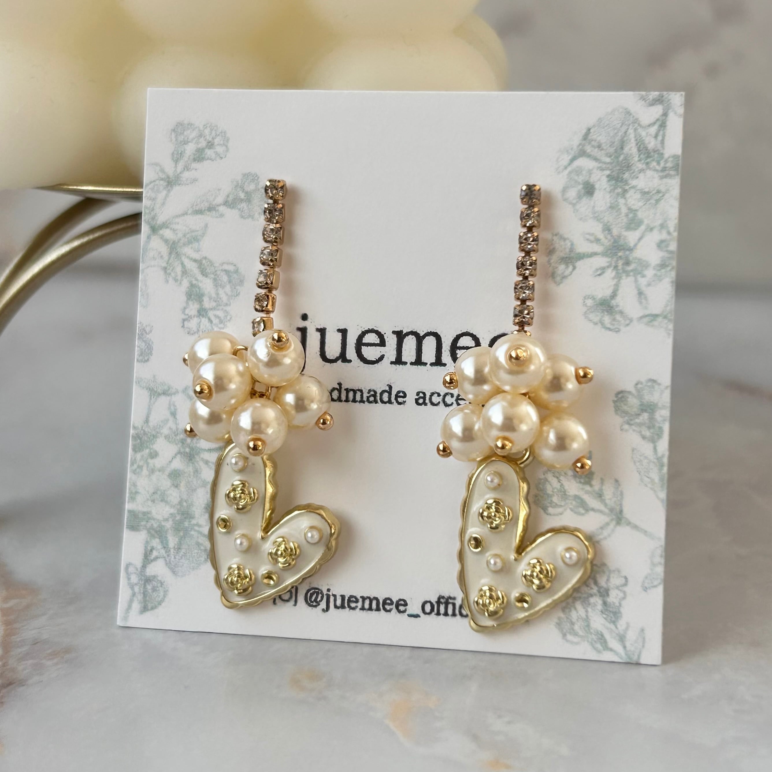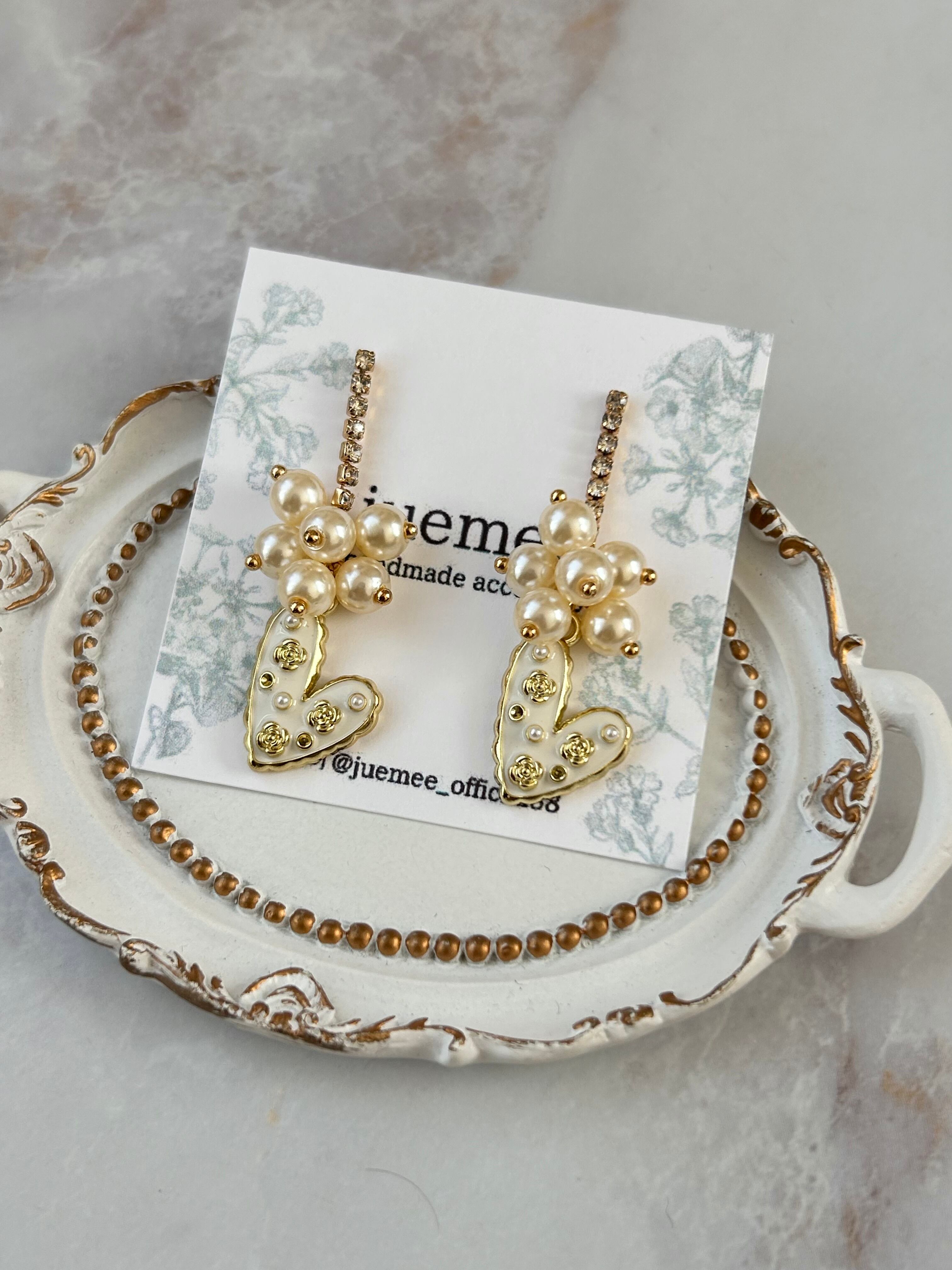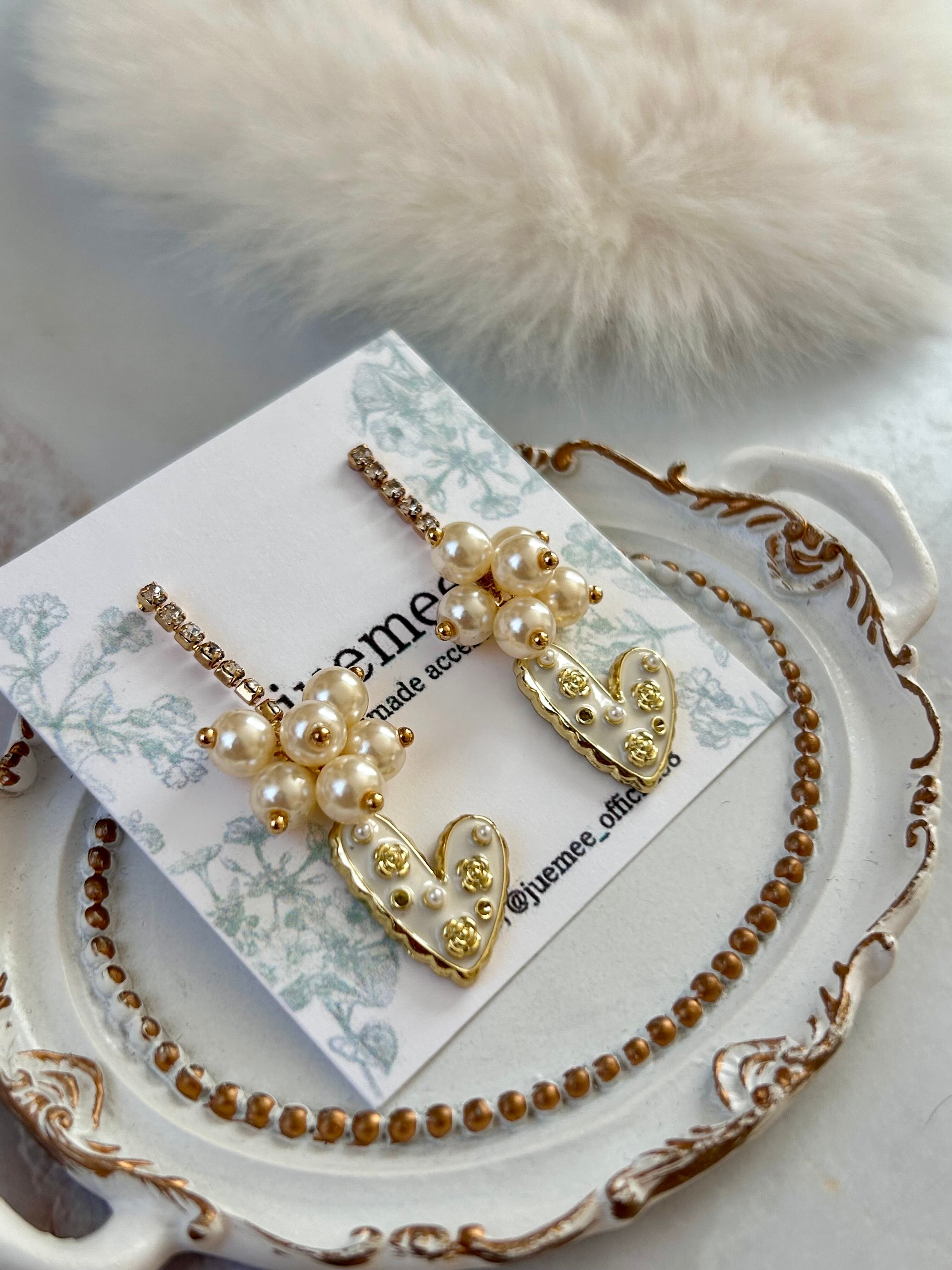 ハートには小さなパールとゴールドの装飾が散りばめられ、