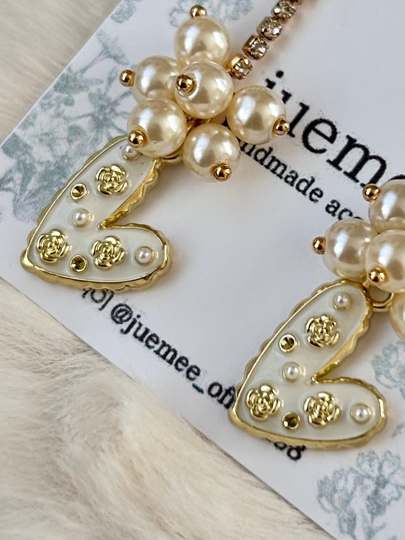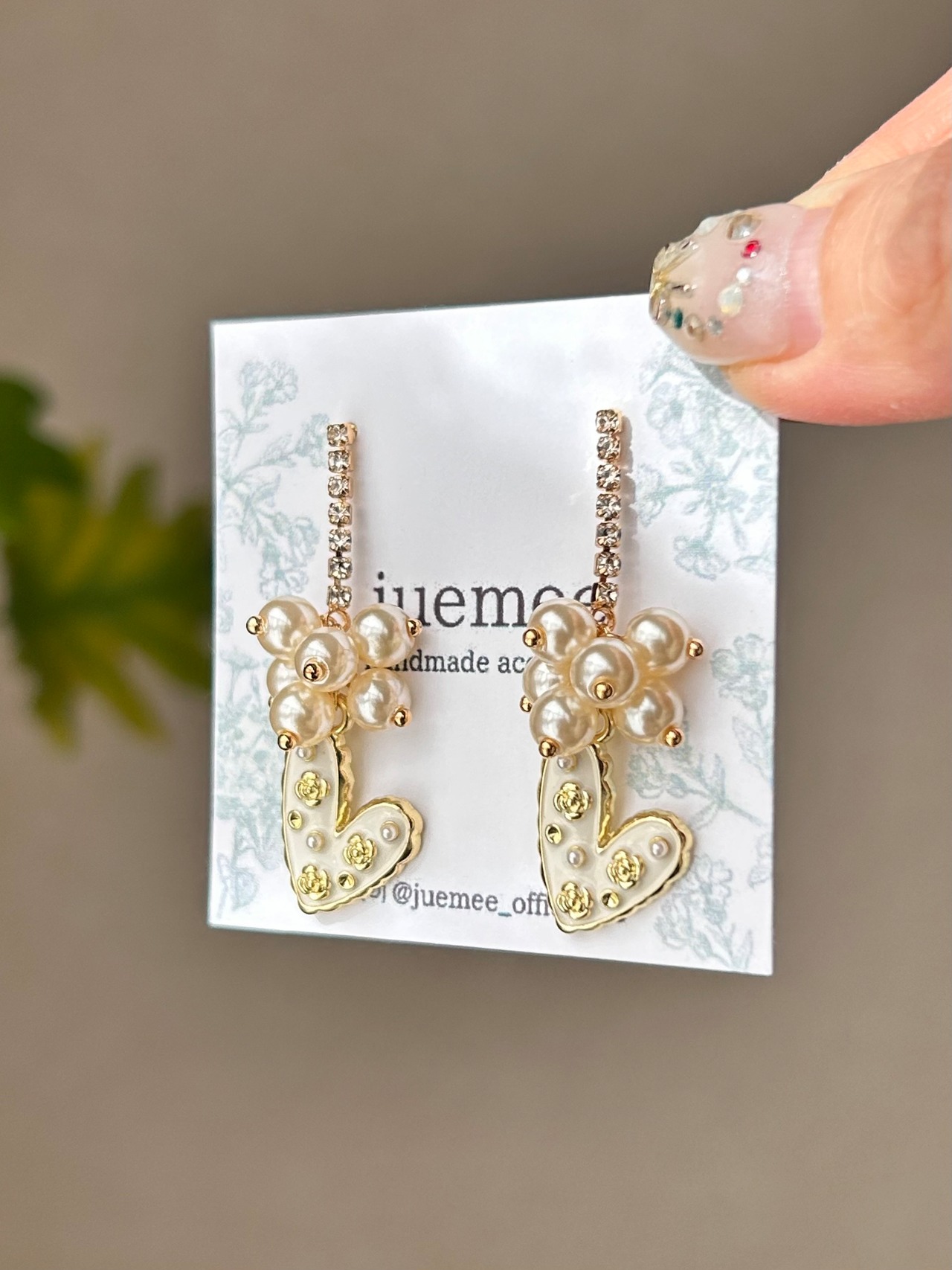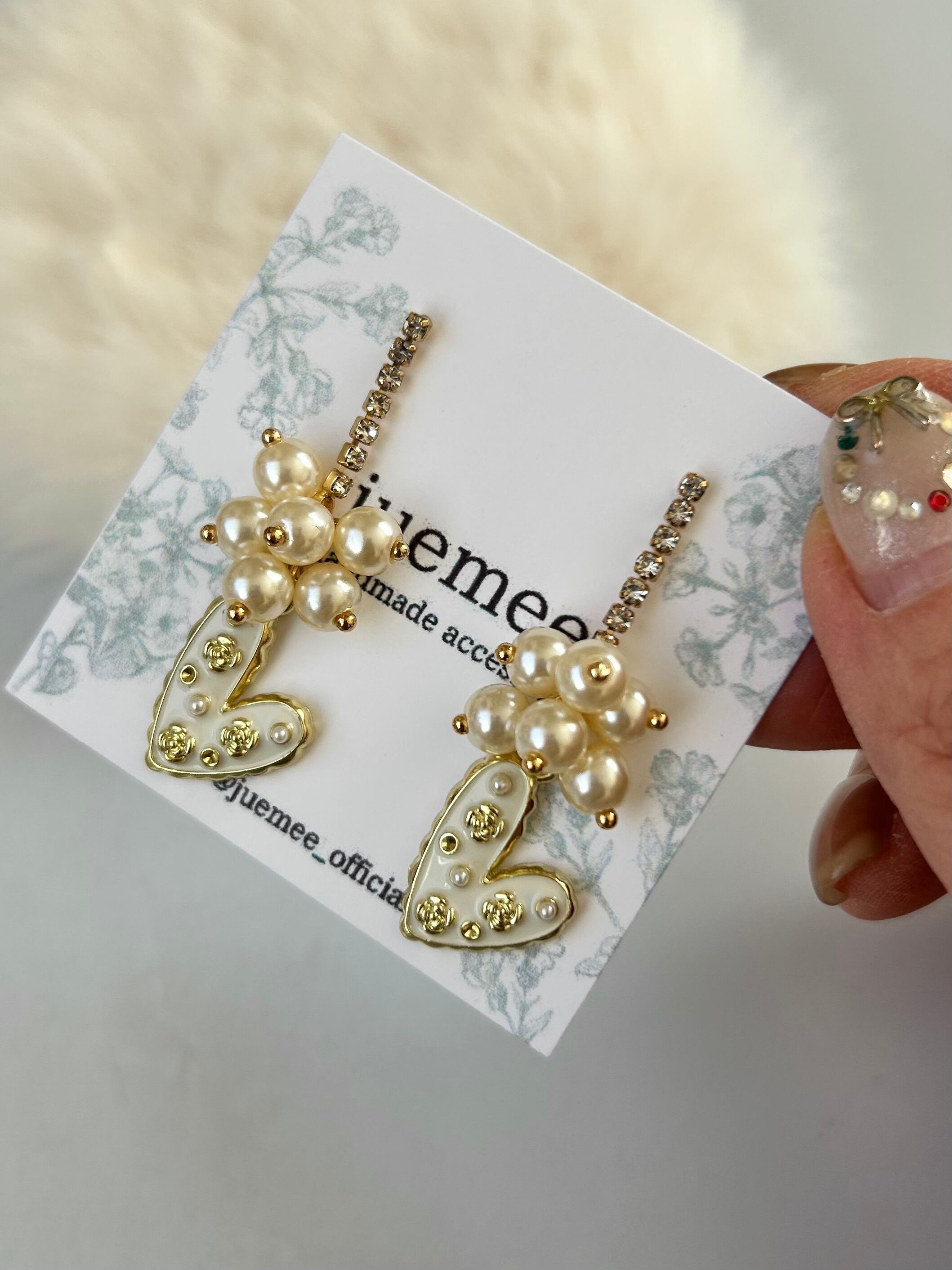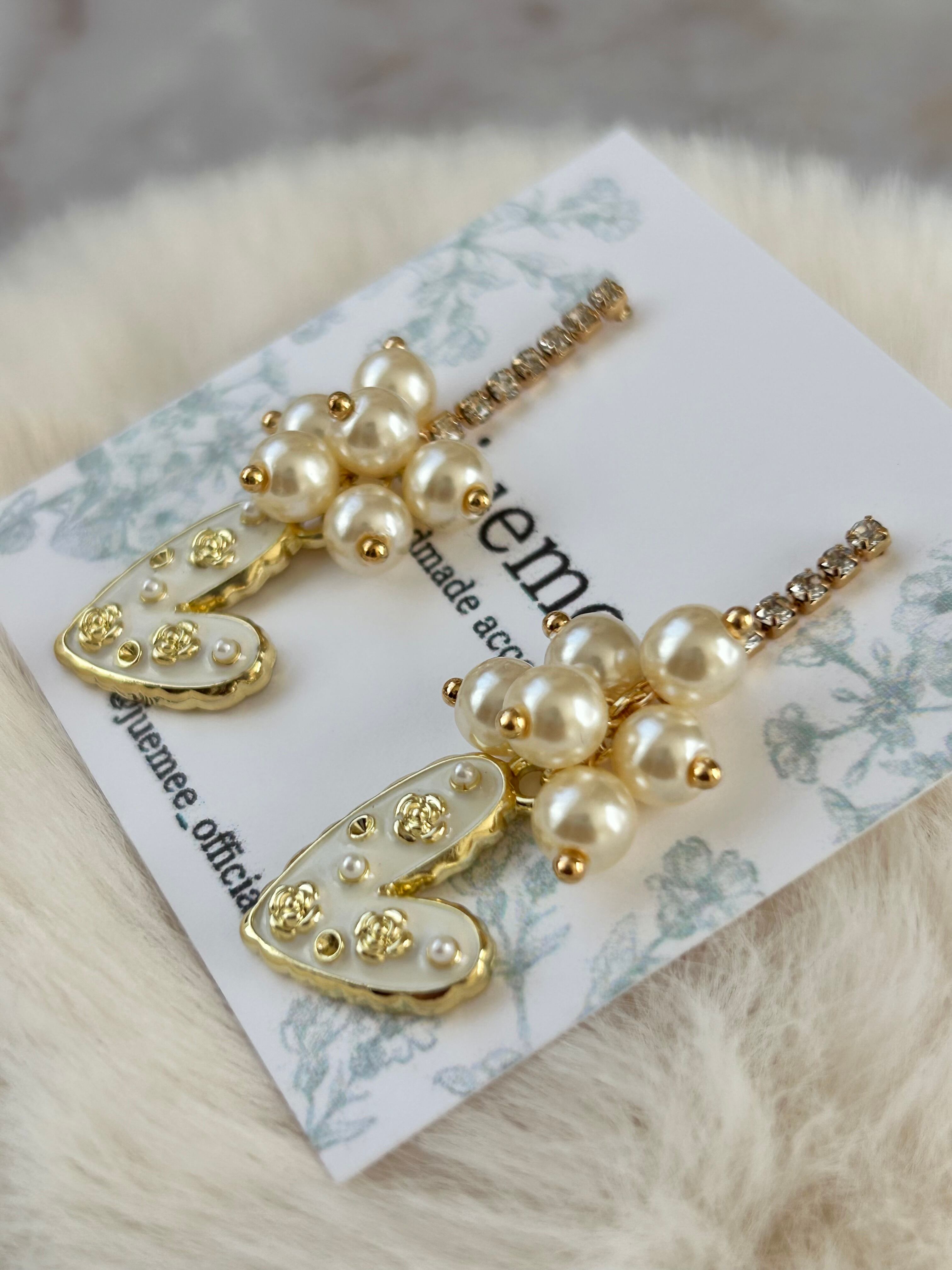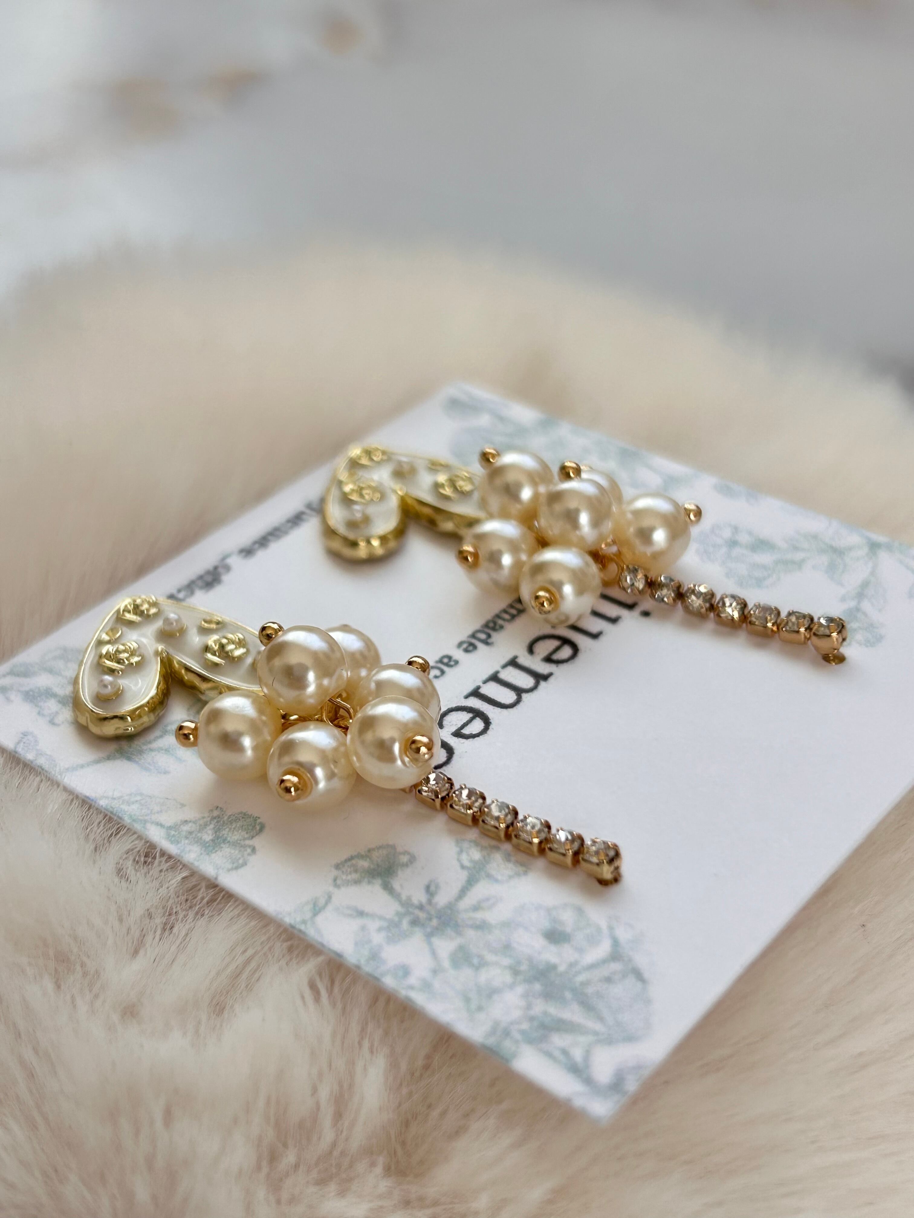 ハートには小さなパールとゴールドの装飾が散りばめられ、