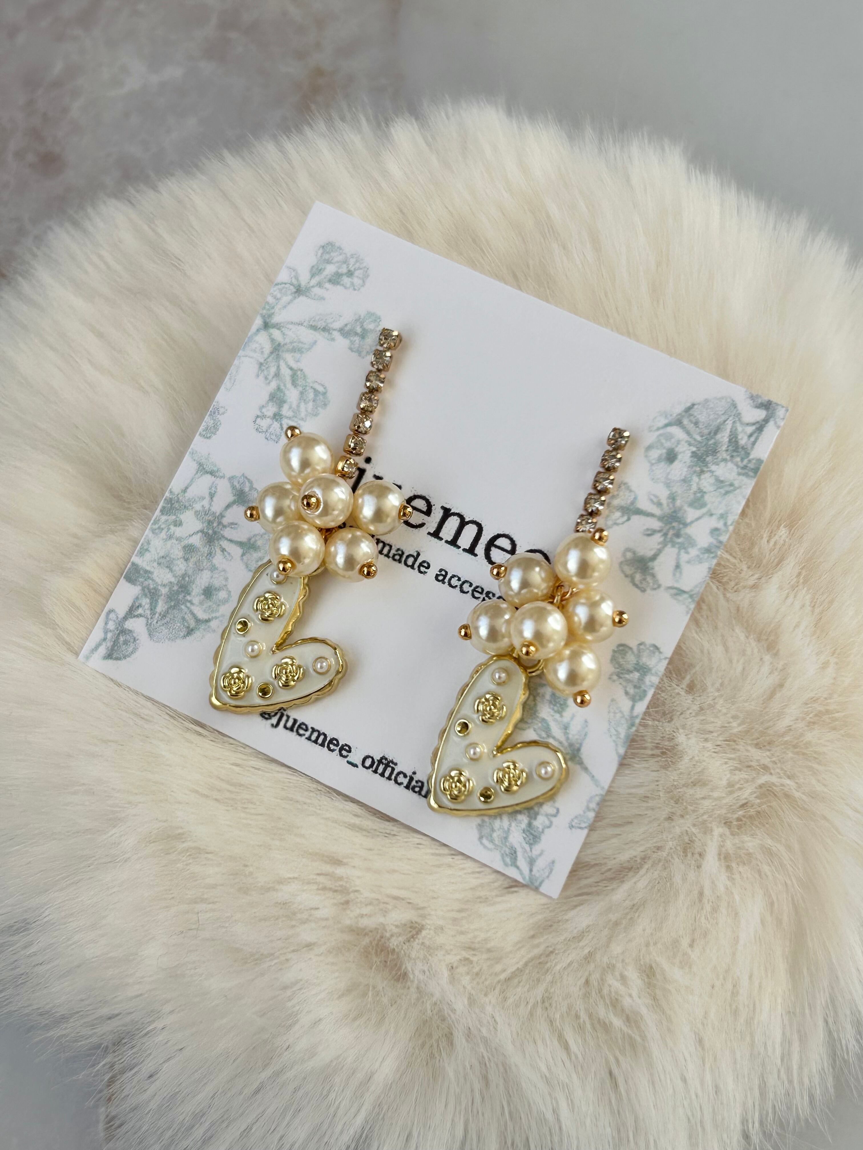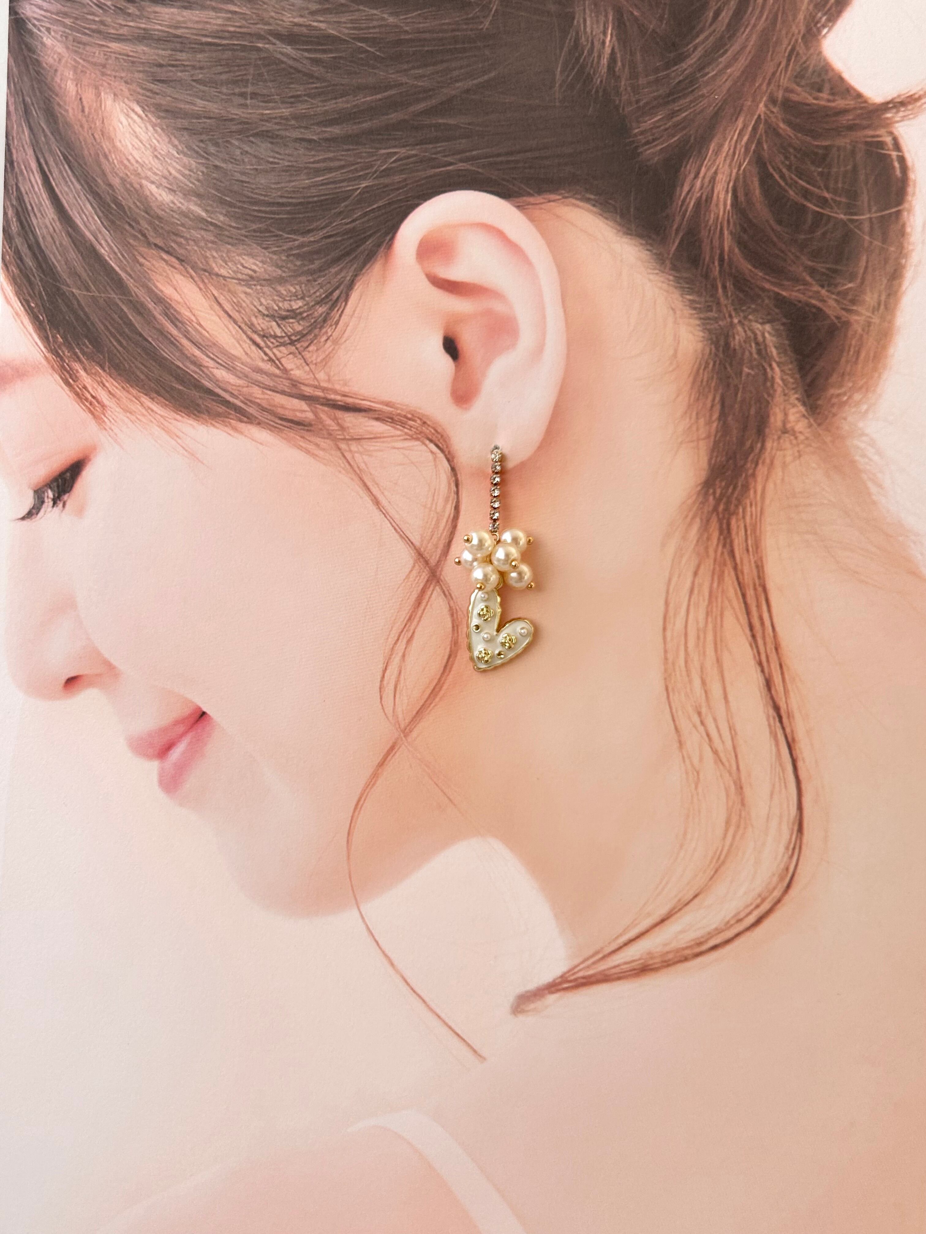 パール×ハート|ピアス|Blooming Heart