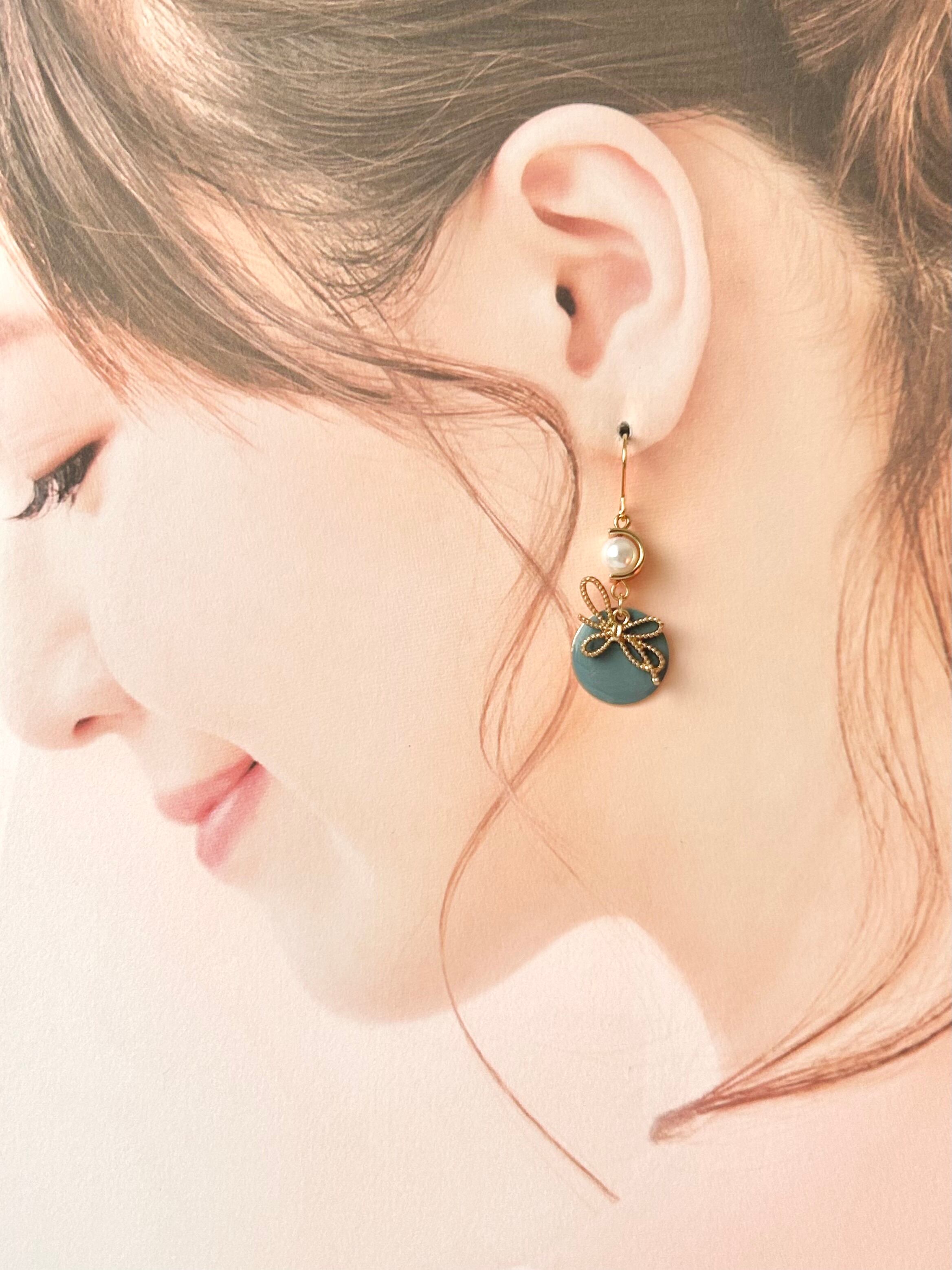 リボン×パール|ピアス|イヤリング|calme