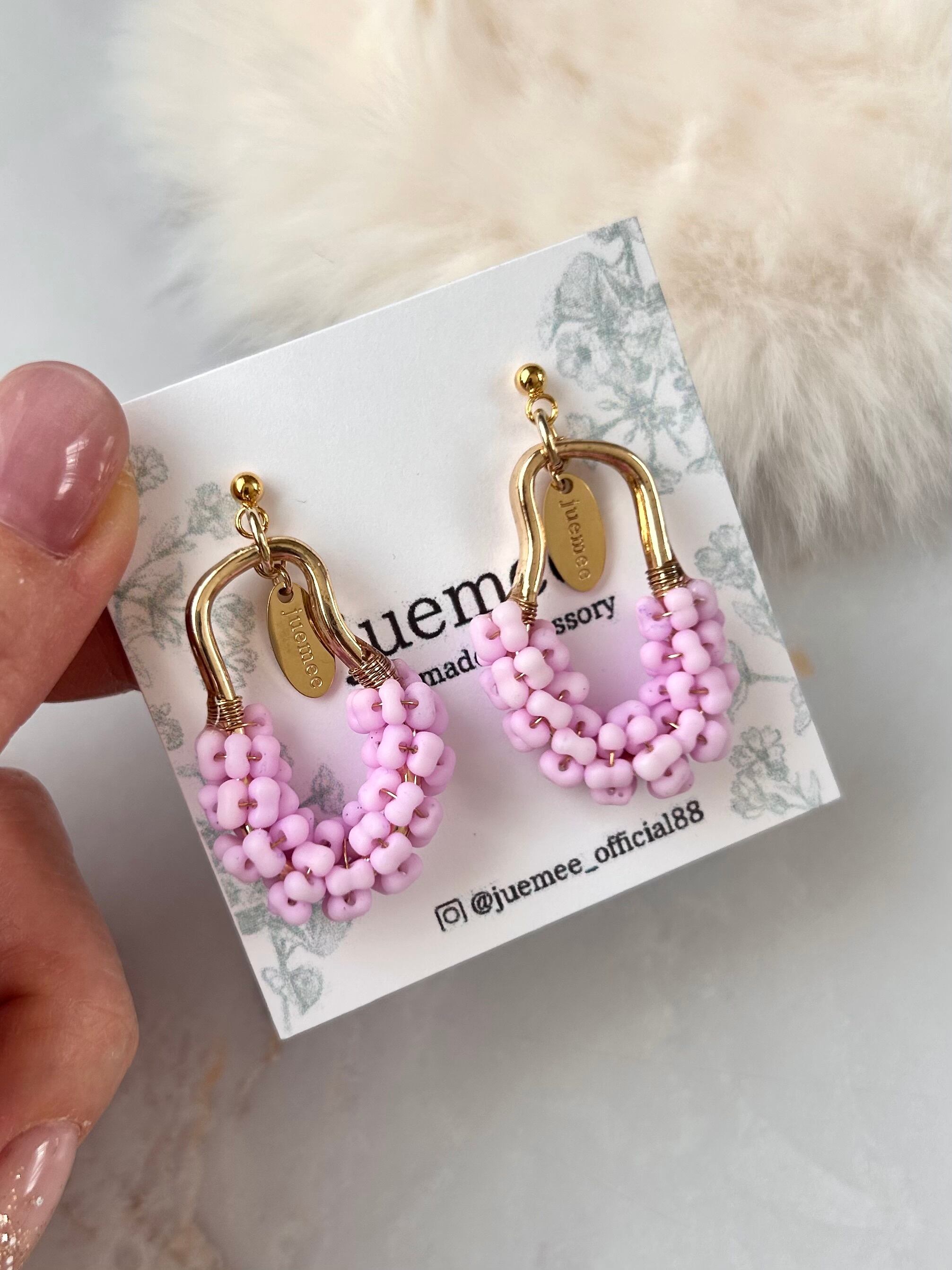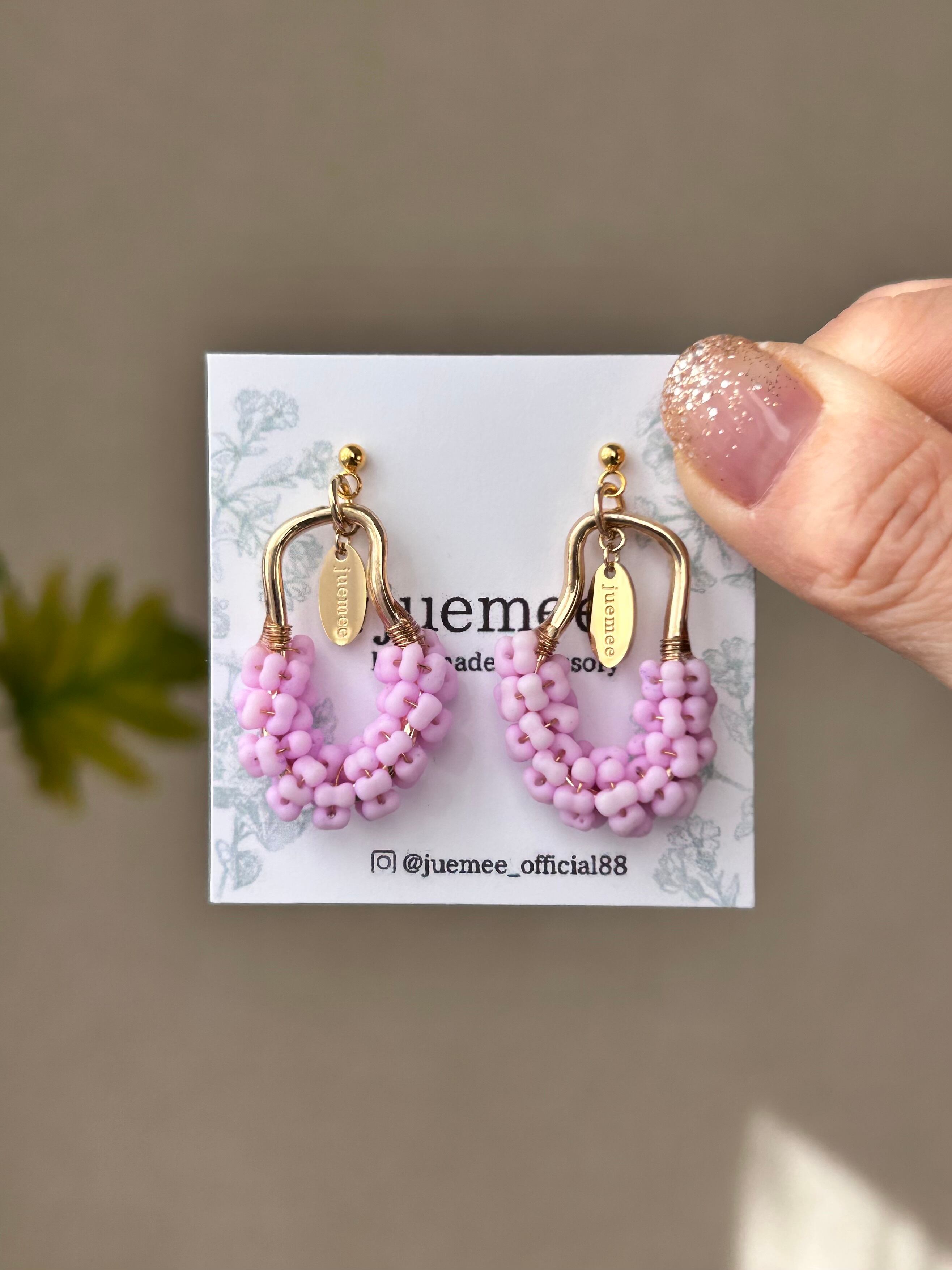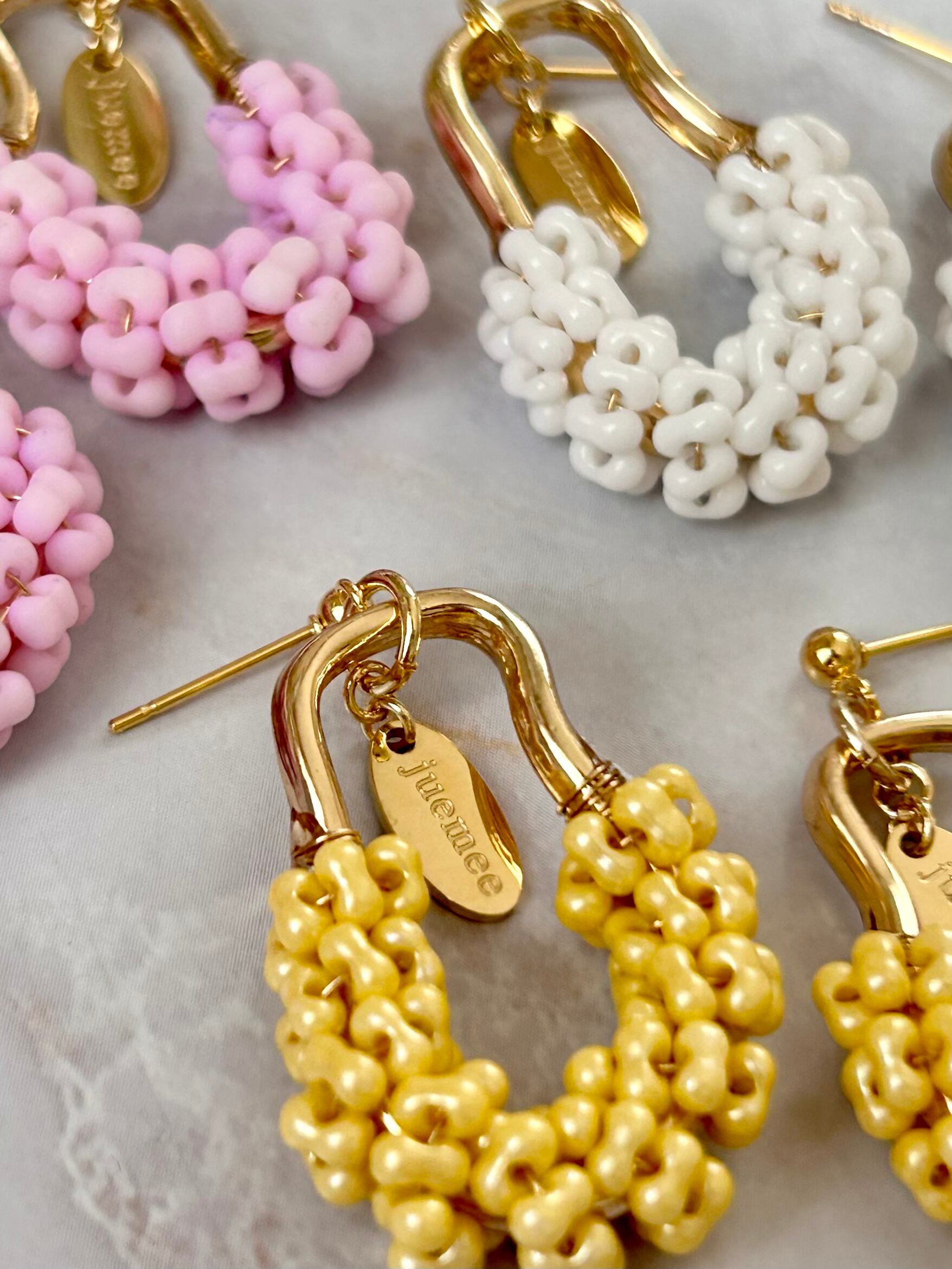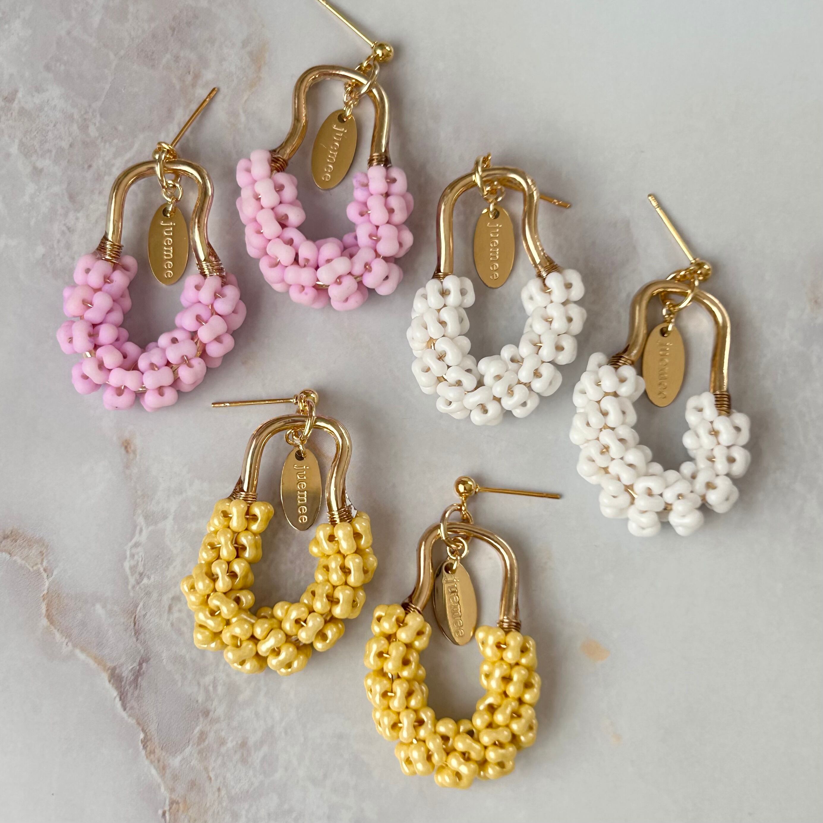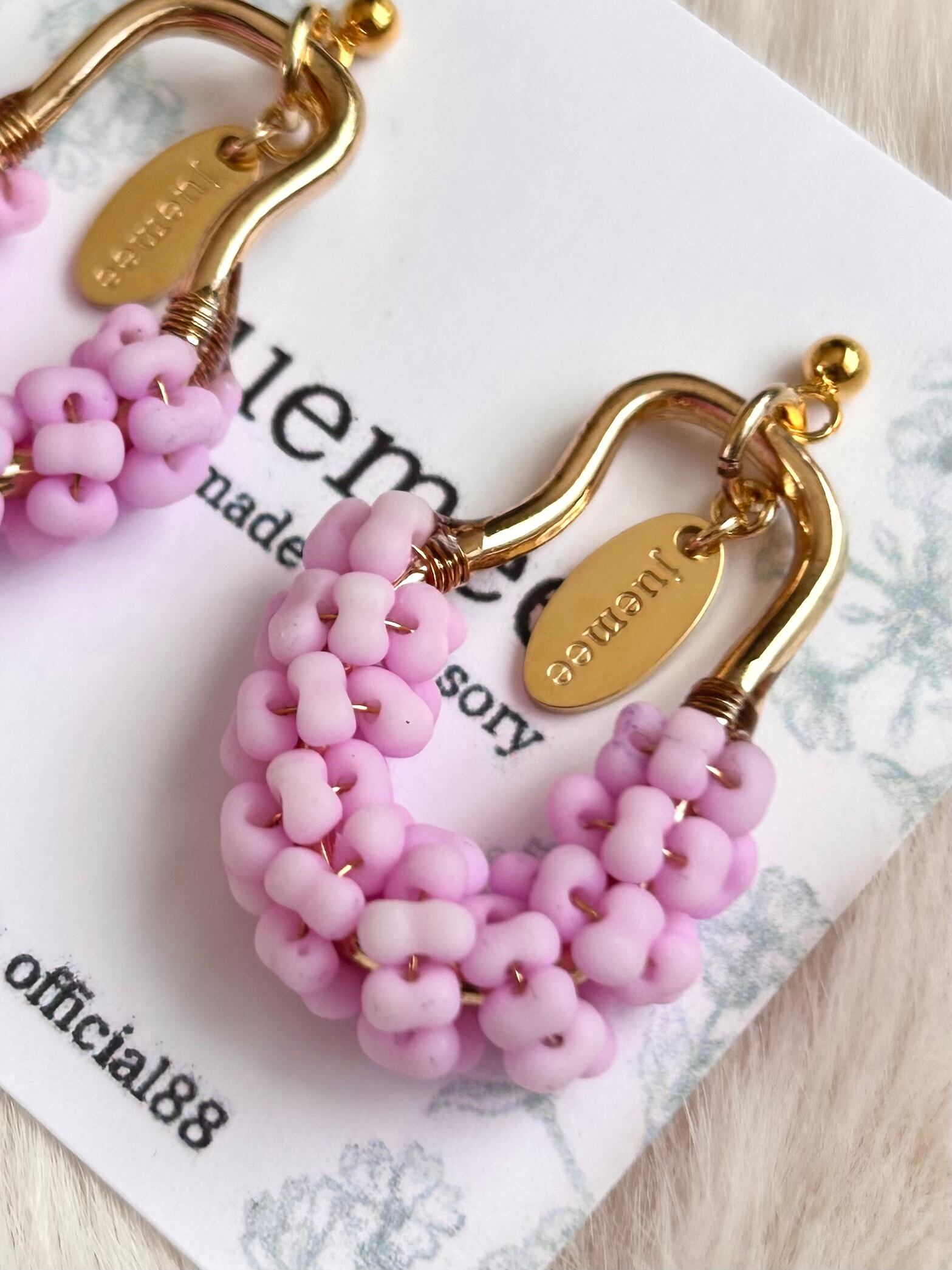 ワイヤーでひとつひとつ丁寧にファルファーレビーズを編み上げた、juemeeオリジナルのピアス&イヤリングです♡