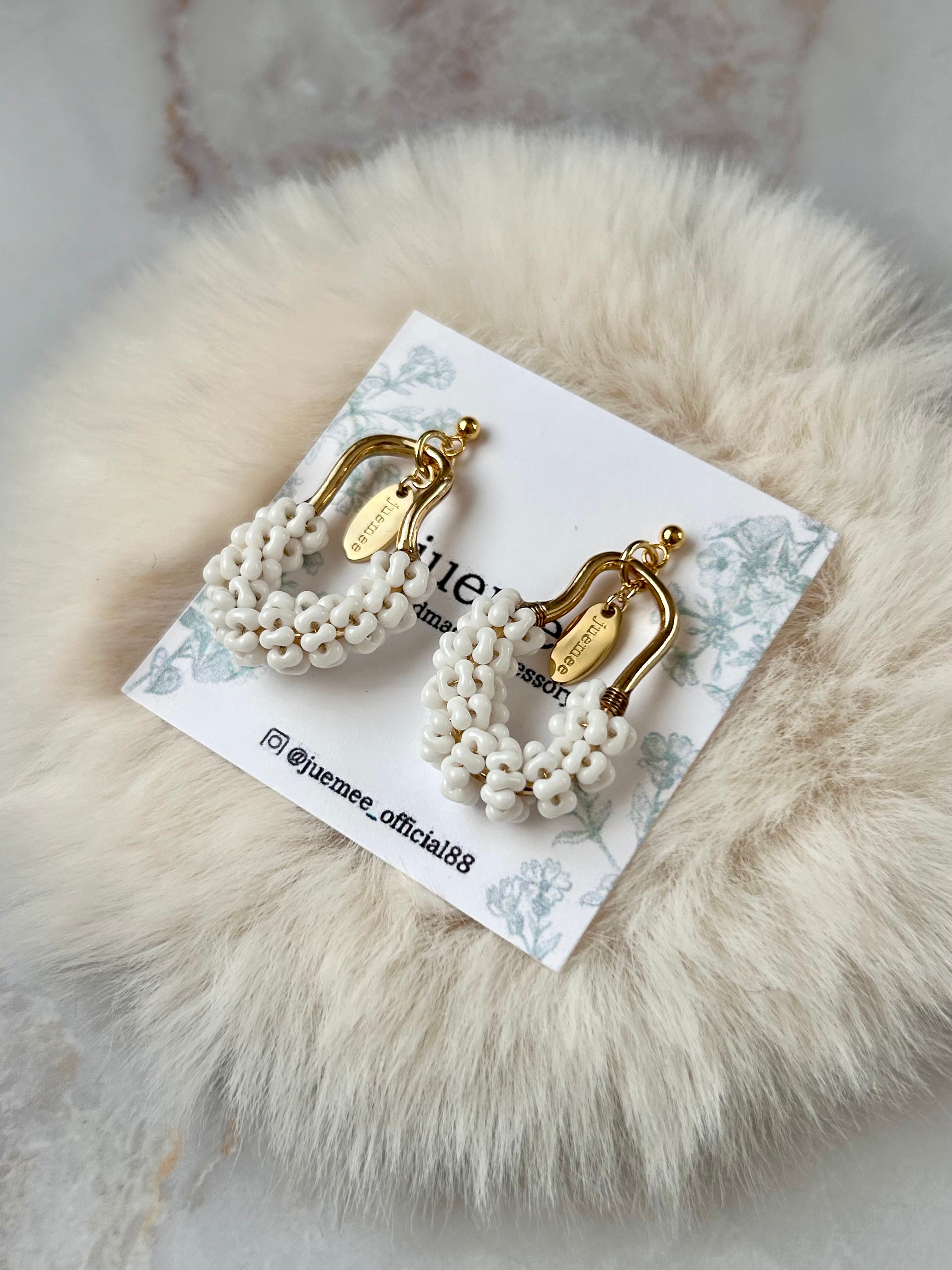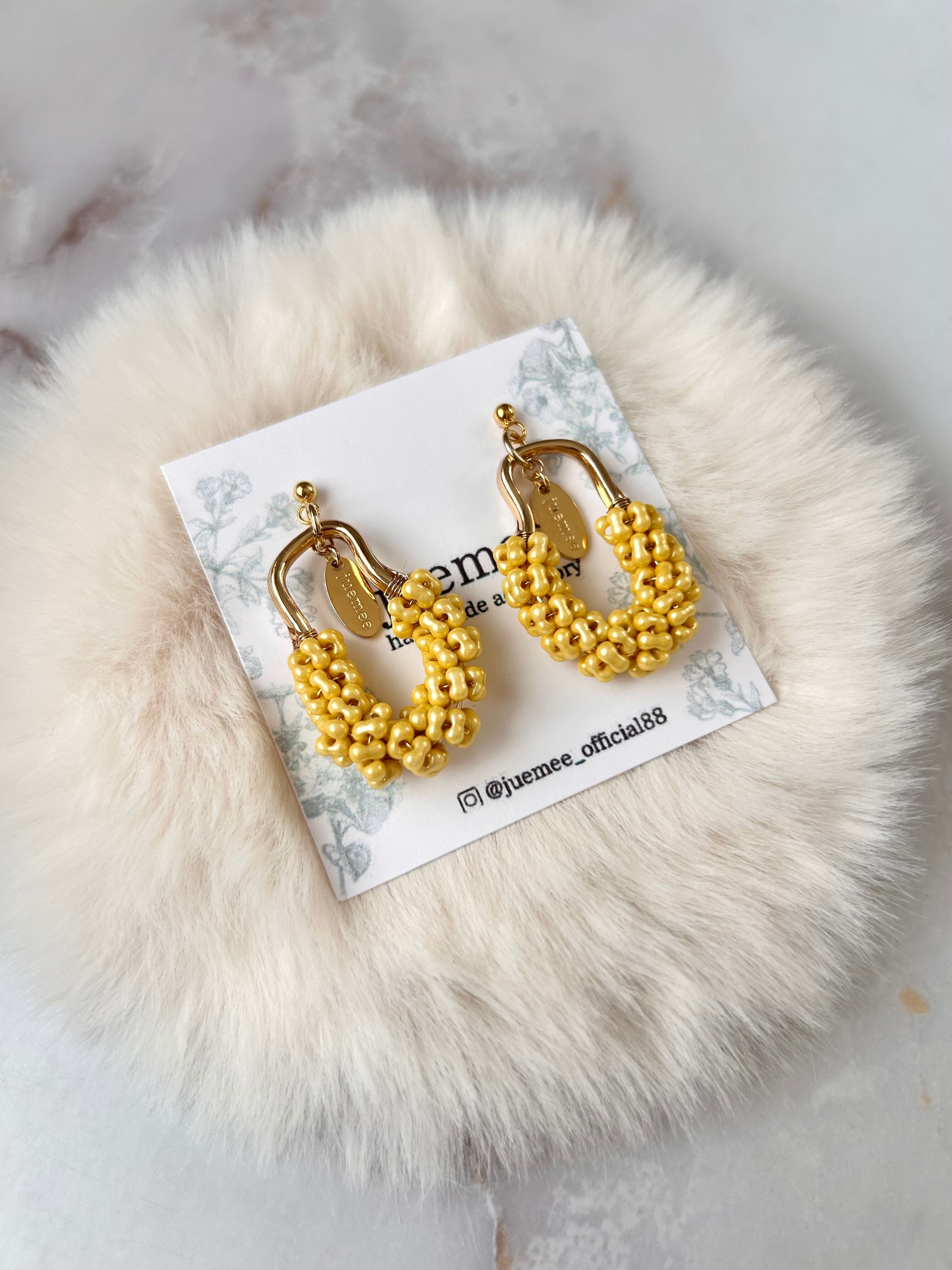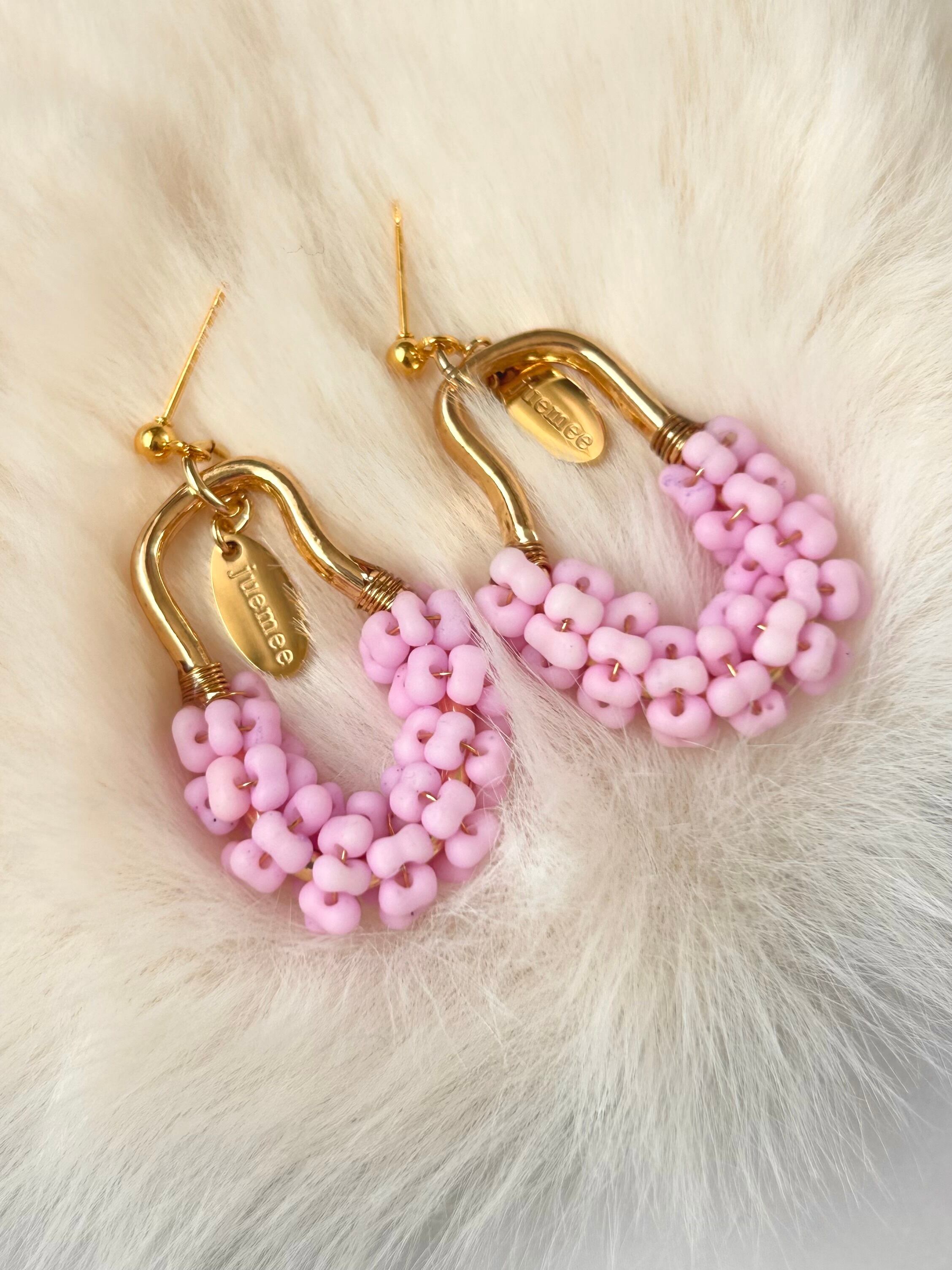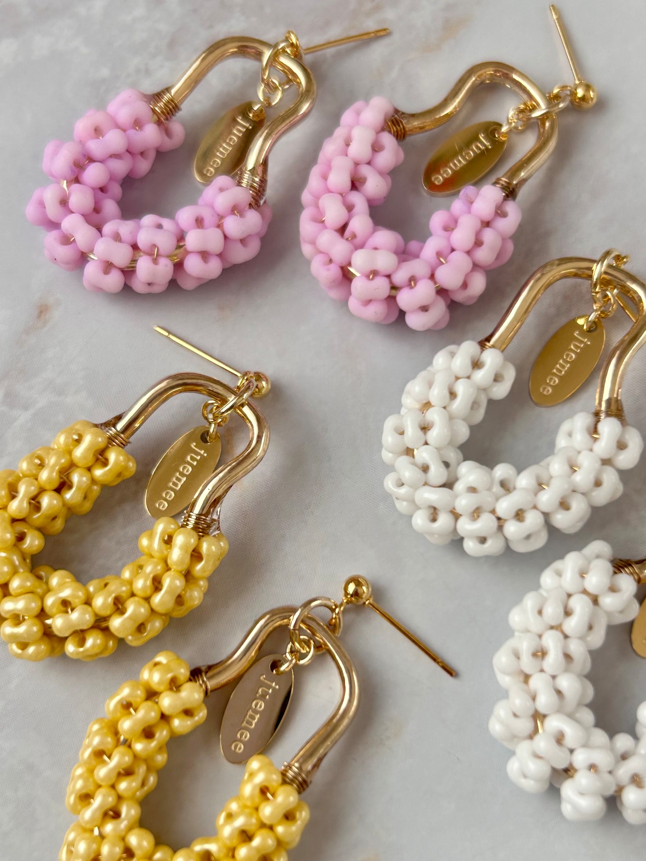 ワイヤーでひとつひとつ丁寧にファルファーレビーズを編み上げた、juemeeオリジナルのピアス&イヤリングです♡