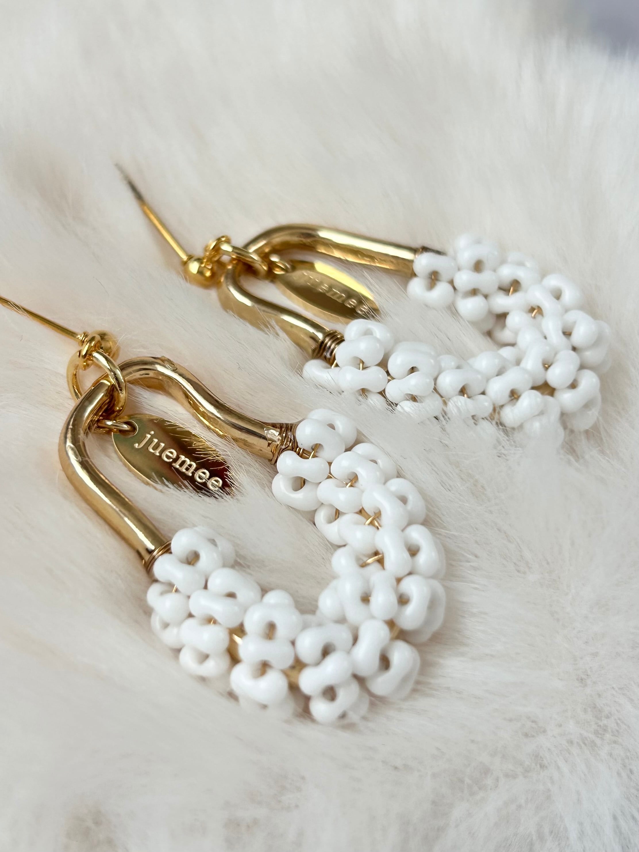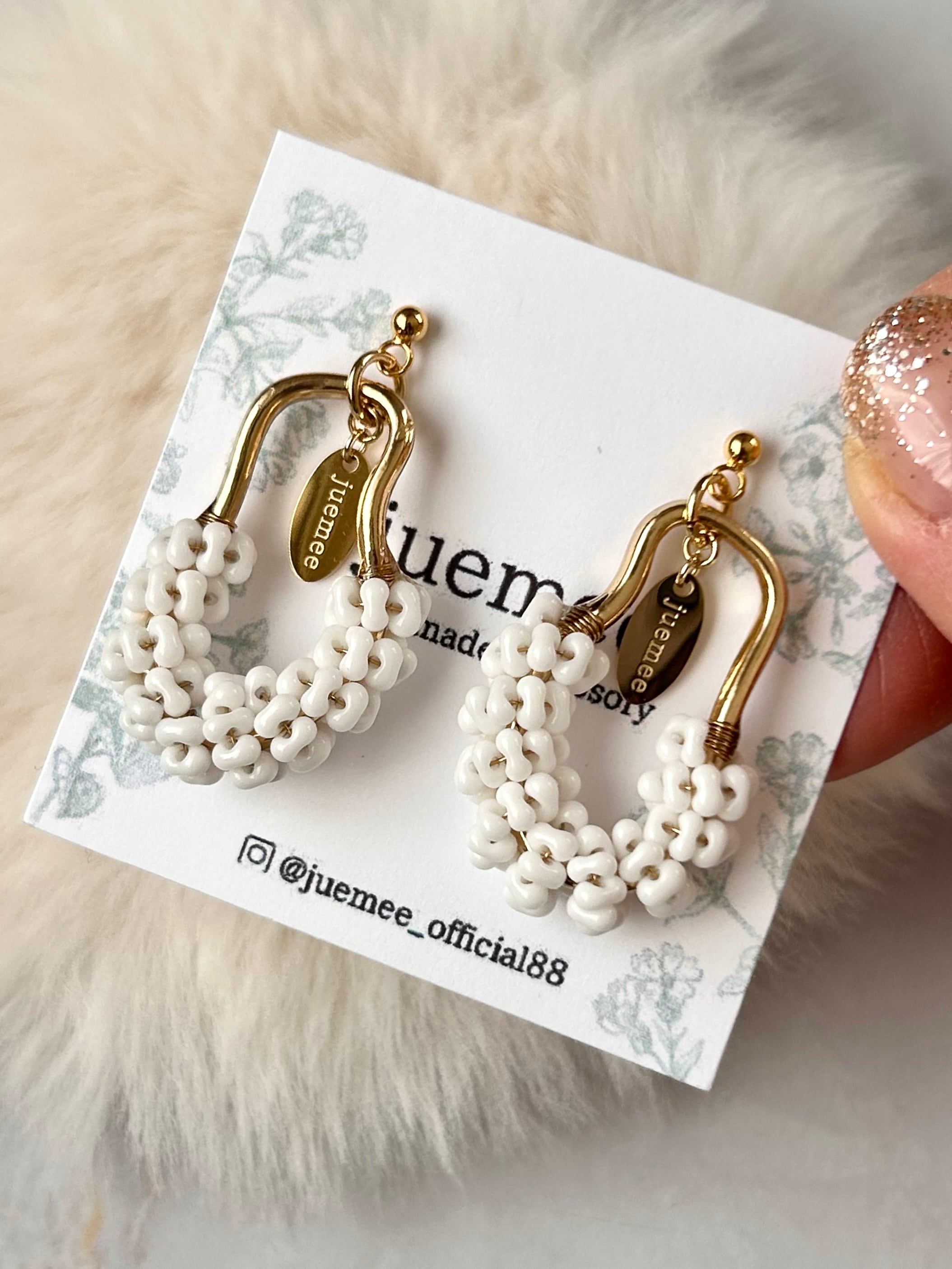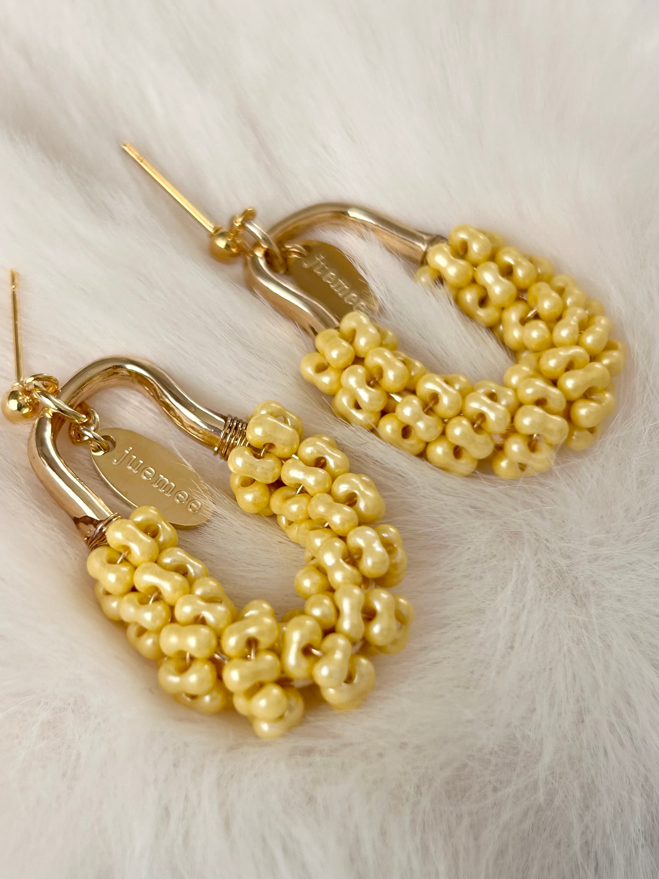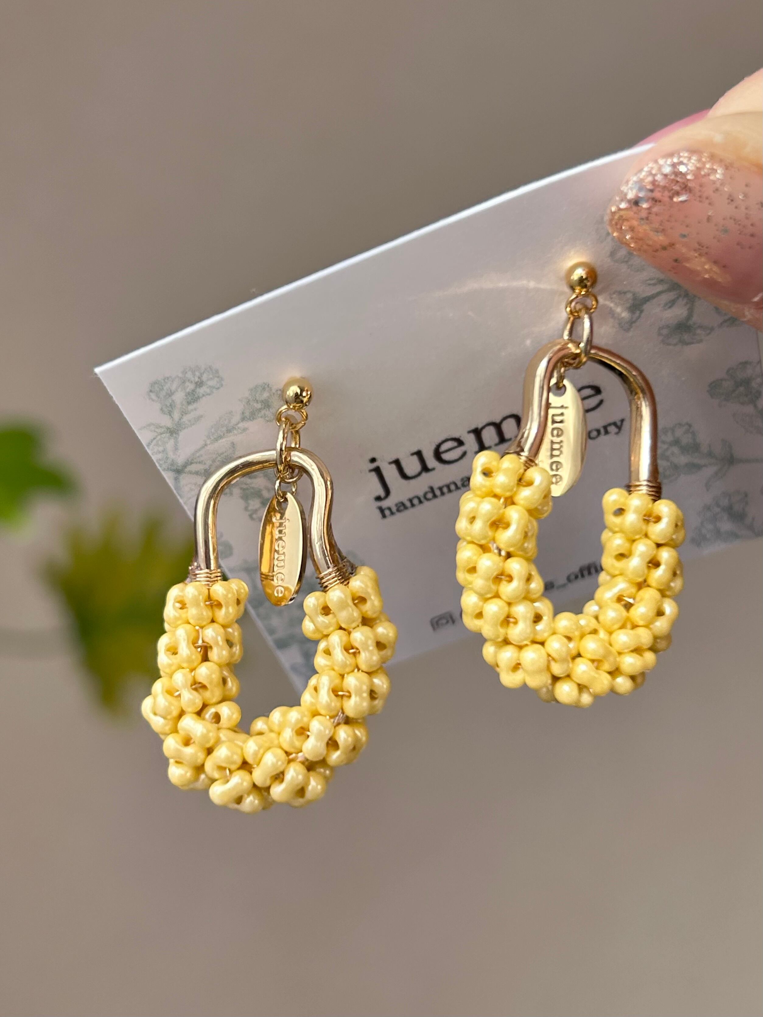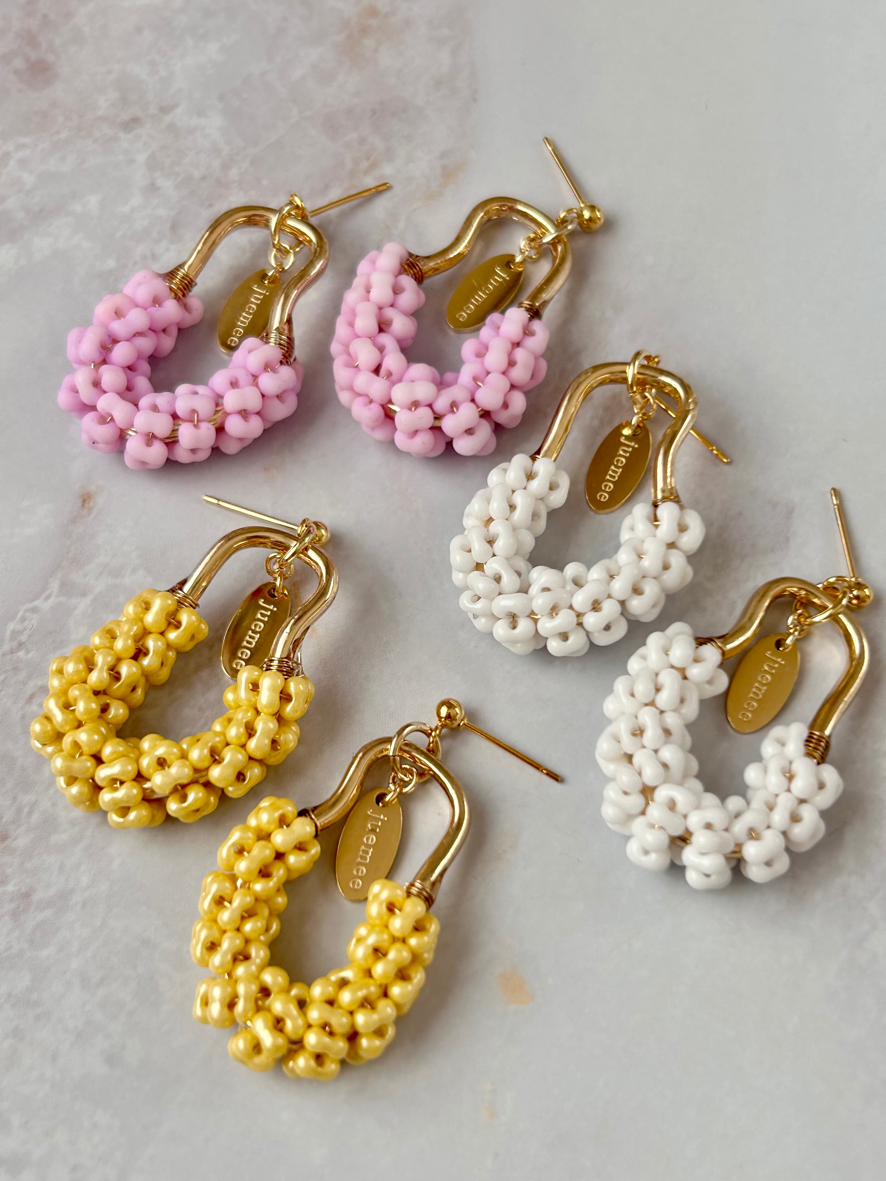ワイヤーでひとつひとつ丁寧にファルファーレビーズを編み上げた、juemeeオリジナルのピアス&イヤリングです♡