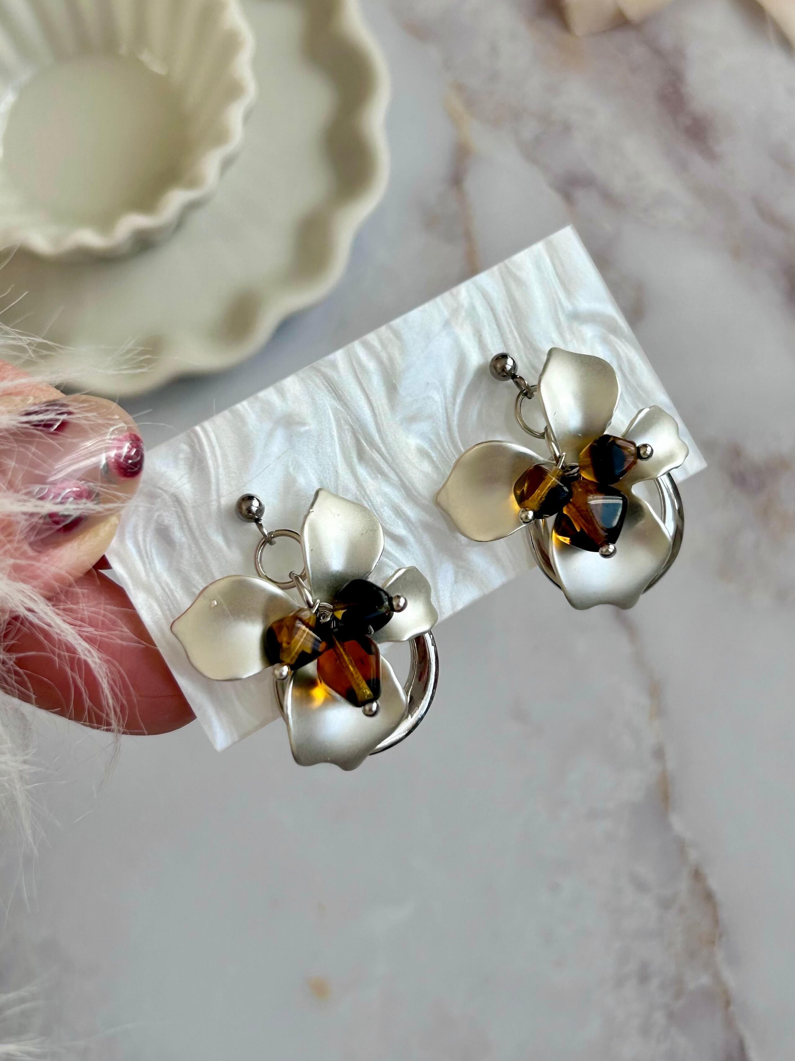 べっ甲×花|ピアス|イヤリング|Victory