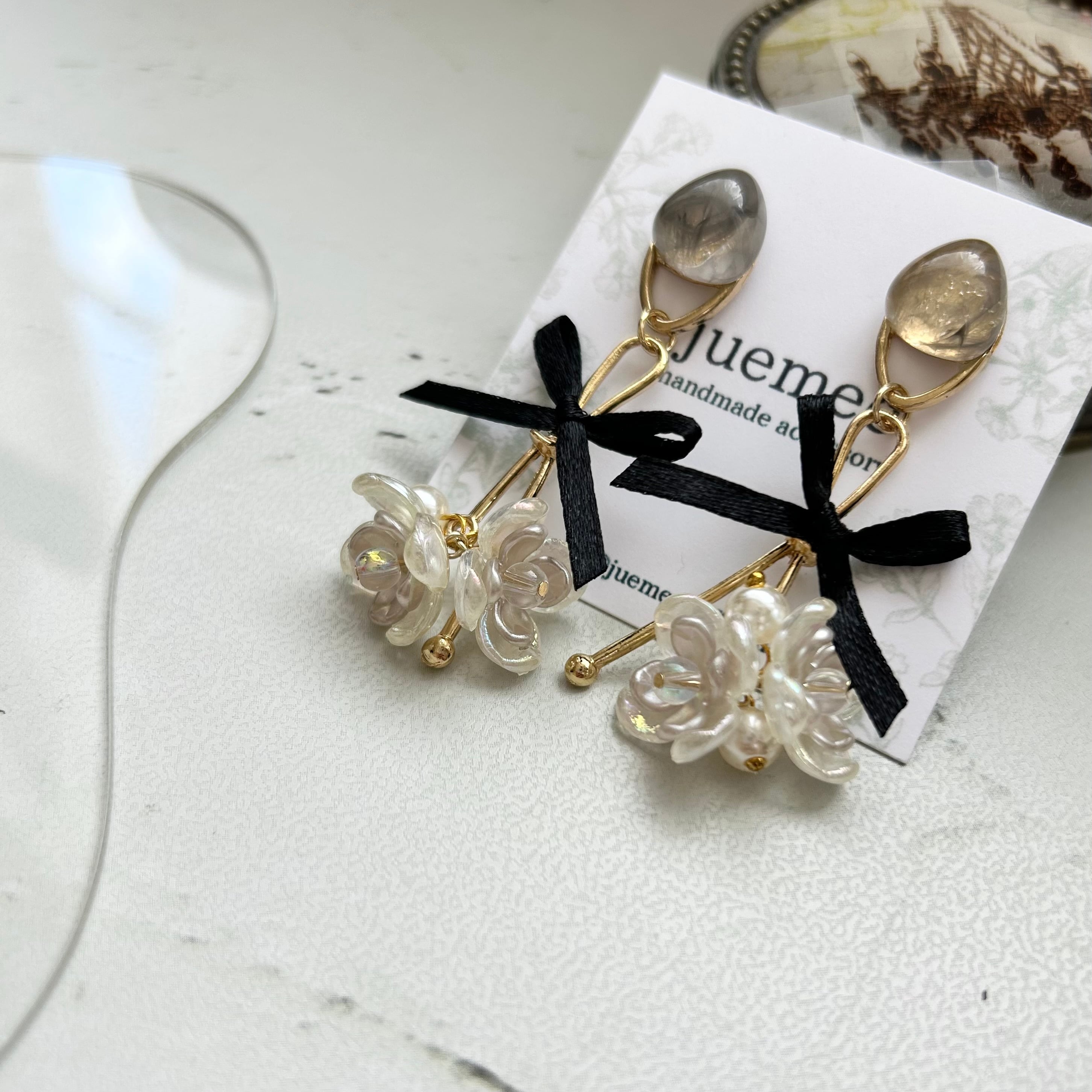 リボン×花|ピアス|イヤリング|yui