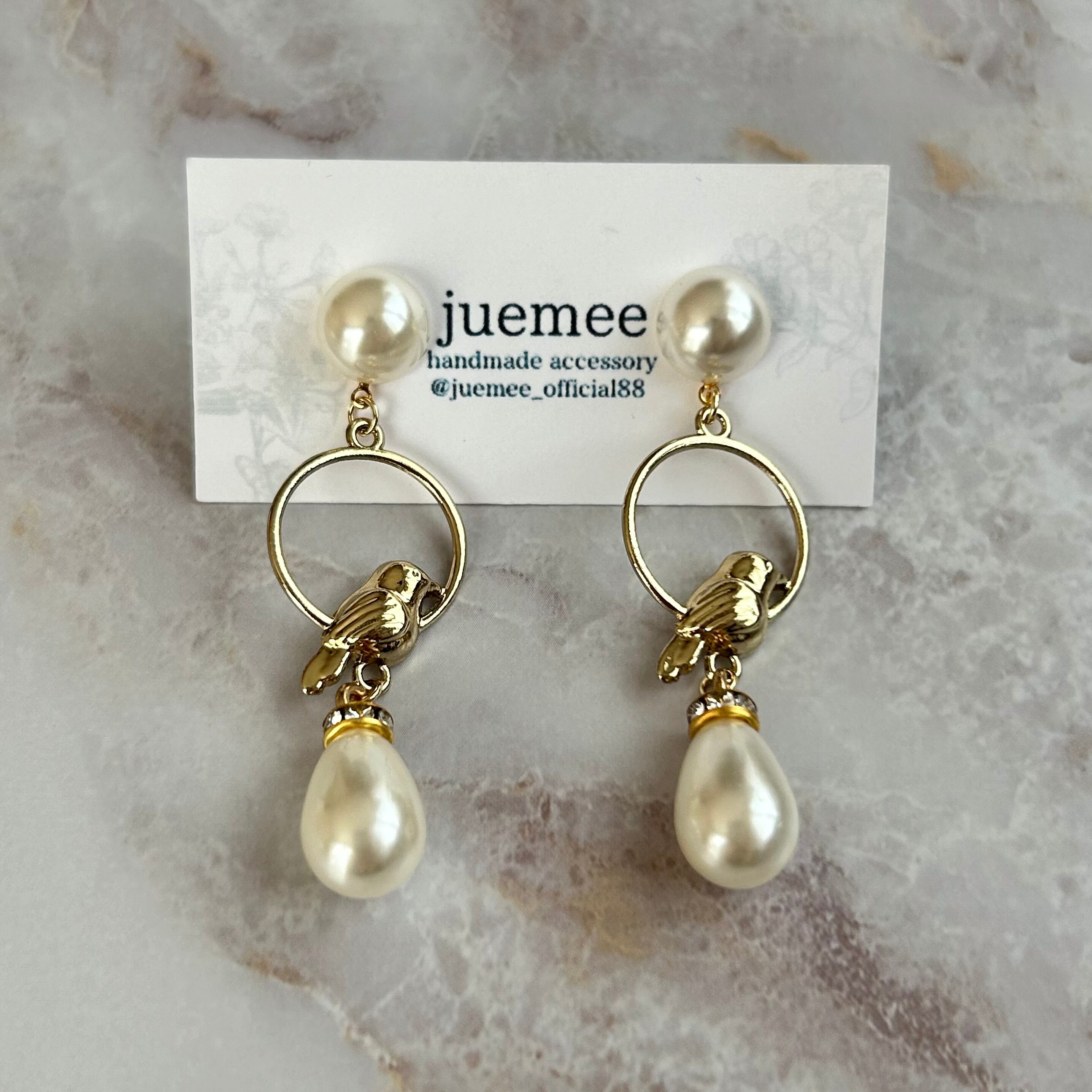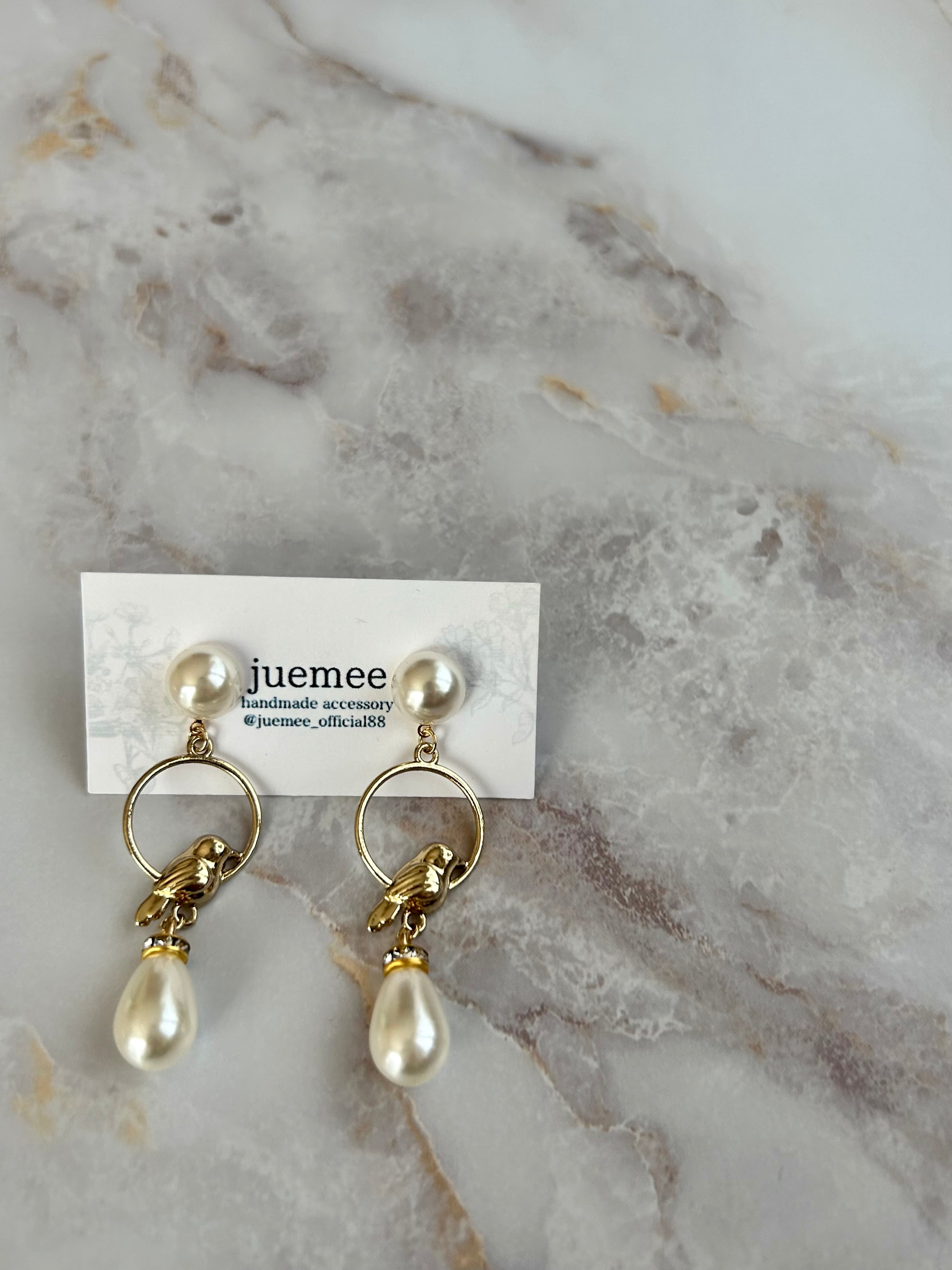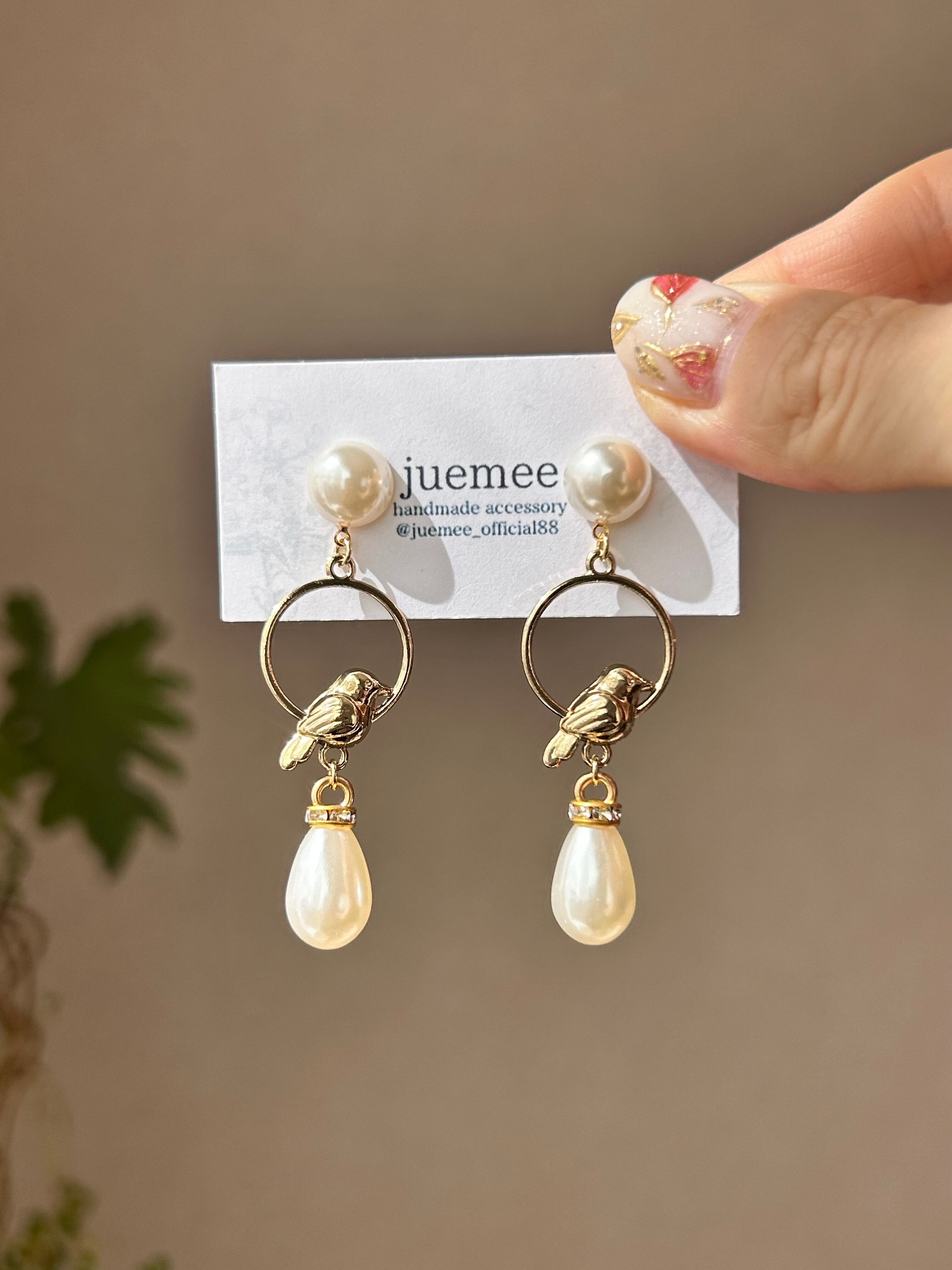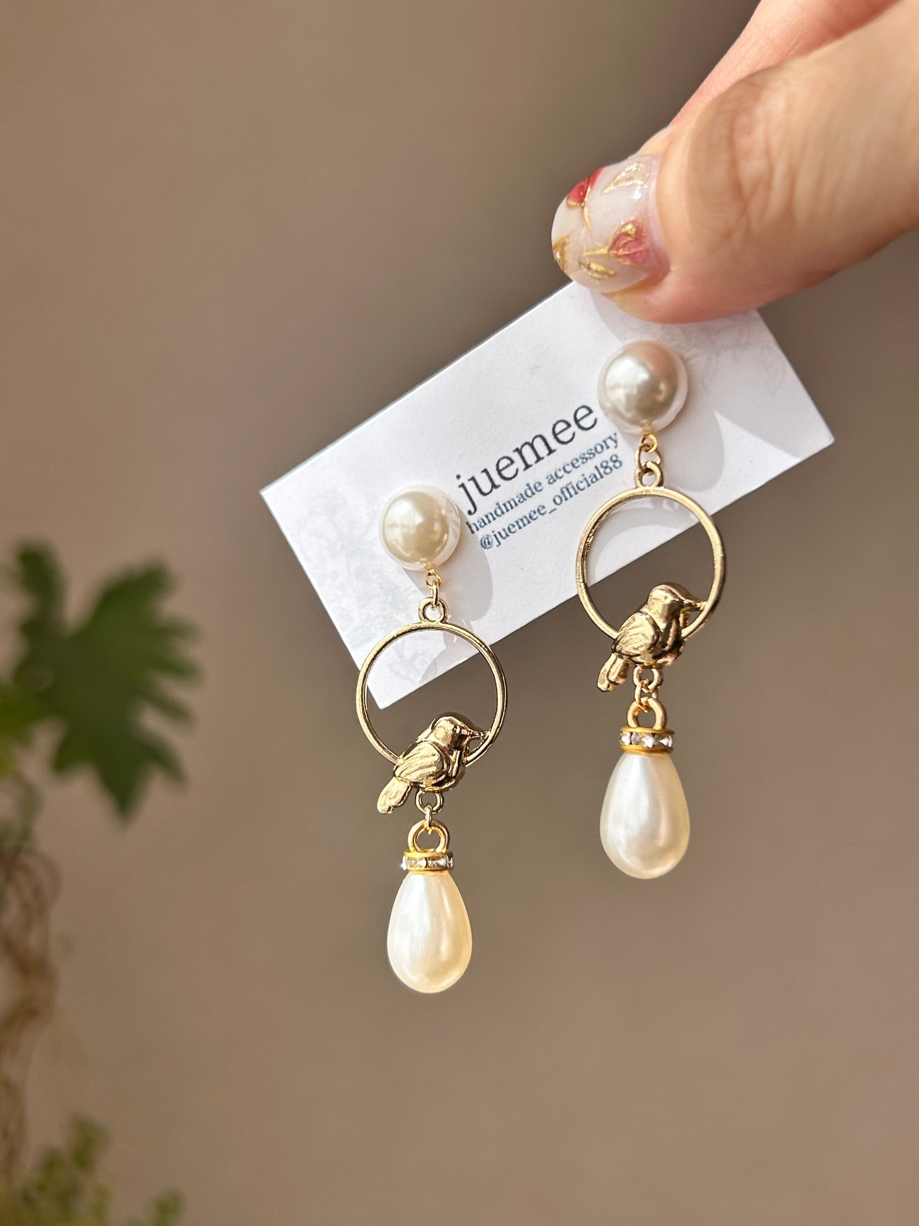 鳥モチーフにパールを組み合わせた、