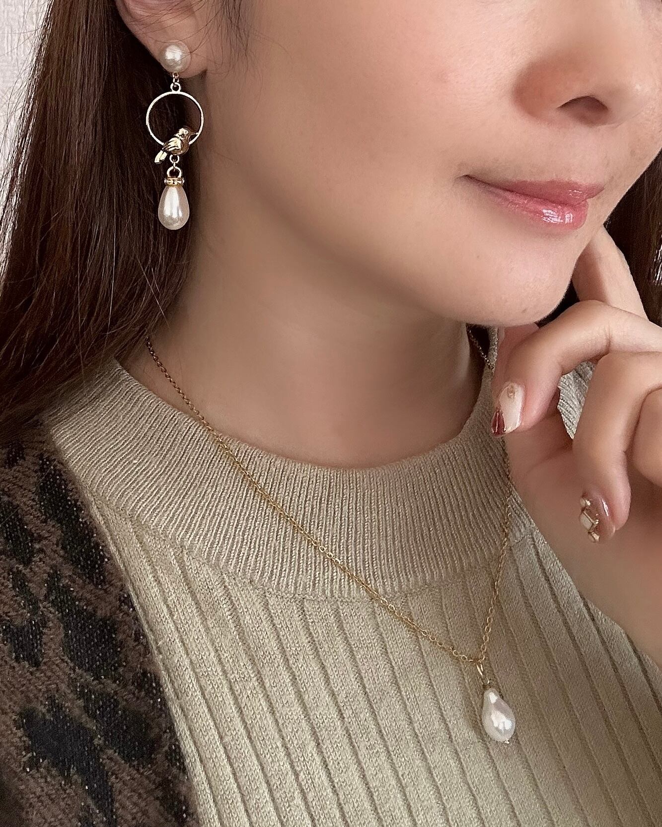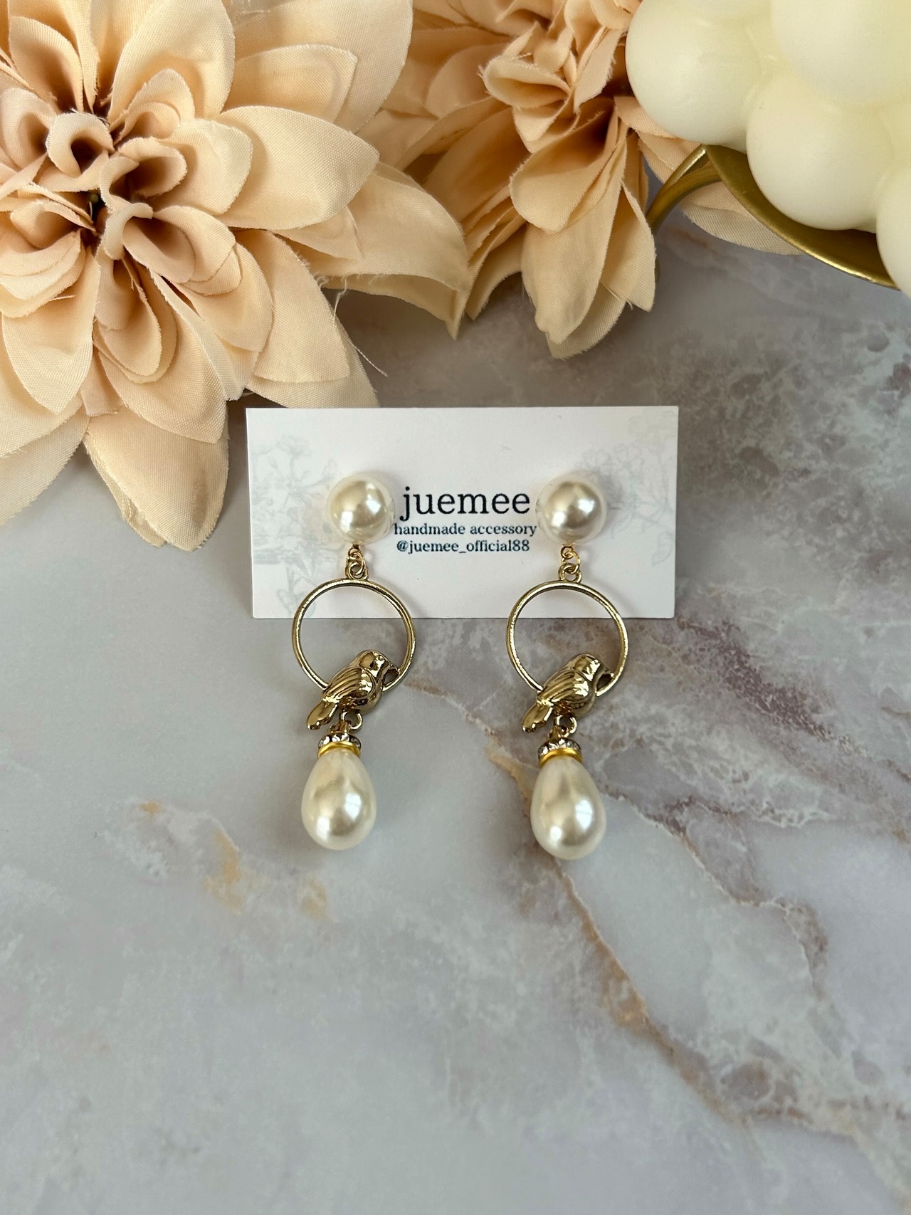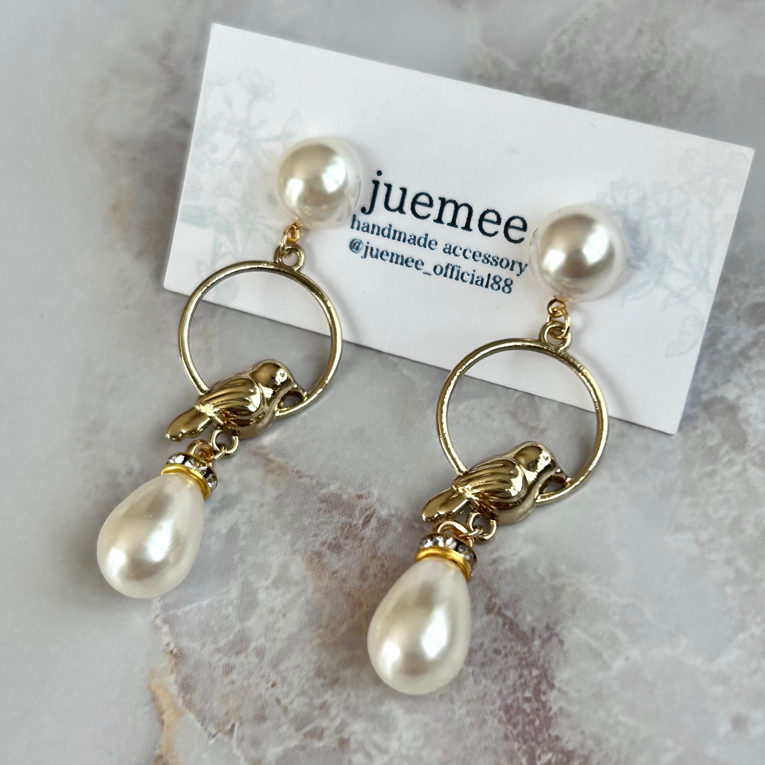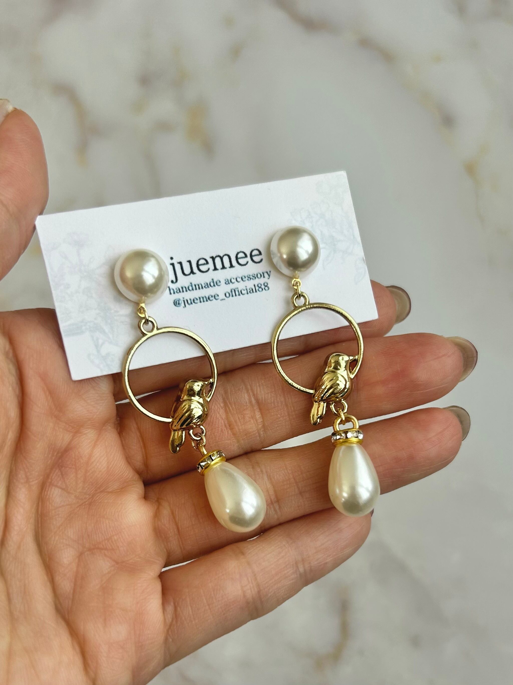 鳥モチーフにパールを組み合わせた、