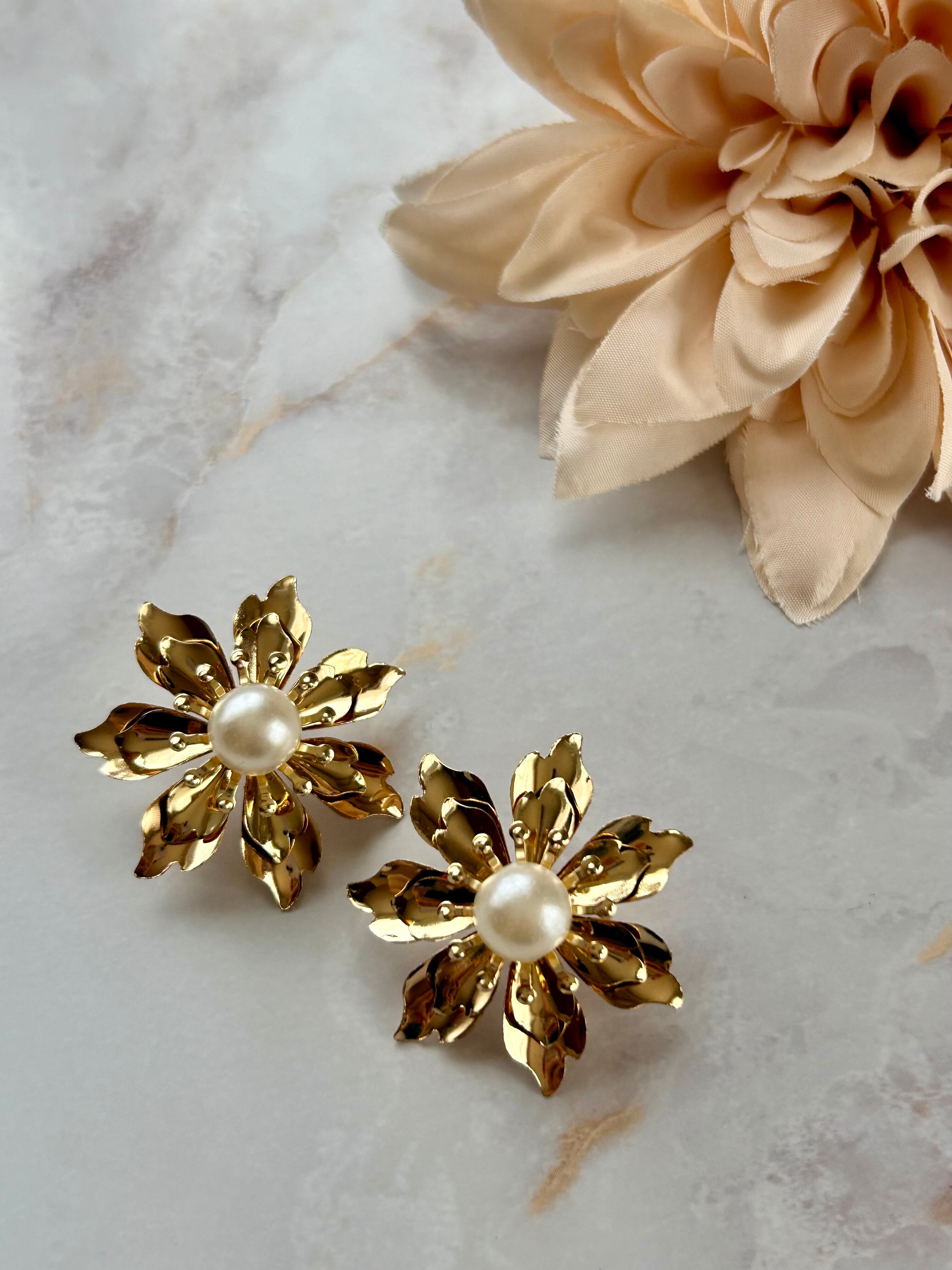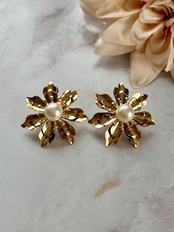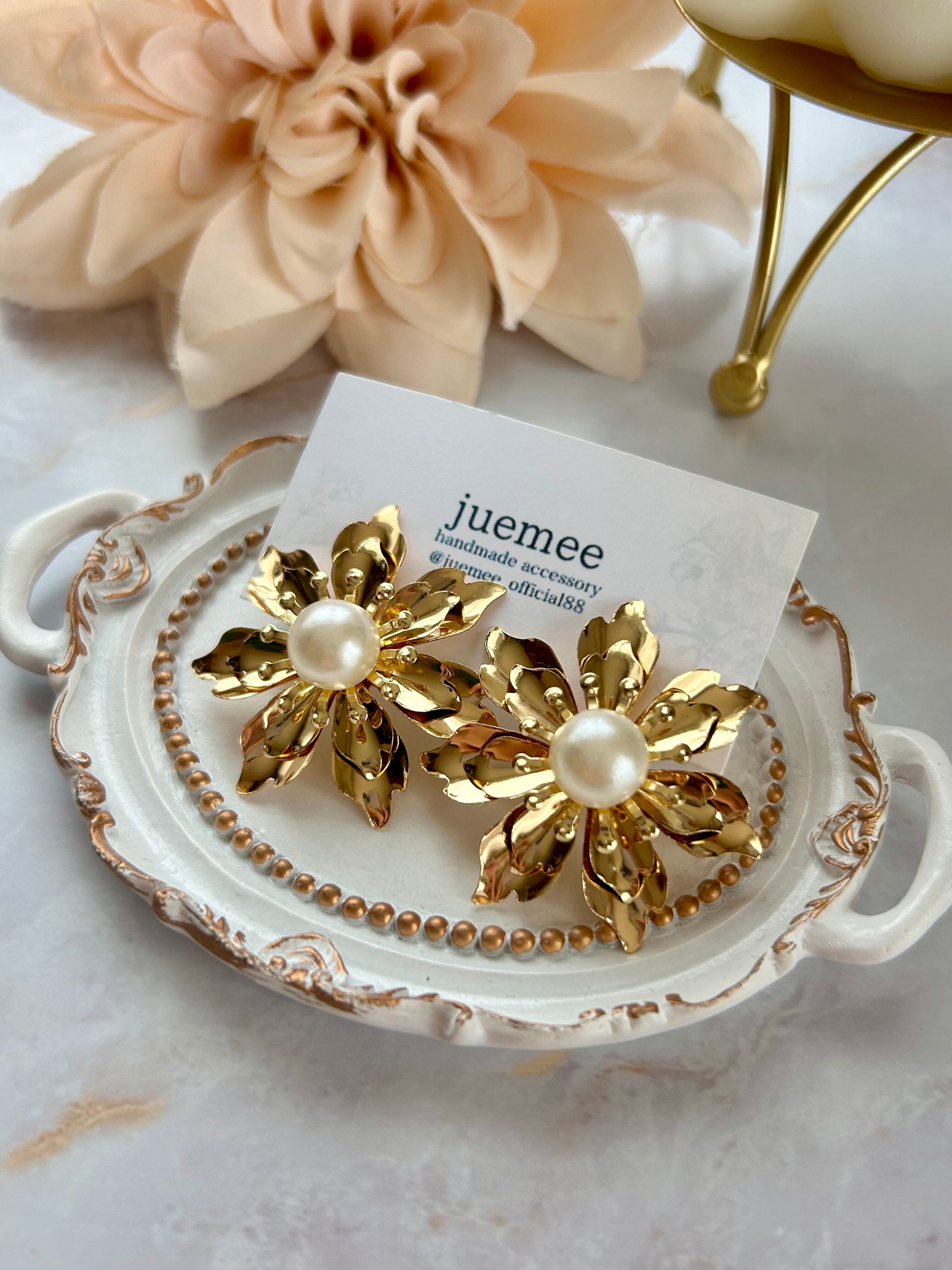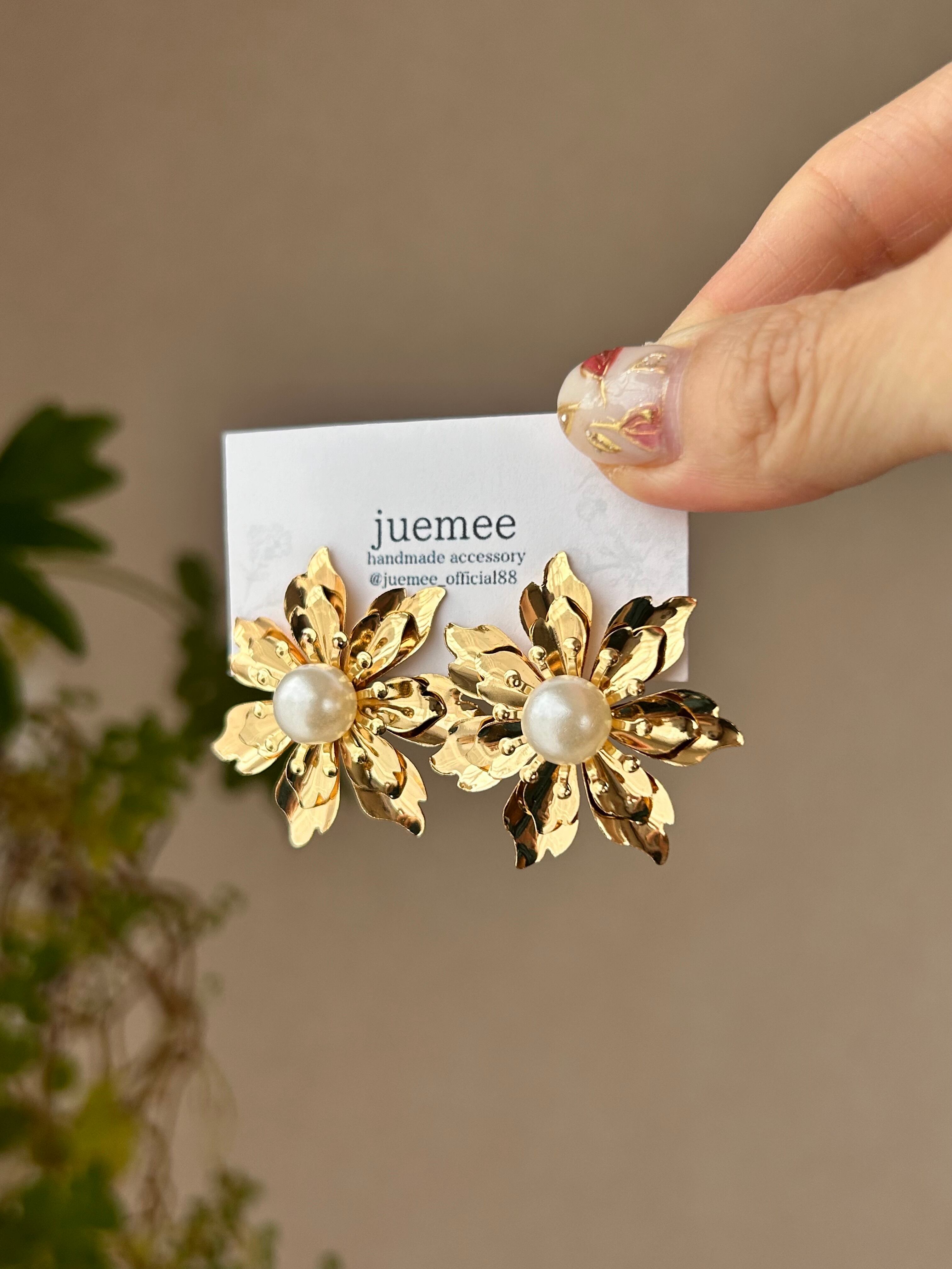 花の中心には女性らしいパールビーズをあしらっており、存在感のあるデザインが特徴です。