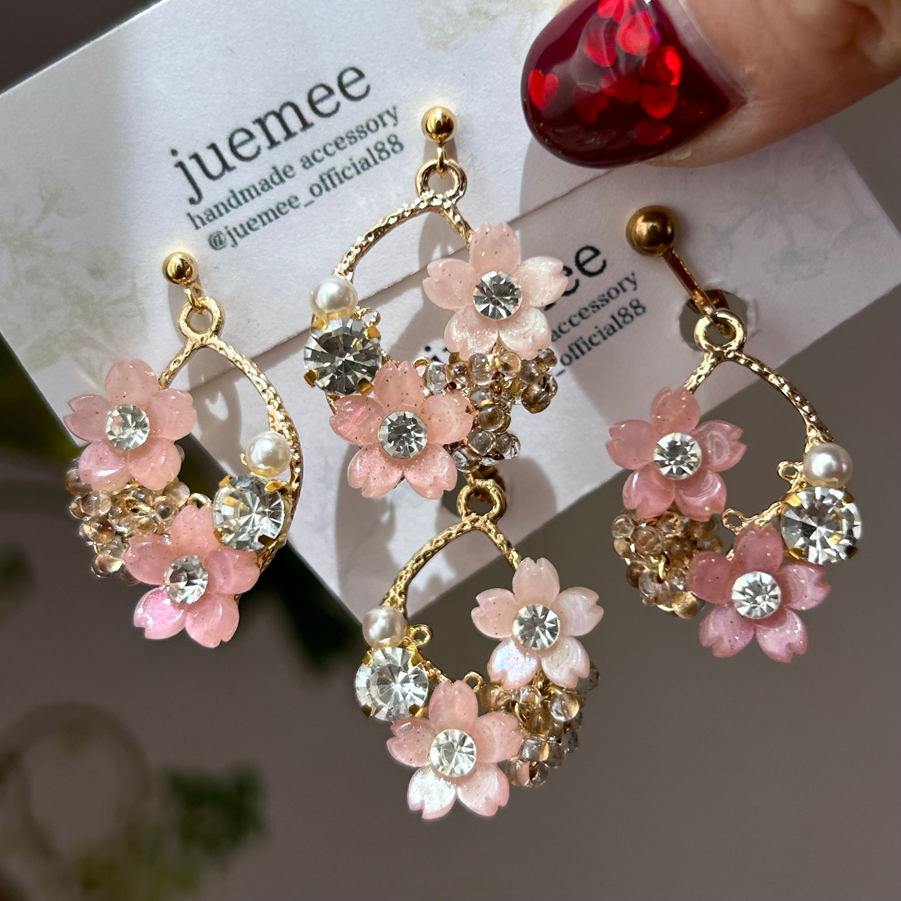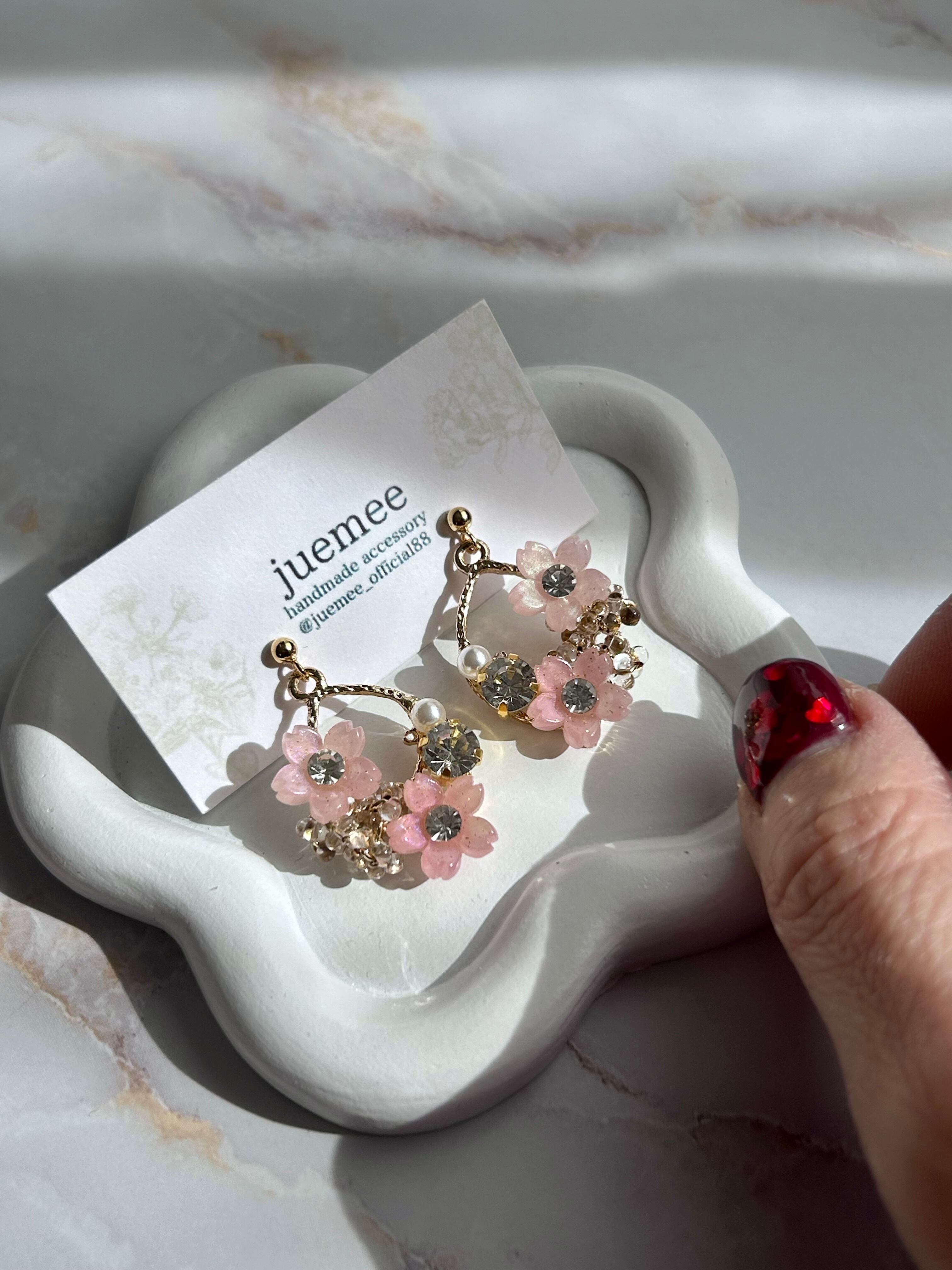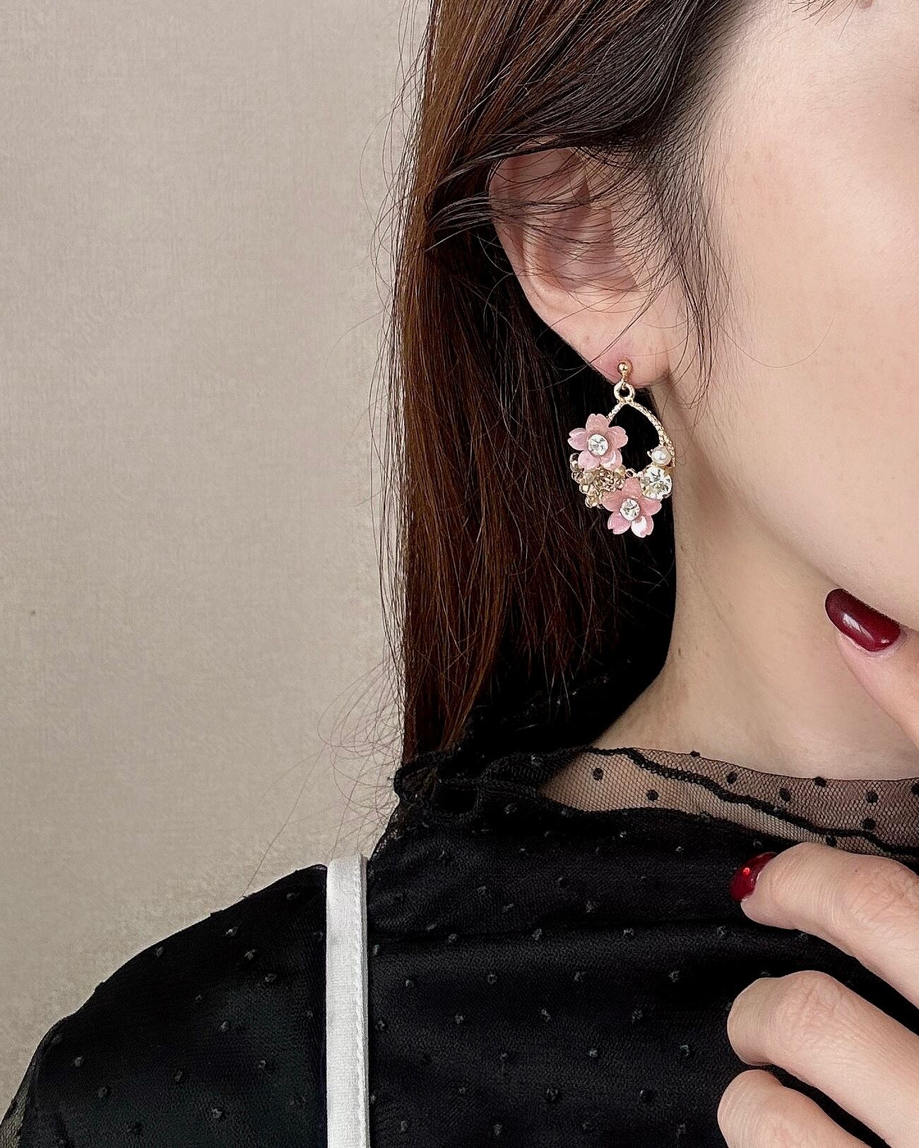 大人可愛い桜モチーフの耳飾り“cherry blossom”。