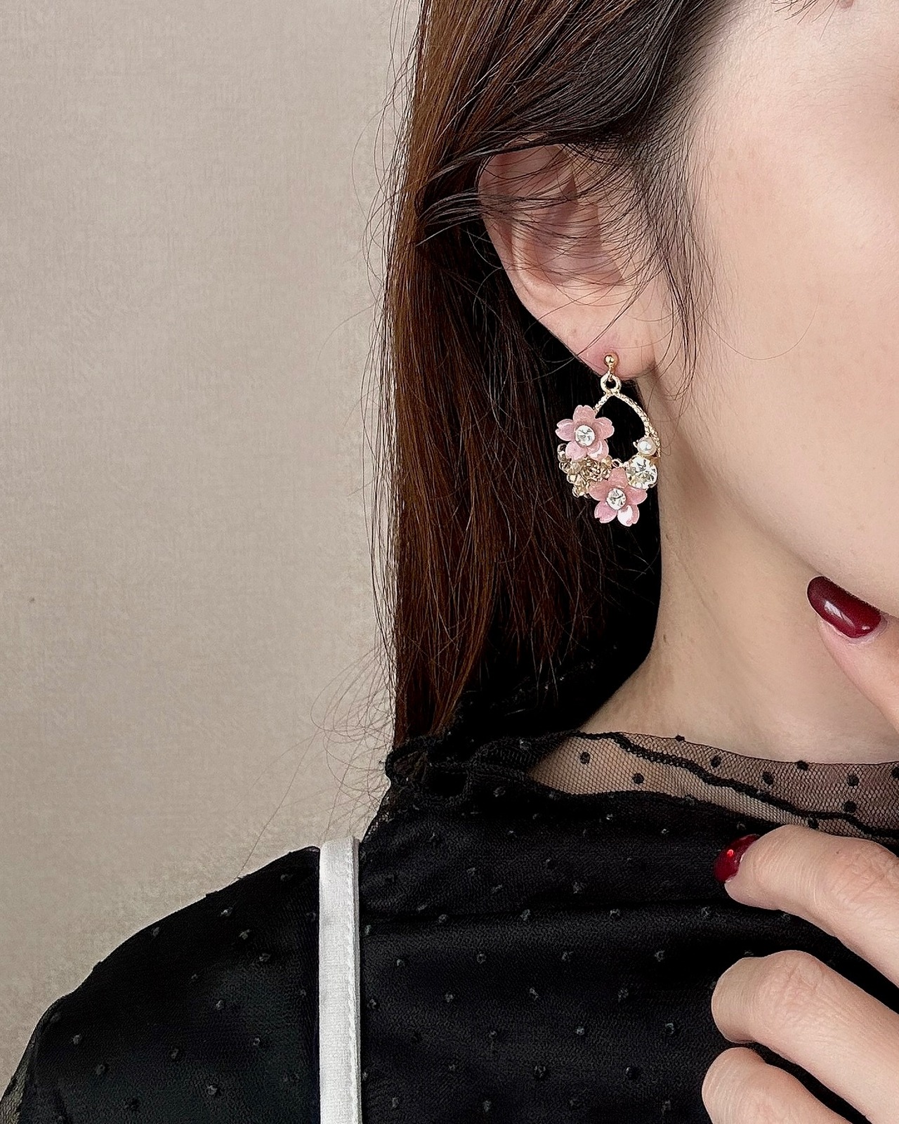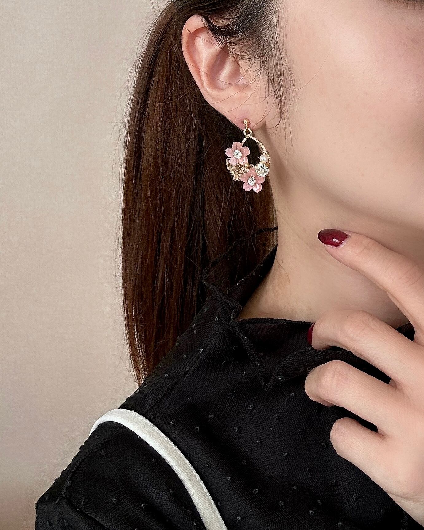 主張しすぎないのに、耳元にはきちんと春の華やぎを。